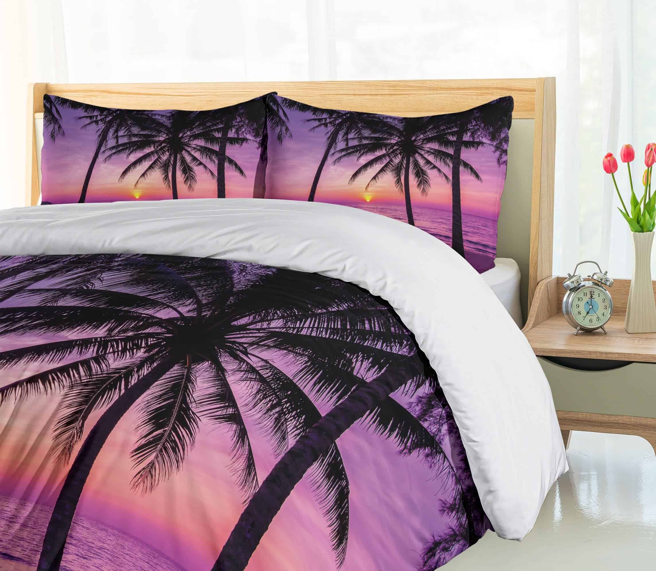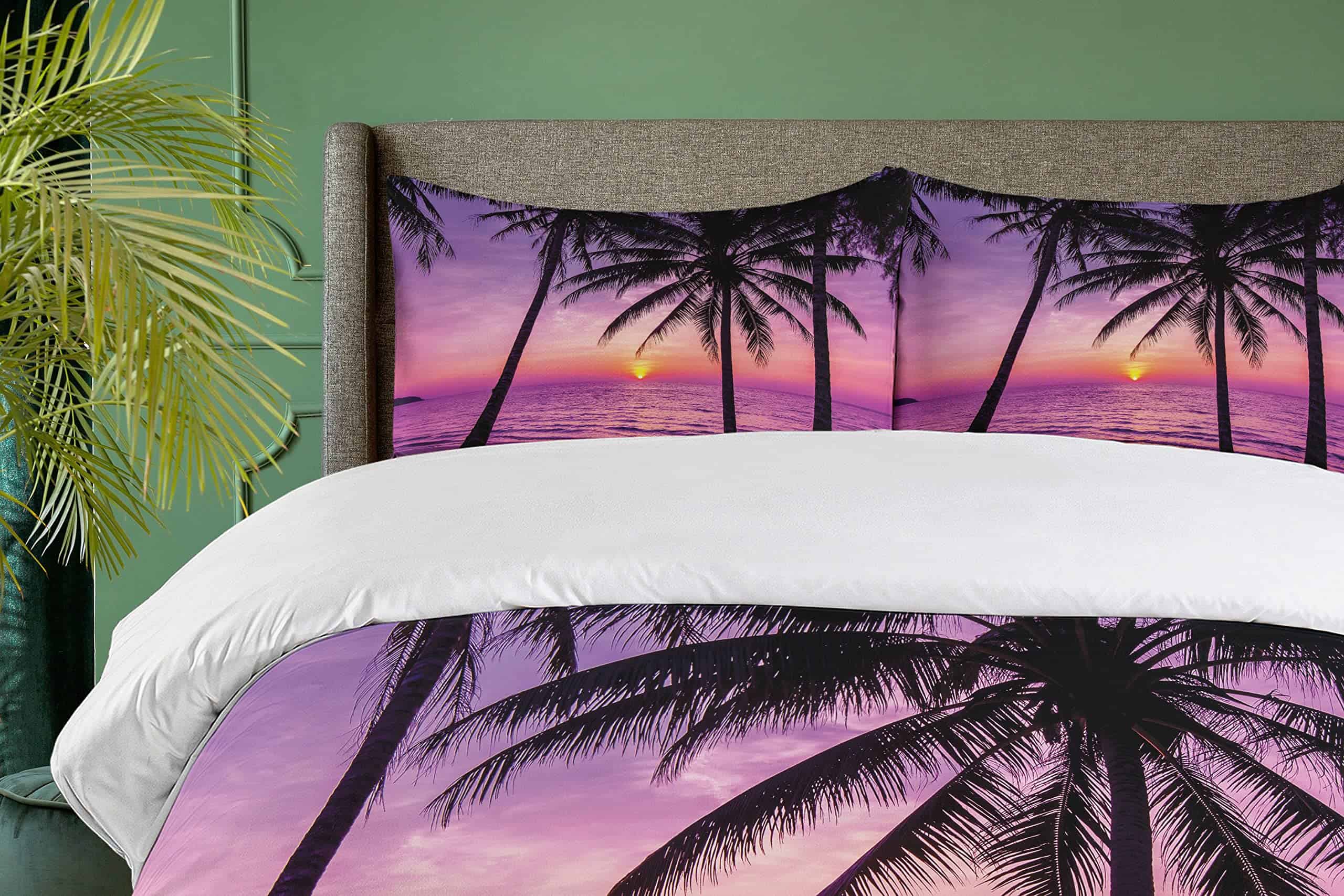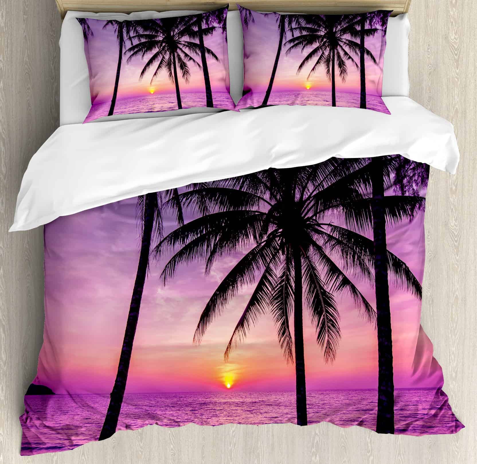 Juego de Funda Nórdica Ambesonne Ocean, Silueta de Palmeras