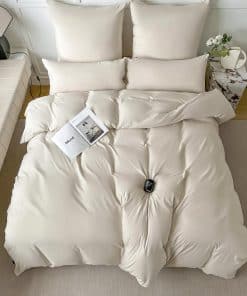 Amplíe su colección de ropa de cama con este lujoso juego de funda nórdica Amolavet Tamaño King de 3 piezas en un hermoso tono beige. Confeccionado con microfibra cepillada de alta calidad de 110gsm, esta funda nórdica king es suave al tacto y duradera, ofreciendo la máxima comodidad y suavidad para una noche de sueño reparador. El diseño inteligente de esta funda nórdica beige king incluye un cierre de cremallera oculto para un sellado rápido y fácil de su edredón, colcha o funda nórdica, y 4 lazos interiores en las esquinas para mantener el edredón en su lugar. Las fundas de almohada a juego tienen un cierre de sobre para mantener las almohadas metidas. Este juego de funda nórdica tamaño king incluye 1 funda nórdica (104″ x 90″), 2 fundas de almohada (20″ x 36″+2″) y una práctica bolsa reutilizable de cordón de lona. Tenga en cuenta que este juego de cama tamaño king no incluye edredón/colcha/inserto. La calidad excepcional de este juego de cama tamaño king se refleja en su construcción de costuras ordenadas, que asegura una conexión más fuerte en las costuras para una mayor durabilidad. Fabricado en una fábrica estándar OEKO-TEX 100, este juego de funda nórdica king garantiza que no se utilizaron productos químicos dañinos, siendo respetuoso con el medio ambiente. Para un fácil cuidado, este juego de funda nórdica king es lavable a máquina en ciclo suave a menos de 40 con colores similares, secado a baja temperatura y se puede blanquear. Puede estar seguro de que las fundas nórdicas king mantendrán su forma y se mantendrán en condiciones nuevas después de más de 100 lavados, gracias a su calidad superior y durabilidad. Con un servicio de satisfacción excepcional, la funda nórdica king extragrande de Amolavet ofrece 1 año de servicio de devolución y reemplazo, y servicio al cliente gratuito de por vida. Su satisfacción es nuestra prioridad, por lo que si tiene alguna pregunta o inquietud, no dude en contactarnos, ¡le responderemos en un plazo de 24 horas!