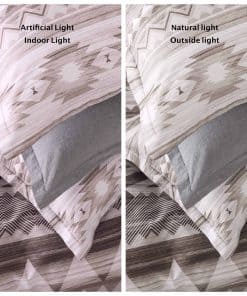 Estampados tradicionales nativos americanos en una reinterpretación moderna recastean estos motivos clásicos en una paleta de neutros sofisticados para un aspecto que se adapta a cualquier entorno.