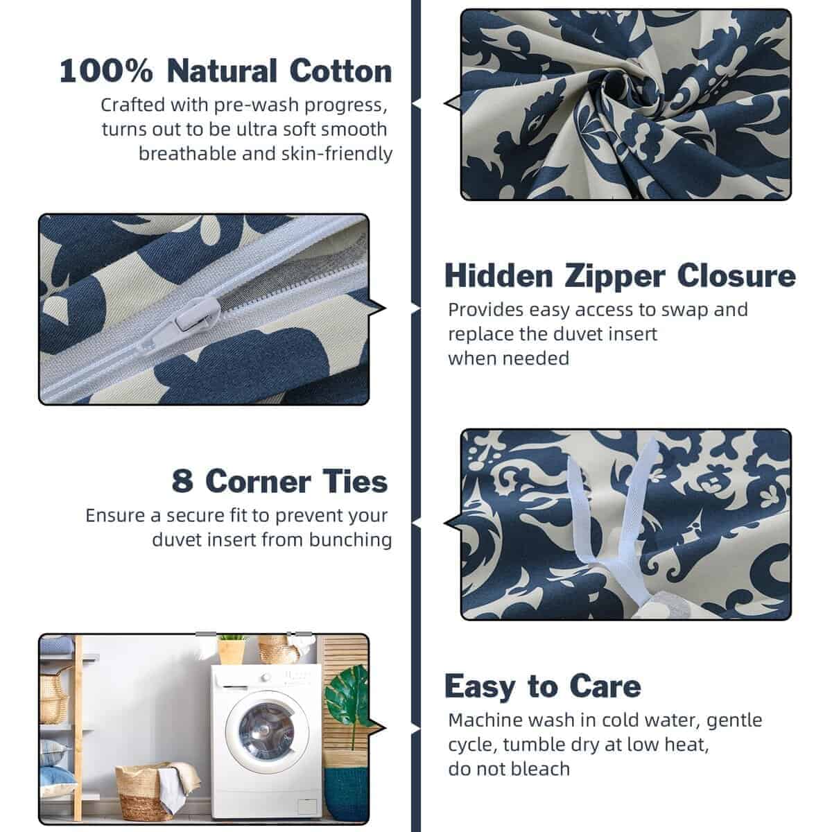 Juego de Funda Nórdica Azul EWlinens Queen Size – 100%