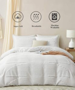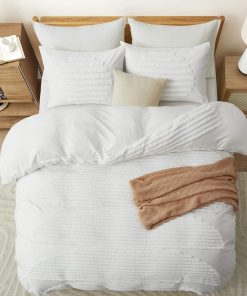 1. Lo Que Puedes Obtener: La colección de funda nórdica tamaño King viene en varios colores para elegir e incluye 1 funda nórdica tamaño King de 104×90 pulgadas y 2 fundas de almohada de 20×36 pulgadas; El comforter o relleno de la funda nórdica no está incluido.
