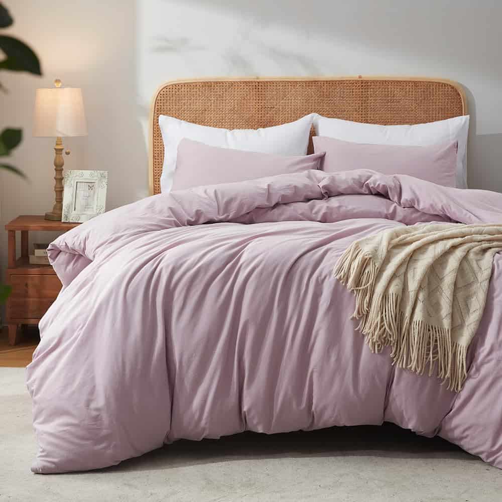 1. Juego de funda nórdica tamaño King: 1 funda nórdica para cama queen con cierre de cremallera y lazos en las esquinas (104×90 cm), 2 fundas de almohada (20×36 cm). ¡SIN EDREDÓN! 2. Diseño único: El juego de funda nórdica está diseñado con 8 lazos en las esquinas y cierre de cremallera para asegurar que el edredón pueda estar mejor fijo dentro del juego, el edredón se puede fijar al dormir para permitir que el cliente tenga una mayor calidad de sueño, y el diseño de cierre de sobre de la funda de almohada facilita meter la almohada más fácilmente. Se puede fijar al dormir para permitir que el cliente tenga una mayor calidad de sueño. 3. Suave y transpirable – El juego de funda de edredón está confeccionado con 100% algodón lavado para mantenerte cómodo y cálido en las noches frías y no hacerte sudar en las noches calurosas. Su aspecto ligeramente arrugado, gran sensación de lino puede proporcionar un estilo elegante y de lujo a tu dormitorio. Su ventaja de ser transpirable mantiene la cama sin olor a pelo de animales. 4. Garantía de marca calificada – Todas las piezas del juego de funda nórdica están fabricadas por nuestra propia fábrica que tiene certificación OEKO-TEX Standard 100%. Hemos estado produciendo ropa de cama durante 22 años y todos los materiales de los productos son cuidadosamente seleccionados, estrictamente inspeccionados. Nuestro objetivo es proporcionar a los clientes el retorno correcto por cada centavo que gastan. 5. Lavable en máquina – Lavar a máquina en ciclo suave con agua fría, secar a baja temperatura para quitar las arrugas, no usar lejía ni planchar. La tela de algodón lavado al 100% permite que el producto mantenga su forma y suavidad después de cada lavado.