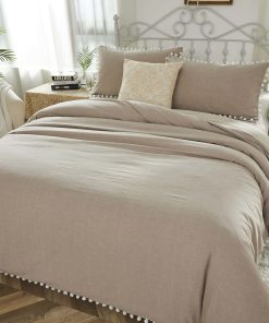 Juego de Funda Nórdica Bohemia Taupe con Borlas Vintage