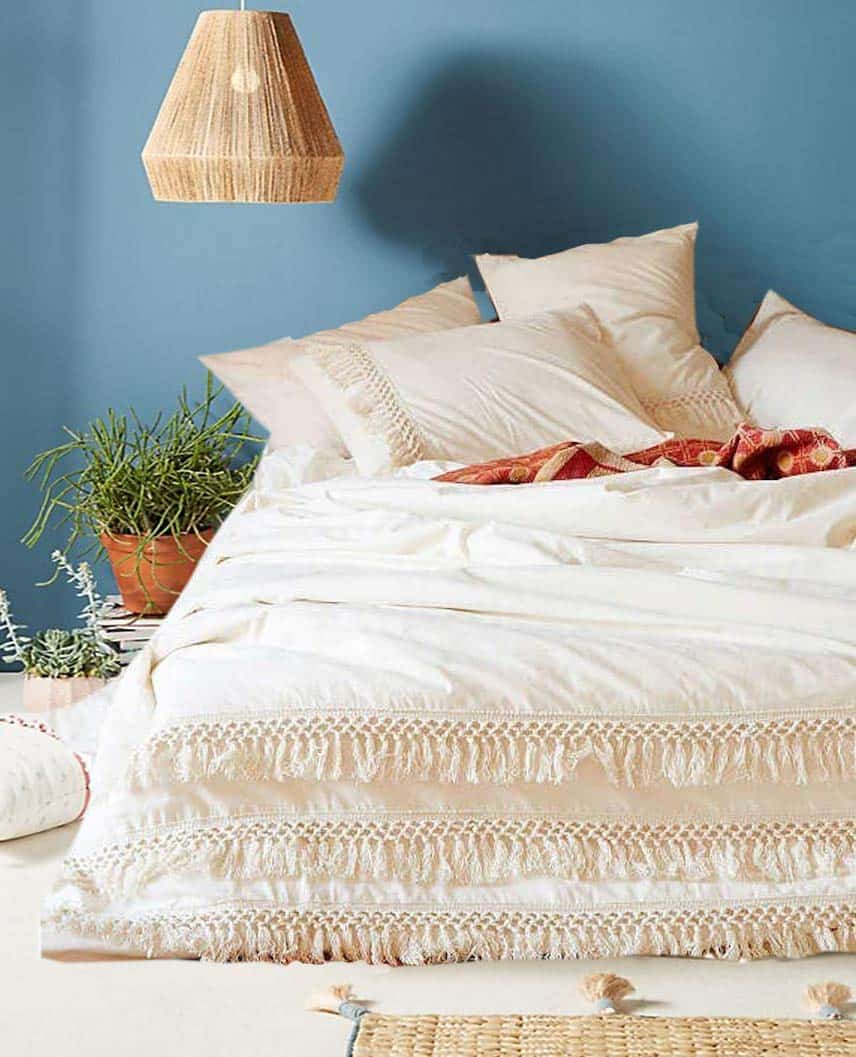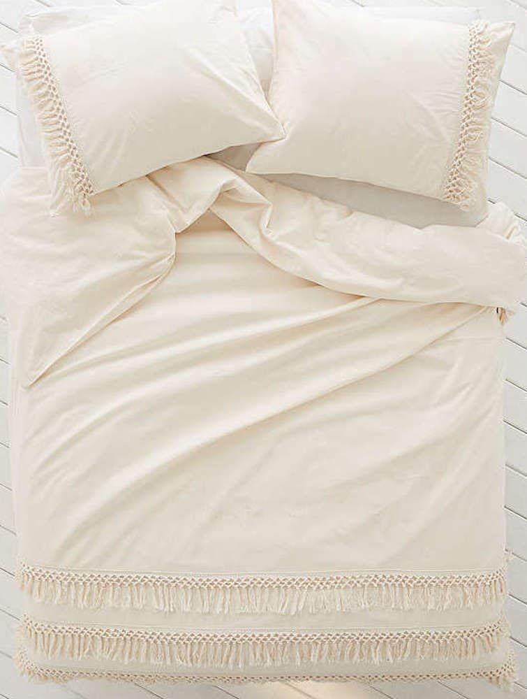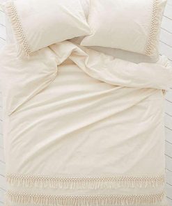 Funda nórdica blanca de estilo boho fabricada en 100% algodón suave. Con borlas decorativas en los bordes para un toque bohemio minimalista. Las dimensiones de la funda nórdica son 90 pulgadas de largo por 68 pulgadas de ancho, perfecta para una cama Twin. Se recomienda lavar a mano en frío y del revés para mantener la calidad del tejido. El paquete incluye 1 funda nórdica. Si estás buscando una funda de almohada a juego, por favor, busca en nuestra tienda para encontrarla.