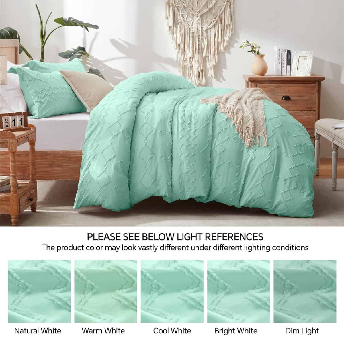 5. Cuidado/Fácil Limpieza: Lava la funda nórdica en agua fría y sécala a baja temperatura. Debido a la superficie cepillada de la funda nórdica bohemia y para proteger el texturizado de la funda nórdica, se recomienda voltear el juego de cama al lavar.