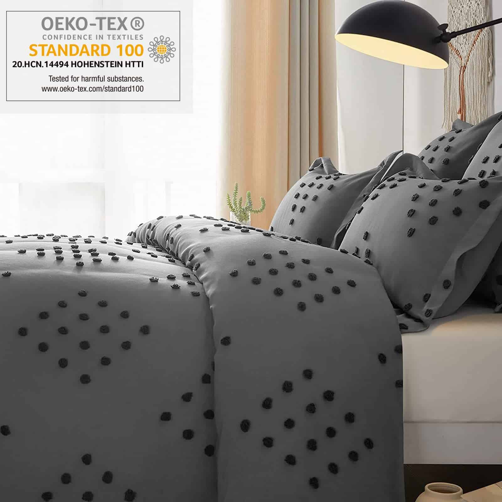1. PATRÓN JACQUARD GEO: El juego de funda nórdica geométrica está confeccionado con microfibra de alta resistencia sin arrugas. Los estampados geométricos con acolchados añaden un estilo acogedor y chic a tu dormitorio principal. Te encantará sumergirte desde el anochecer hasta el amanecer. 2. USO DURANTE TODO EL AÑO: Certificado Oeko-Tex, esta ropa de cama boho chic se produce utilizando métodos de producción respetuosos con el medio ambiente y está libre de más de 300 productos químicos nocivos. Adecuado para usar durante todo el año. Disfruta de una noche de sueño reparador. 3. VIBRA MODERNA BOHO: ¿Quieres infundir estilo boho en tu hogar o darle a tu dormitorio una renovación acogedora? Comienza con el juego de funda nórdica boho de Germarwel, dale a tu cama un toque boho y mejora la estética bohemia de tu espacio. 4. CIERRE DE LA FUNDA NÓRDICA: El juego de funda nórdica acolchado cuenta con un cierre con cremallera, las correas internas de las esquinas evitan que el edredón (no incluido) se desplace y se amontone. Cada funda de almohada boho cuenta con un cierre de sobre, lo que facilita ponerla y quitarla de la almohada (no incluida) y ocultar la costura de la vista. 5. CUIDADO Y MANTENIMIENTO SENCILLOS: El juego de funda nórdica de 3 piezas es totalmente lavable a máquina. La ropa de cama de Germarwel recomienda secar a baja temperatura, no usar lejía ni limpiar en seco, ajustar la plancha en frío si es necesario.