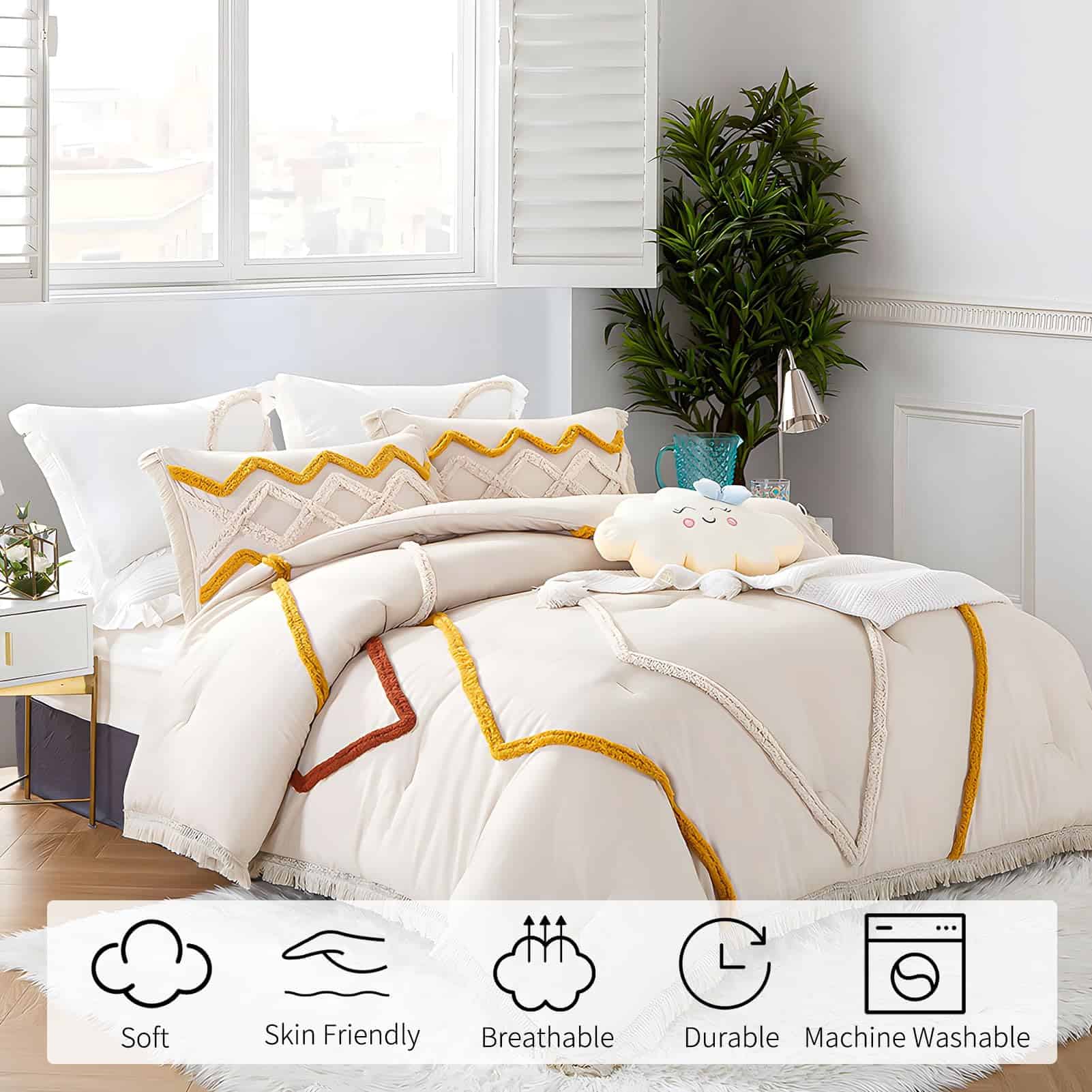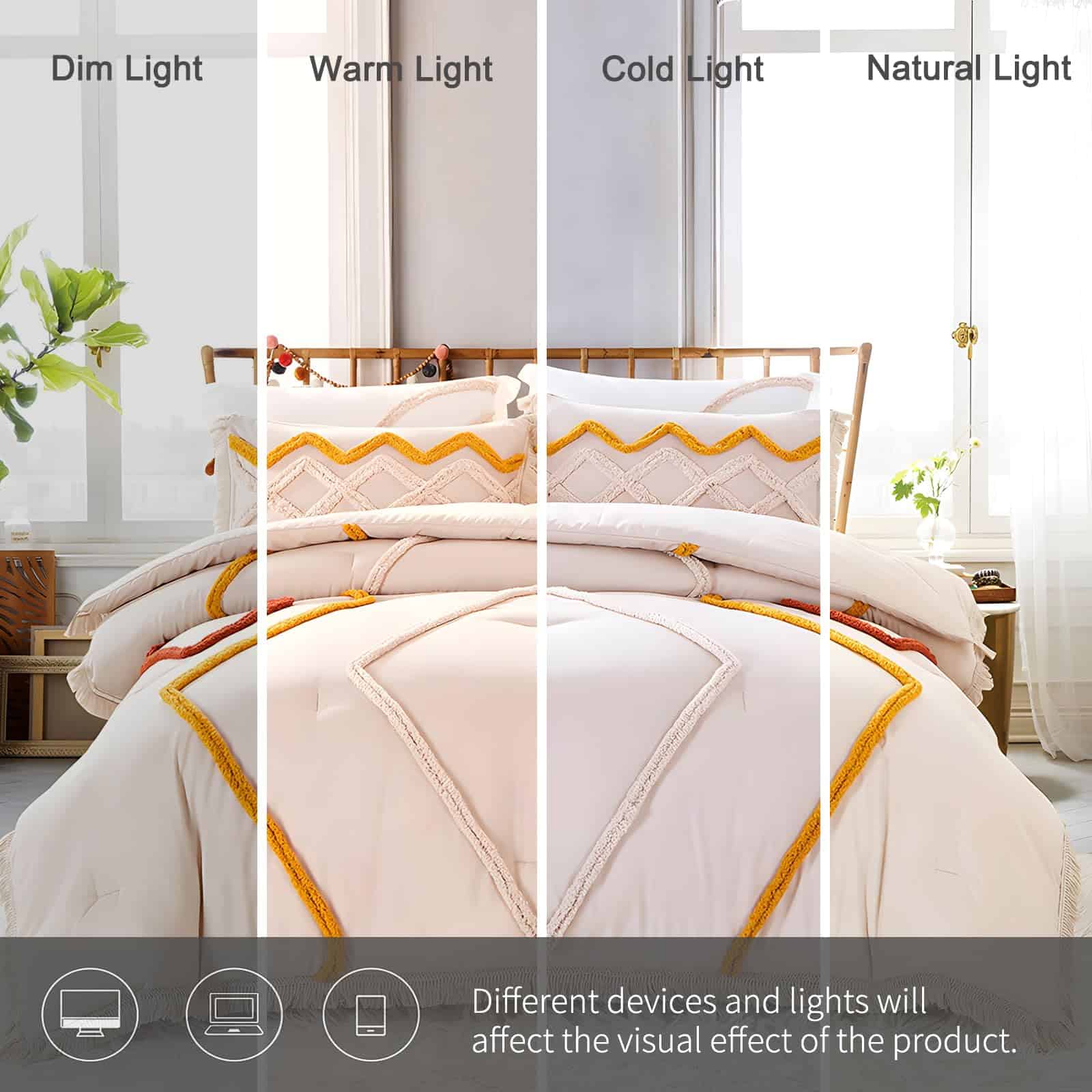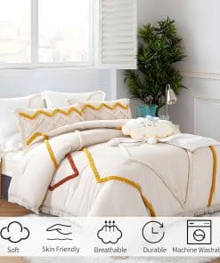Esta hermosa y práctica funda nórdica es el regalo perfecto para tus seres queridos, ya sea para el Día de la Madre, San Valentín, Navidad o simplemente para mostrarles cuánto te importan. Su resistencia hace que sea menos probable que se rasgue o se rompa, y su material de fibra de poliéster tiene una mejor función de aislamiento térmico y características de protección ambiental. El juego de funda nórdica de tamaño king incluye una funda nórdica de 104″ x 90″ y dos fundas de almohada de 20″ x 36″. La funda nórdica cuenta con 8 lazos interiores en las esquinas para un ajuste perfecto, cierre de cremallera suave y fácil de usar, y es lavable a máquina en agua fría, ciclo suave, secar a baja temperatura, no usar blanqueador.