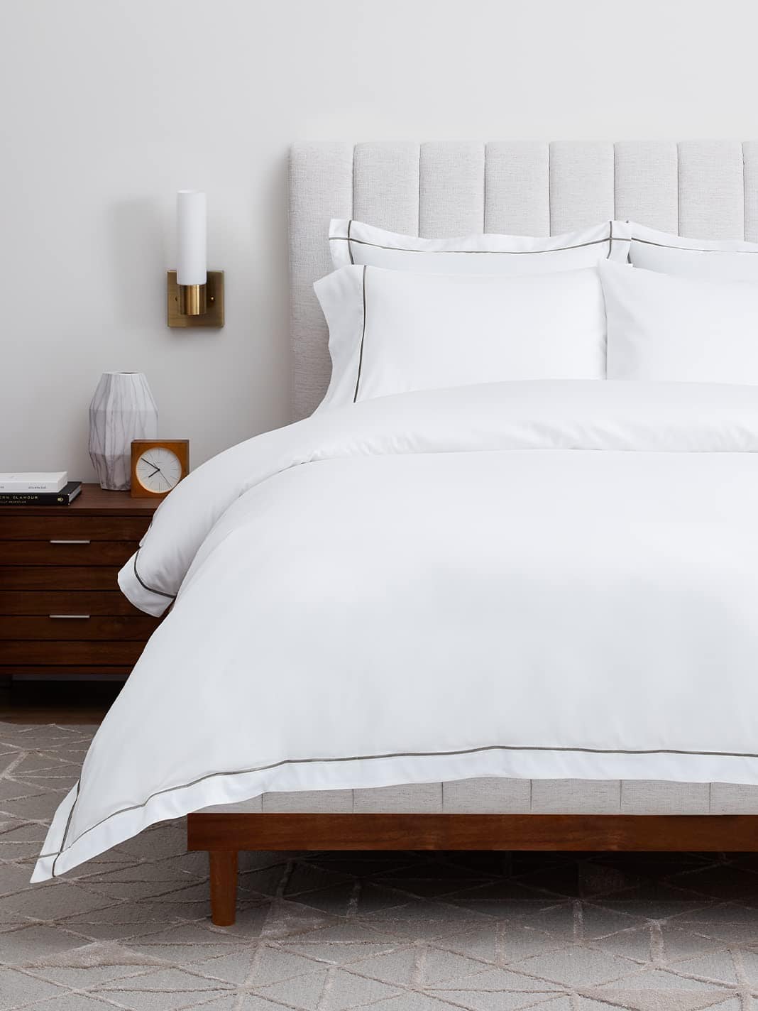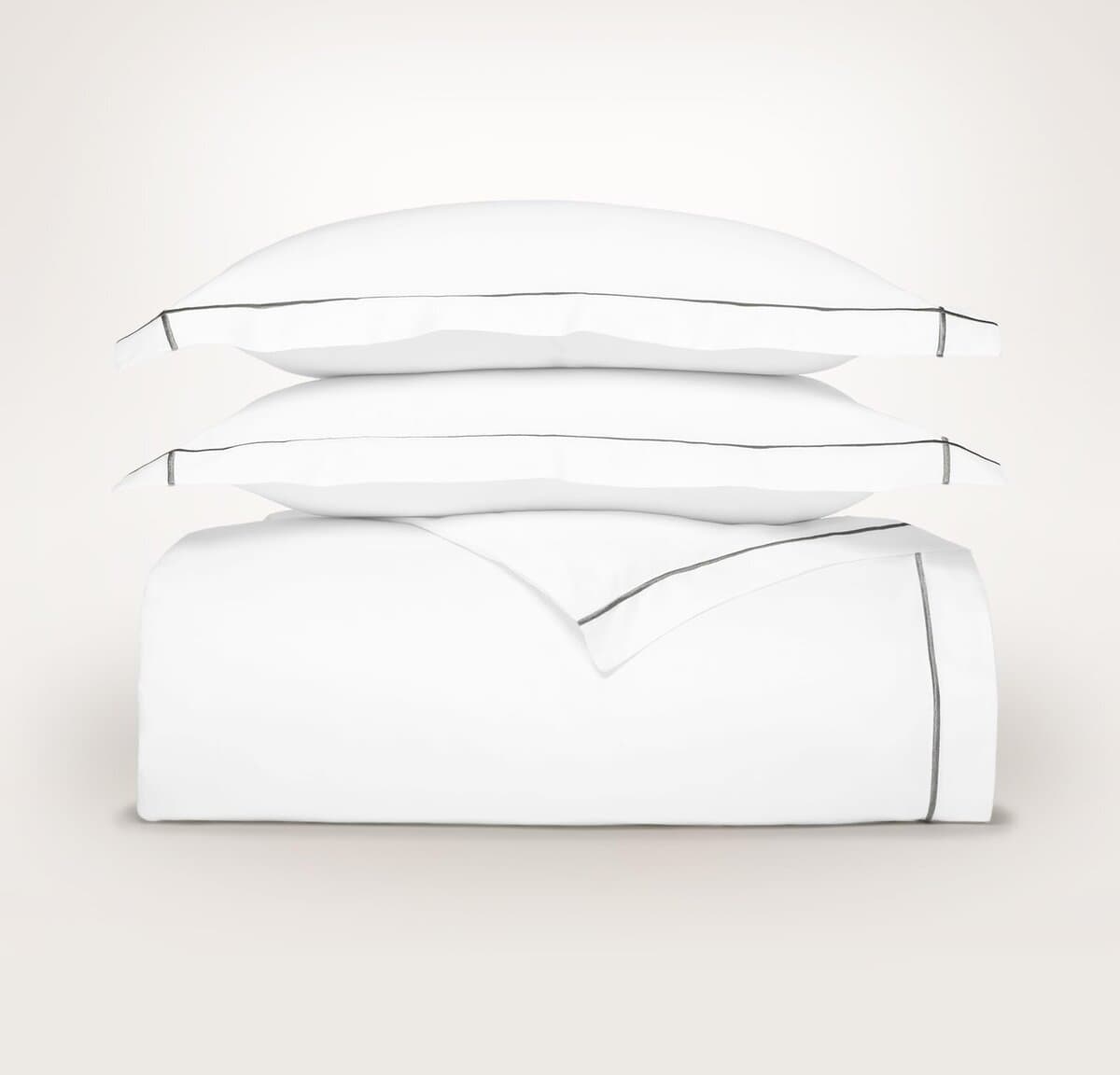 1. Juego de funda nórdica bordada: Suave y transpirable en la tela única y suave Signature con bordado de punto merrow luminoso hecho a mano, esta lujosa funda nórdica y 2 fundas de almohada de Boll & Branch cuentan con cierres de cremallera ocultos y lazos interiores para el inserto.
