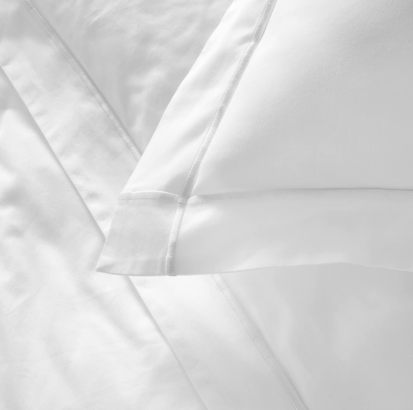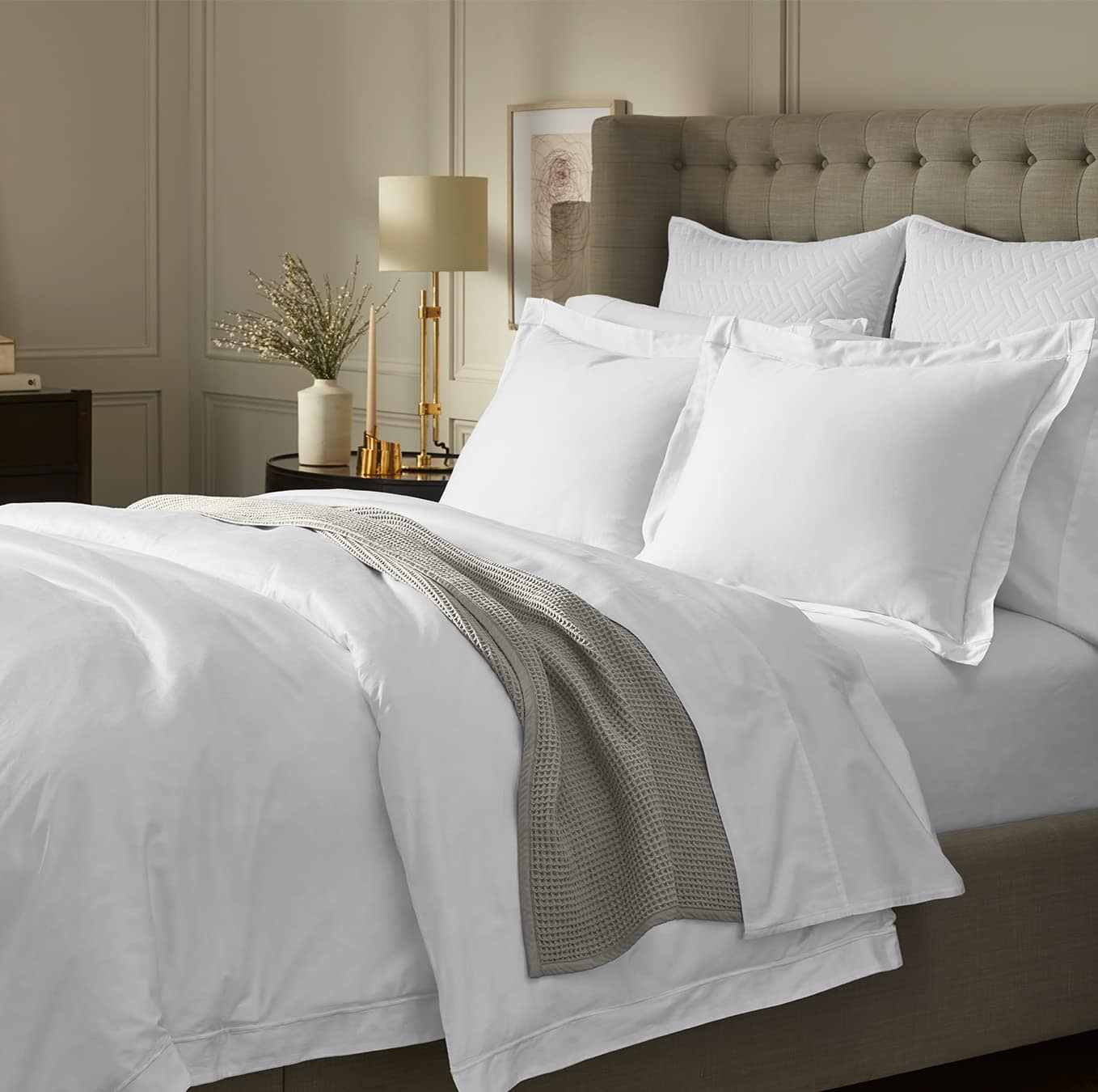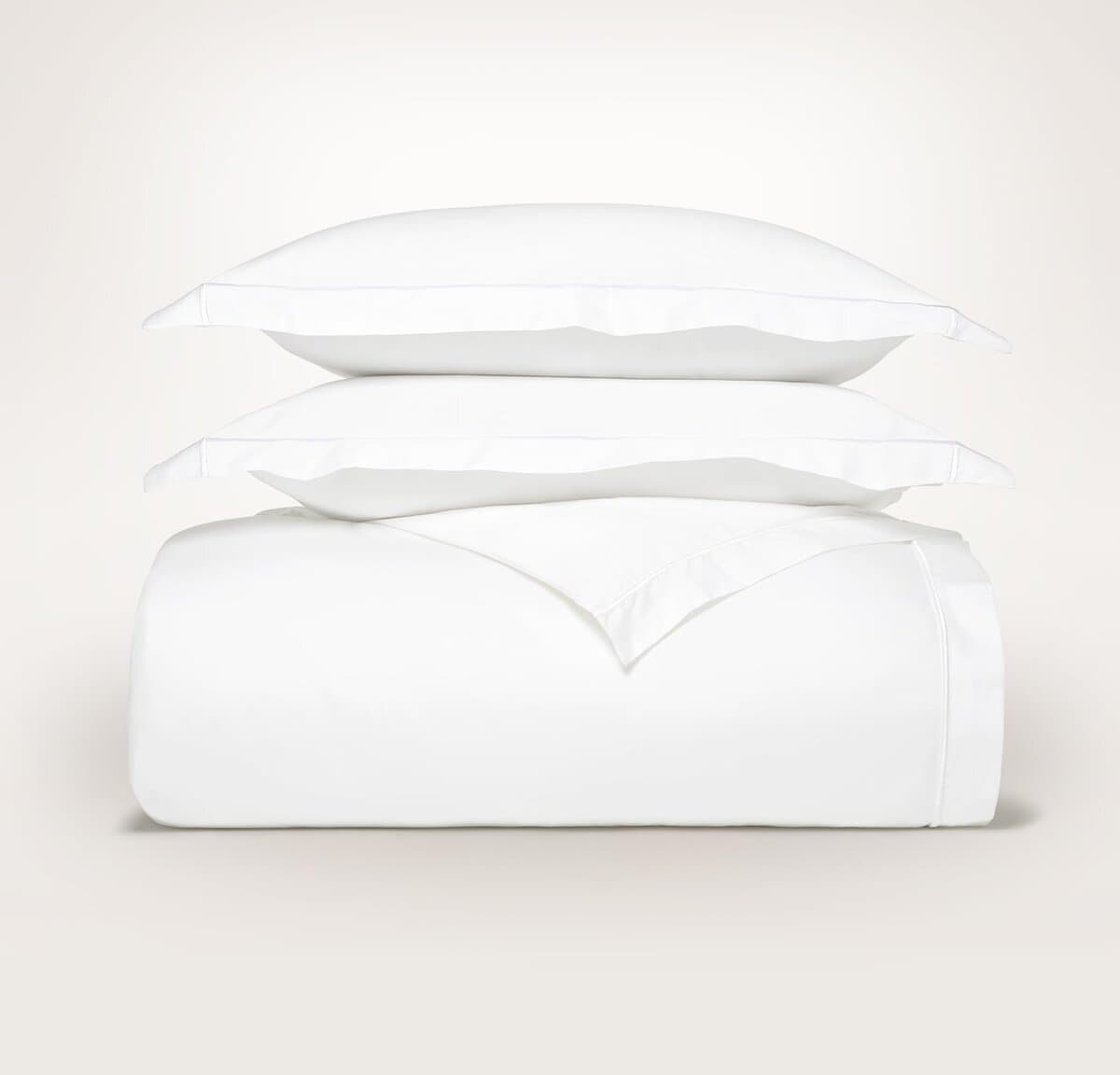 1. JUEGO DE FUNDA NÓRDICA BORDADA: Suave y transpirable en la tela Signature única con bordado luminoso hecho a mano, esta lujosa funda nórdica y 2 fundas de almohada de Boll & Branch cuentan con cierres de cremallera ocultos y lazos interiores para insertar.