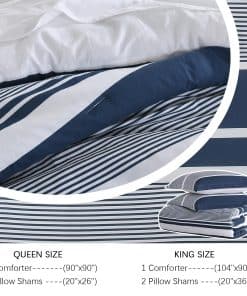 Juego de Funda Nórdica con Rayas Azul Marino Reversible – 3