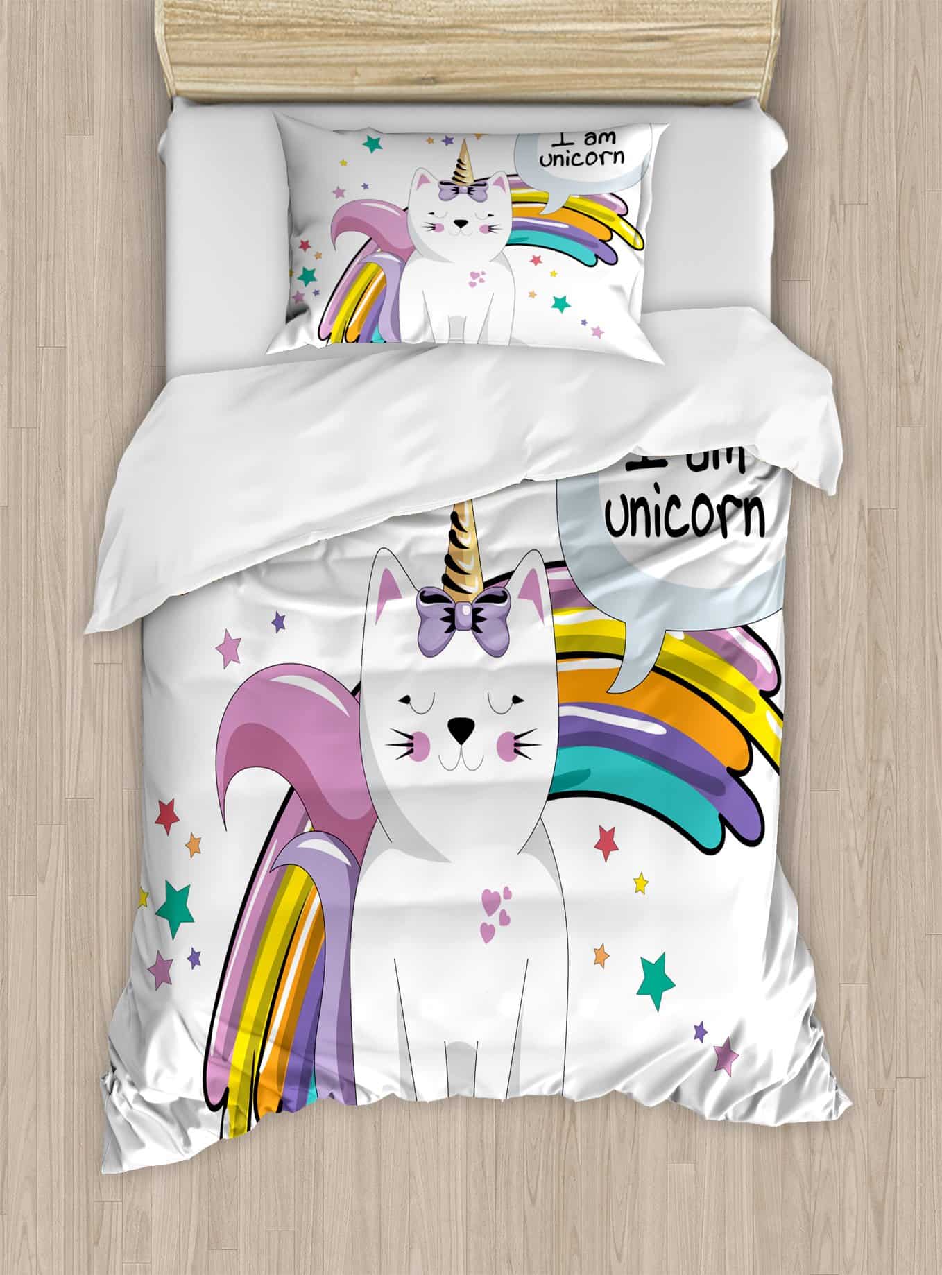 Juego de Funda Nórdica con Unicornio y Gato, Cono de Helado