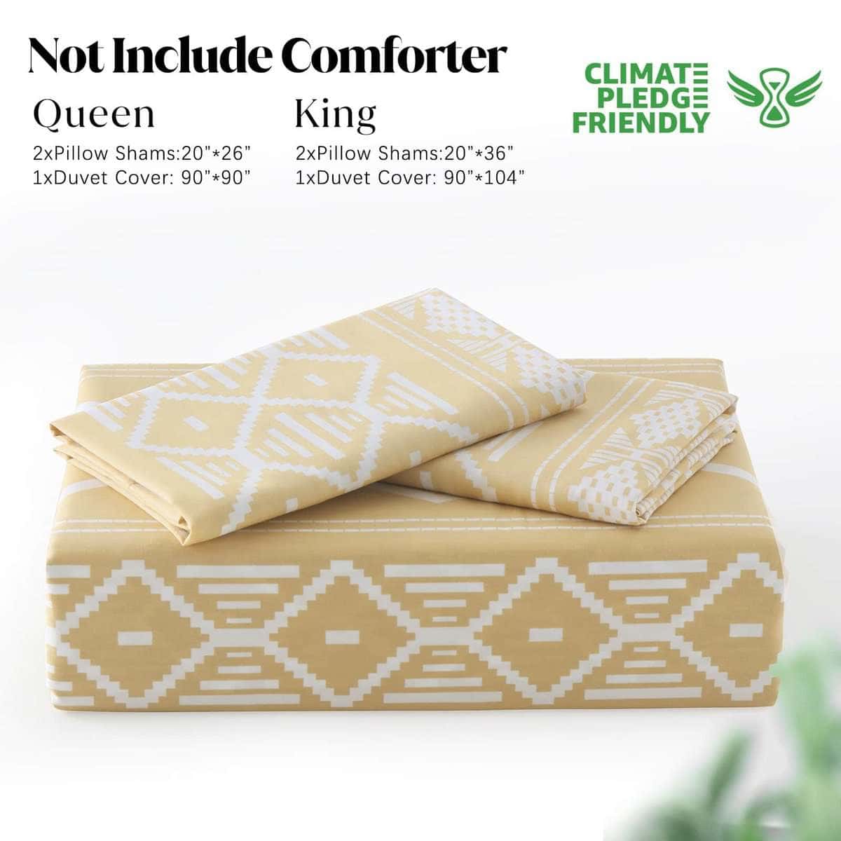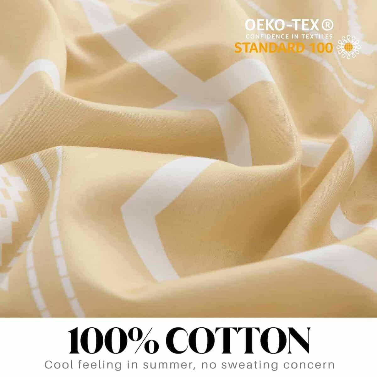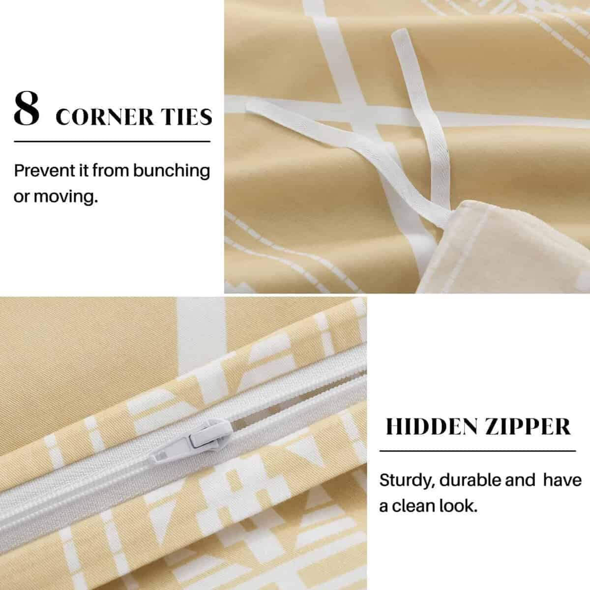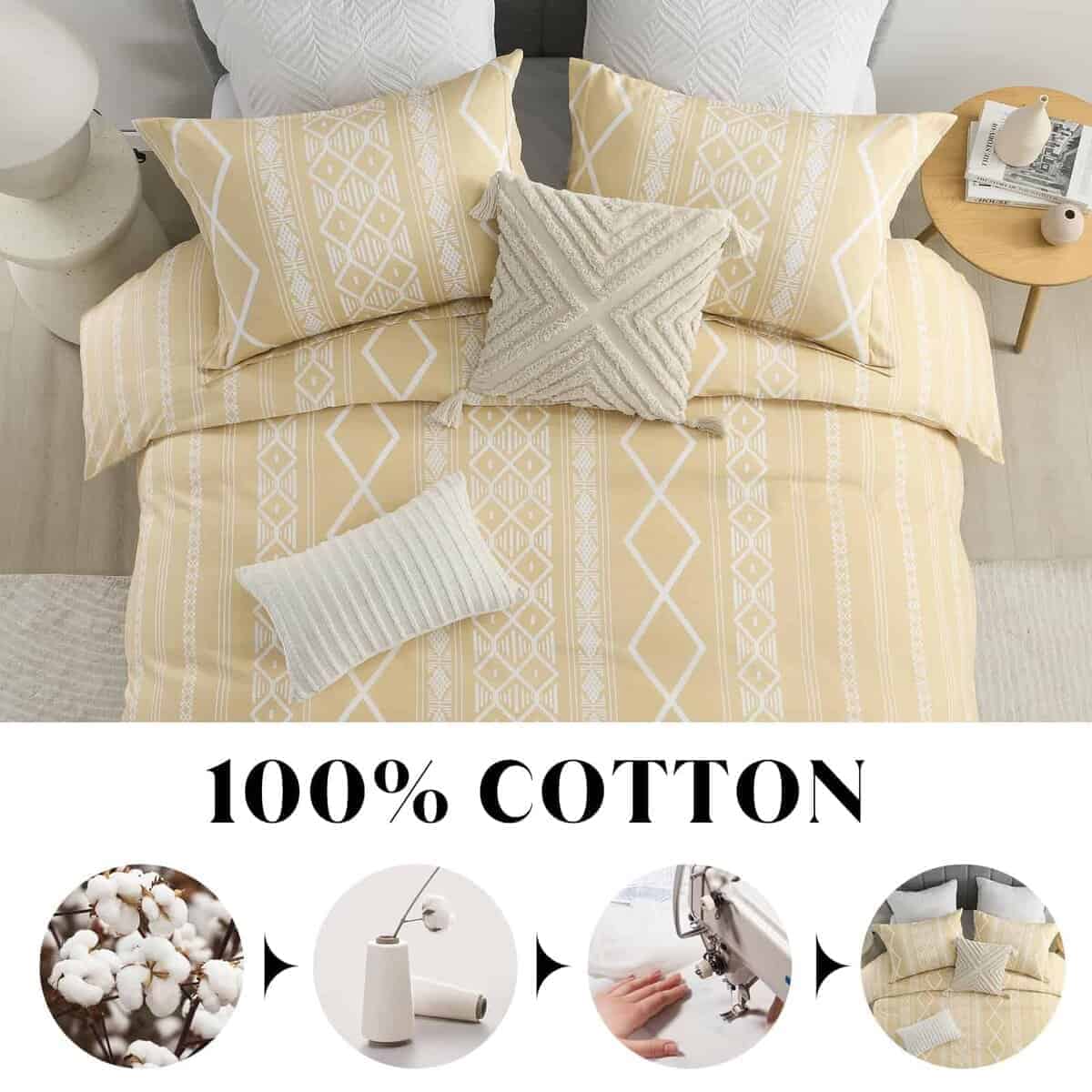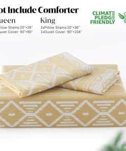 CozyDH Juego de Funda Nórdica Tamaño King – Déjate envolver por la comodidad y estilo de la funda nórdica CozyDH. Hecha de tela de alta calidad y 100% algodón, esta funda de edredón garantiza durabilidad, comodidad y frescura para un descanso reparador. Con un diseño único de patrón geométrico bohemio en tonos beige y amarillo, esta funda nórdica agrega un toque de elegancia y estilo a tu dormitorio, convirtiéndola en una elección ideal para diversas ocasiones como bodas, cumpleaños y festividades. Además, la funda nórdica cuenta con 8 lazos en las esquinas para mantener el edredón en su lugar y un cierre de cremallera oculto para facilitar su apertura y cierre. Las fundas de almohada incluidas cuentan con un cierre de sobre para un fácil acceso. Disponible en tamaños king y queen, este juego de 3 piezas no incluye edredón ni almohada, pero es lavable a máquina para tu comodidad. Disfruta de un descanso tranquilo y sin preocupaciones con la funda nórdica CozyDH.