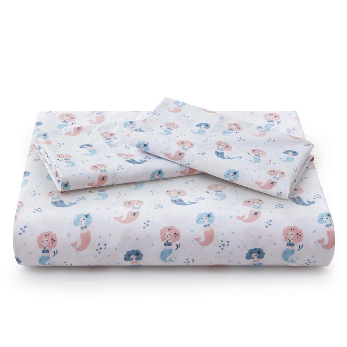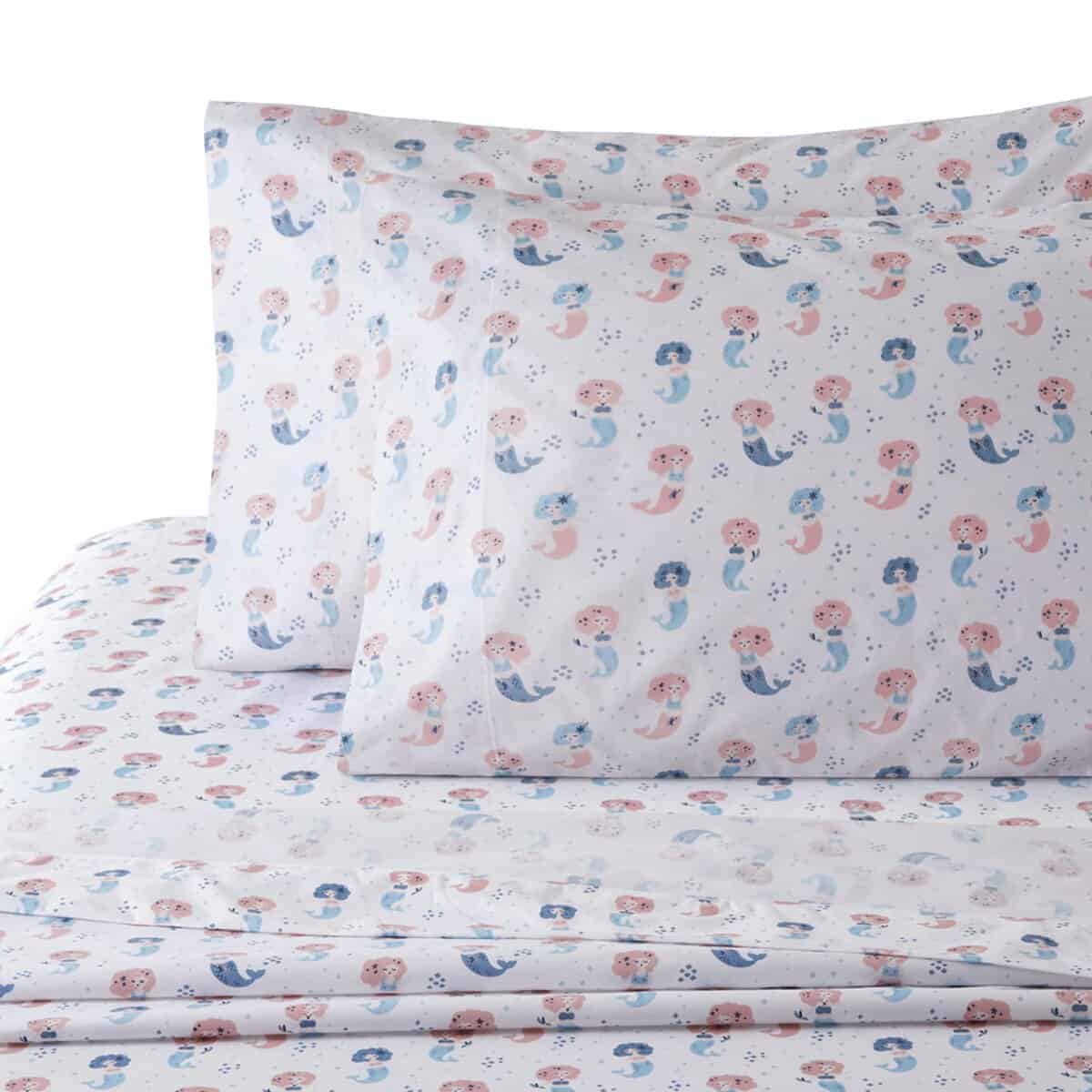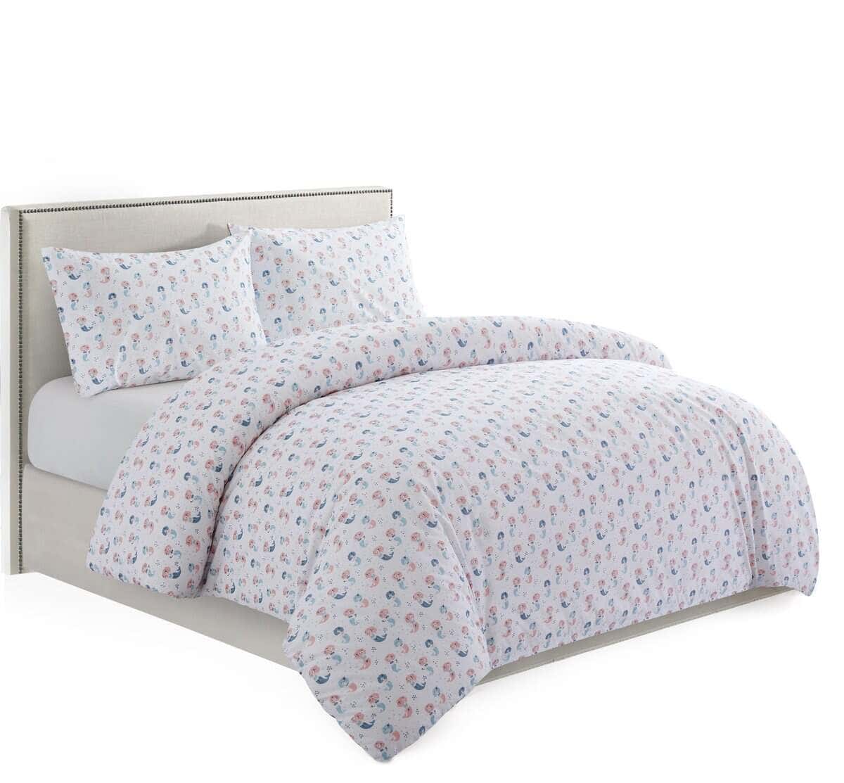 Este juego de funda nórdica para niños de 3 piezas es perfecto para la habitación de cualquier niño. El moderno patrón de sirena con una sirena cantante rosa y azul sobre una base blanca seguro que encantará a cualquier niña pequeña. Las fundas de almohada a juego con el diseño impreso complementan perfectamente la funda nórdica para crear un ambiente divertido y acogedor en la habitación. Este juego de cama para niños está diseñado con elementos encantadores que hacen que la hora de dormir sea más divertida y relajante para los niños.