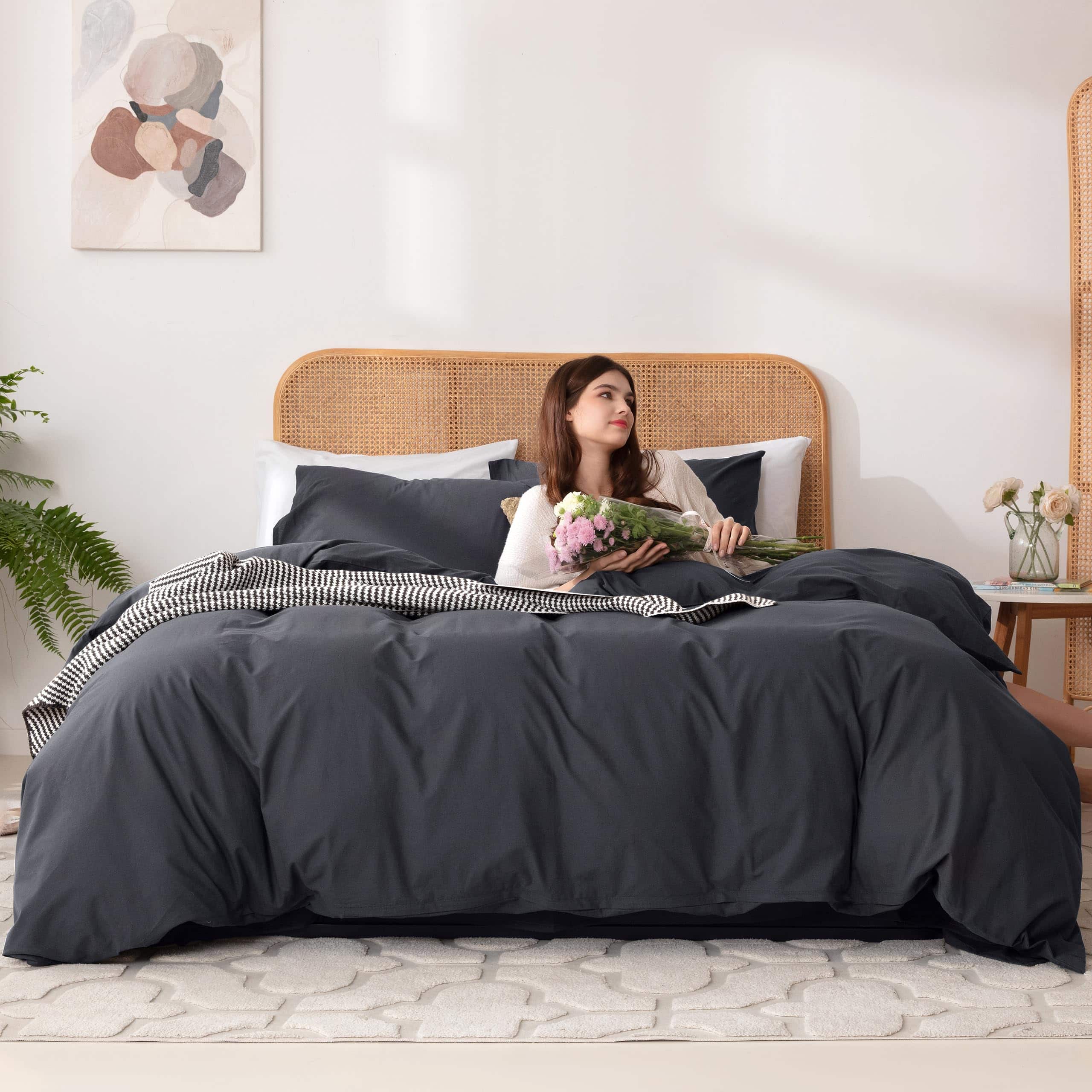 Hecho de algodón lavado ultra suave, este juego de ropa de cama de 3 piezas te brinda una increíble sensación de suavidad. Las fundas de almohada, con un simple cierre tubular recto y una cremallera para la funda nórdica, se pueden abrir y cerrar fácilmente durante el lavado. ¿Qué obtienes cuando compras 1 funda nórdica + 2 fundas de almohada Detalles del producto Material: 102% algodón lavado con agua Método de limpieza: Lavar a máquina