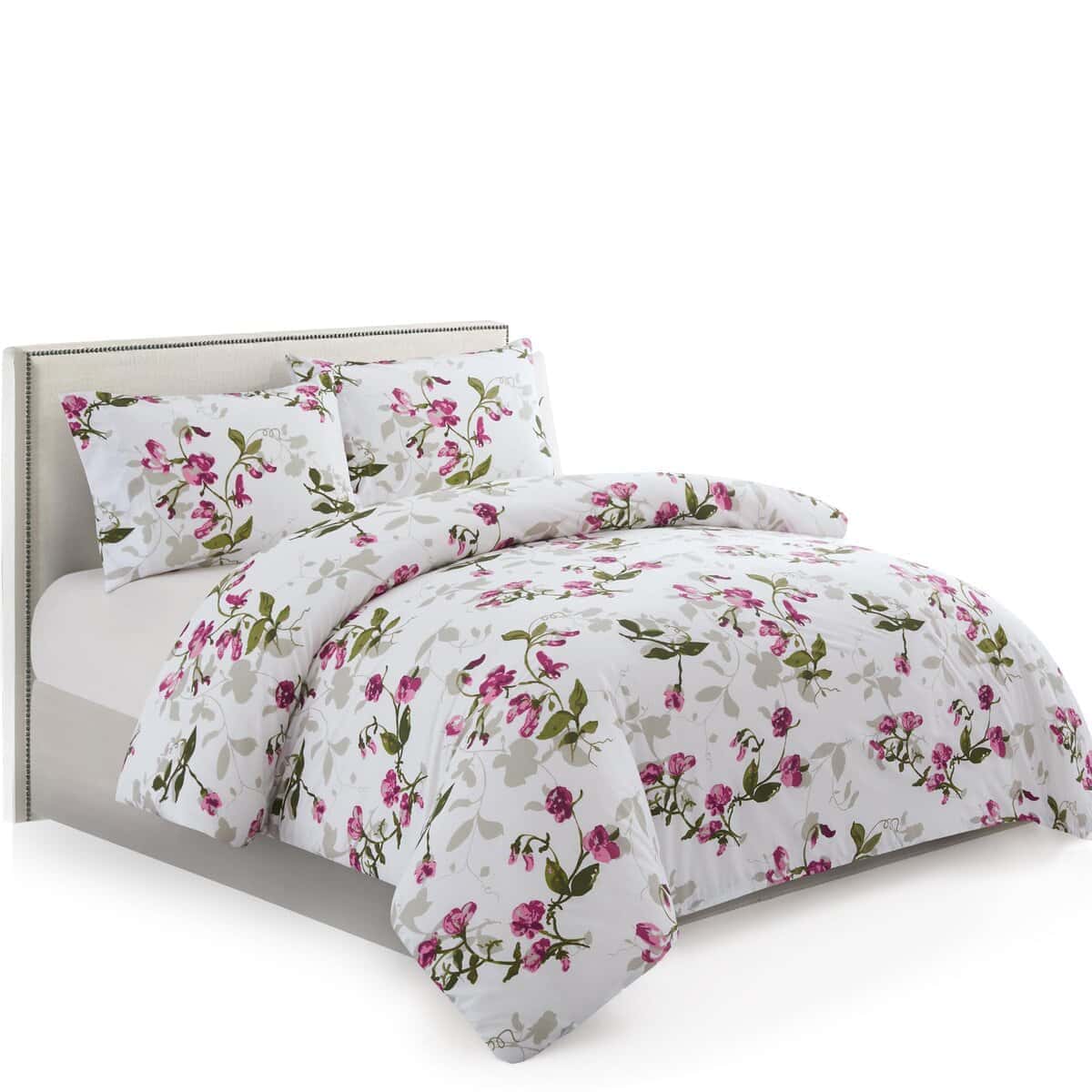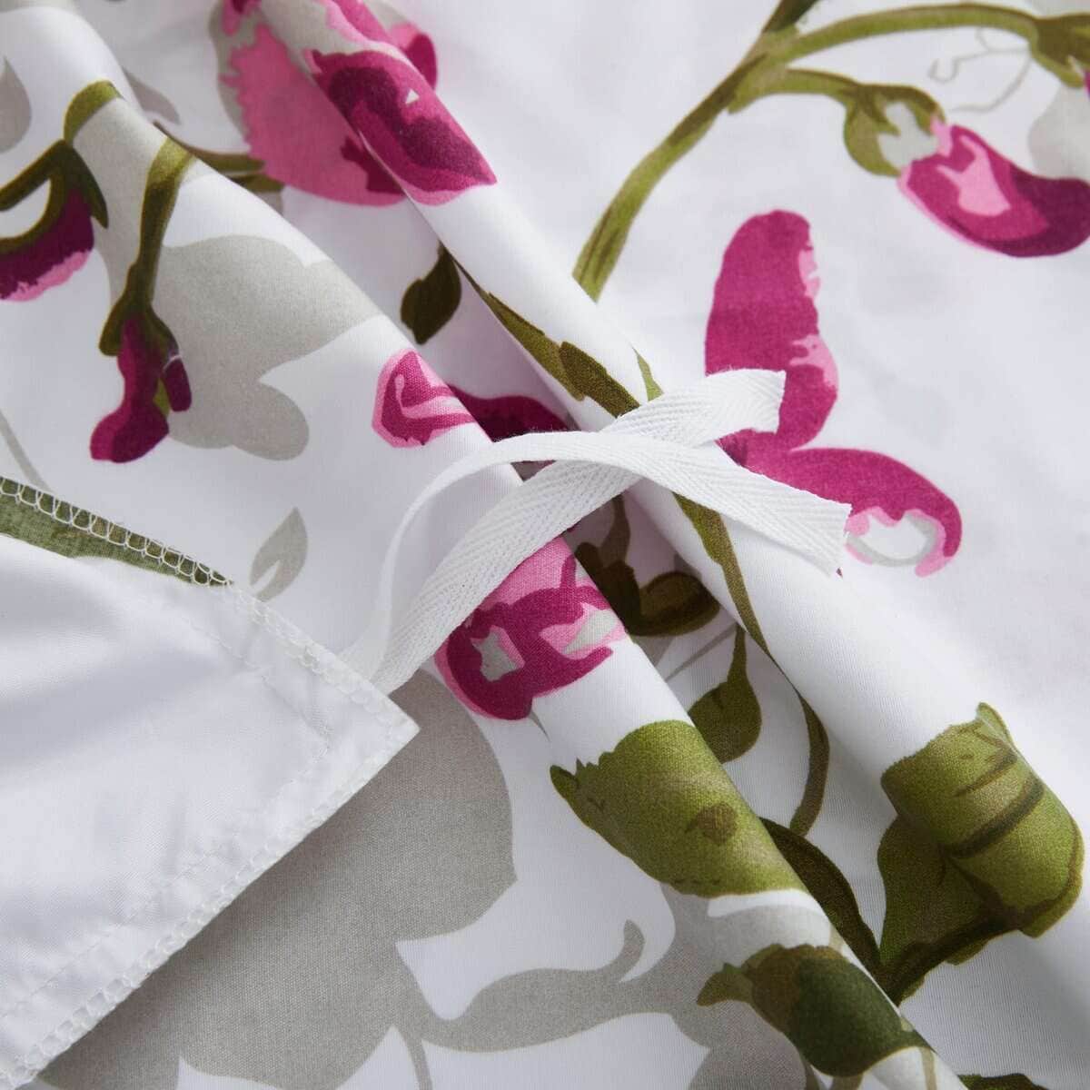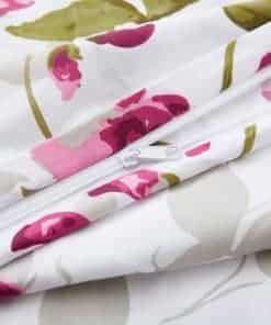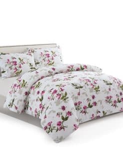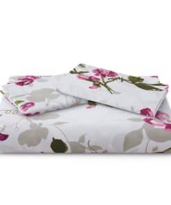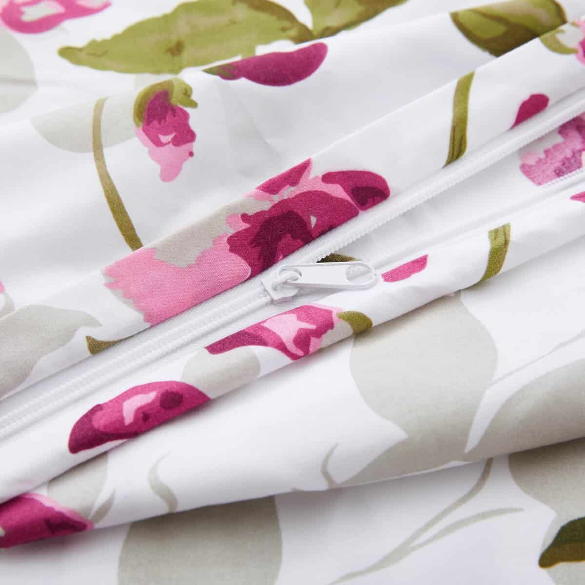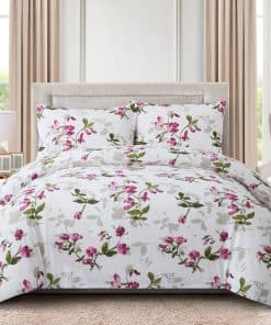 1. Diseño Natural Clásico de Patrones de Flores con Base Blanca y Flores Rosadas, y Hojas y Ramas Verdes Decoradas en Ella. Diseño Estampado a Juego en las 2 Fundas de Almohada. Nuestra Poliéster de 120 GSM y Rayón Derivado del Bambú Doble Cepillada es Suave y Duradera, y Cuenta con un Tejido Transpirable.