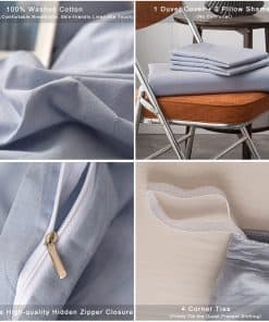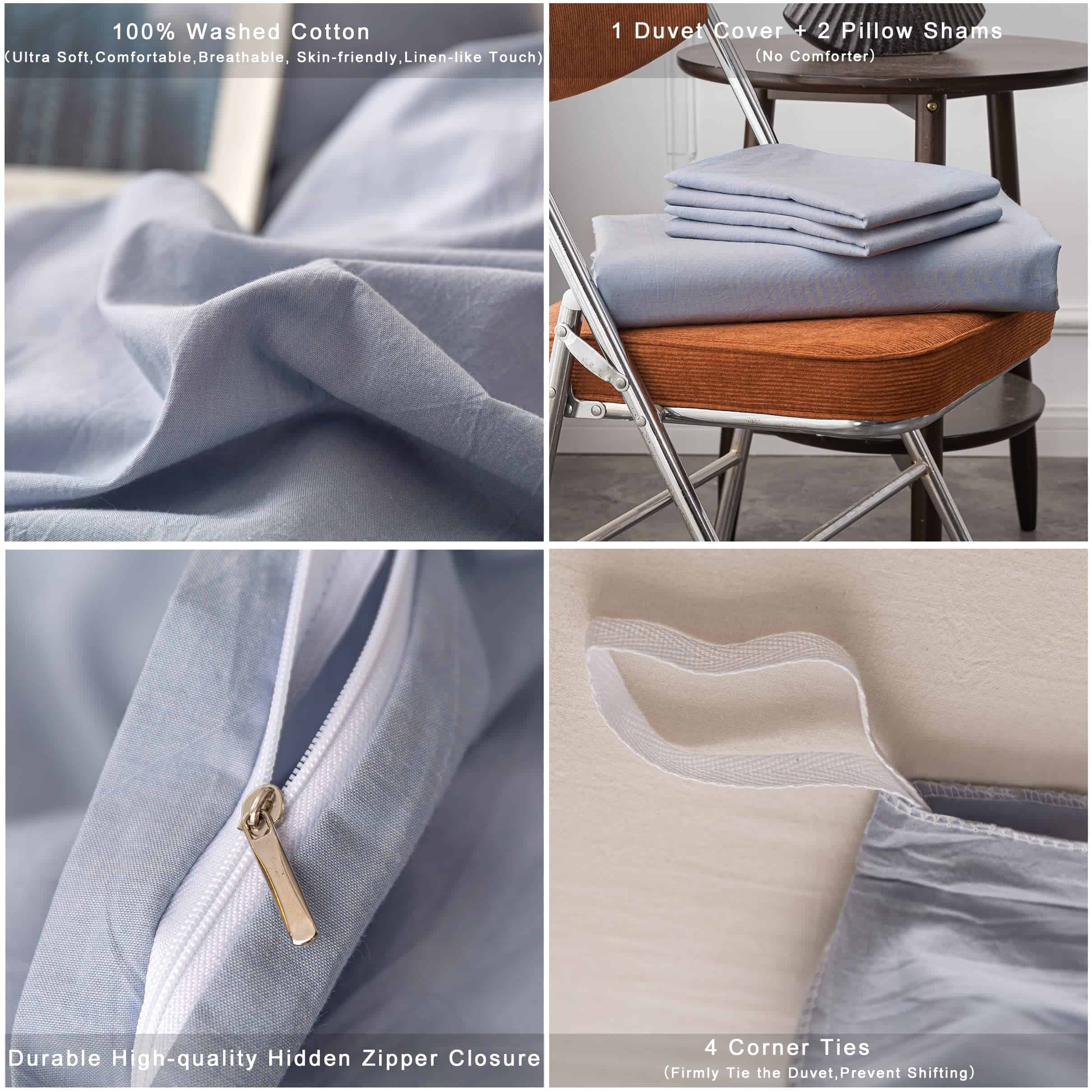 Juego de Funda Nórdica de Algodón Lavado -Azul Claro