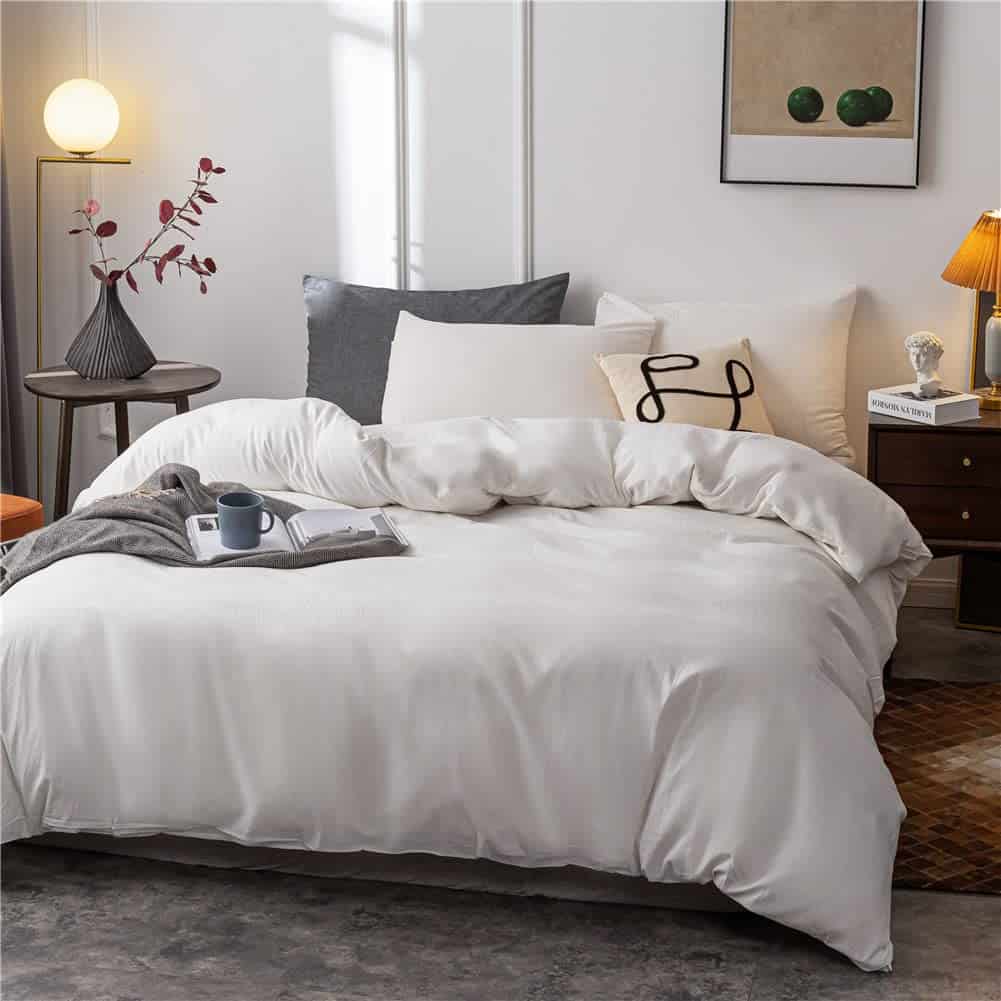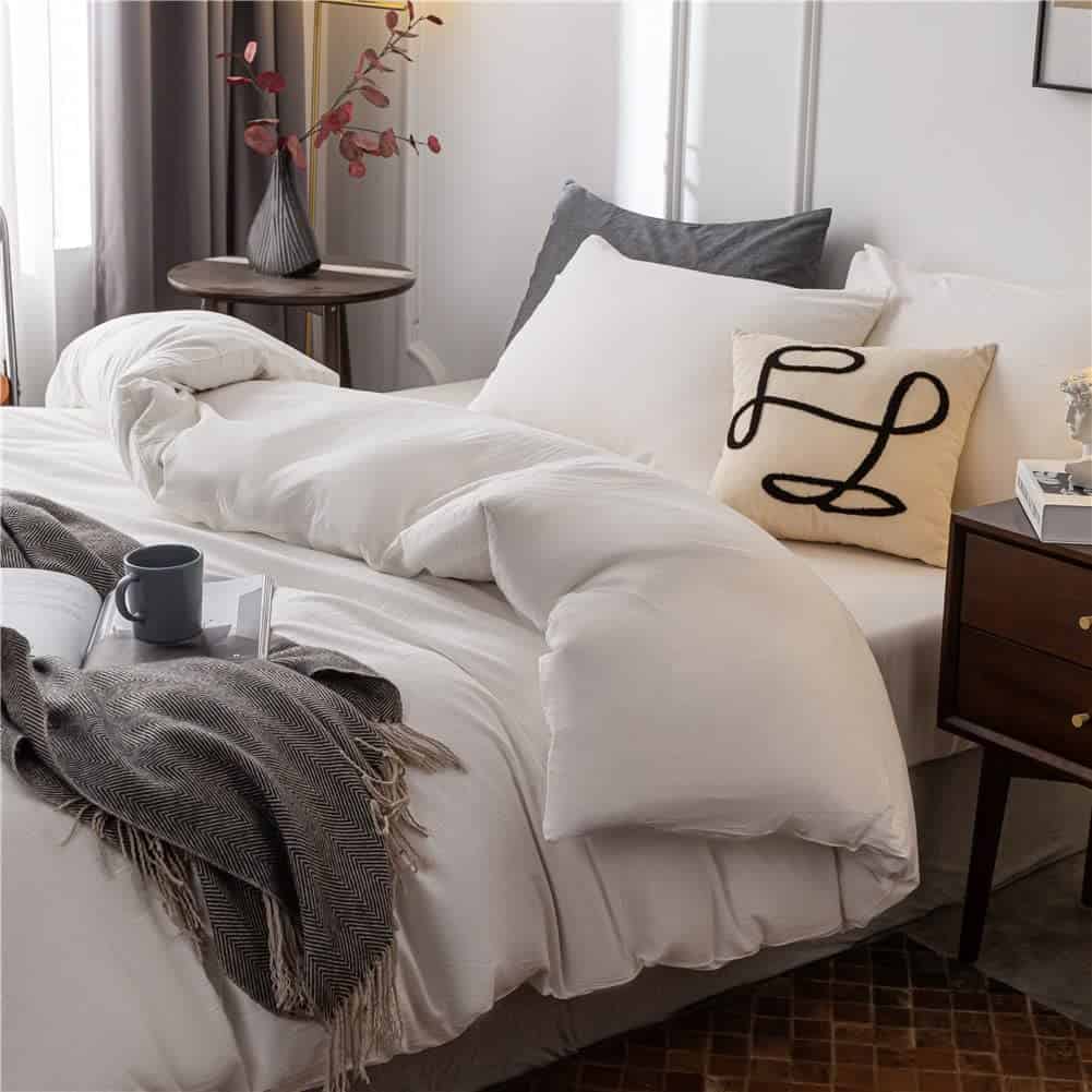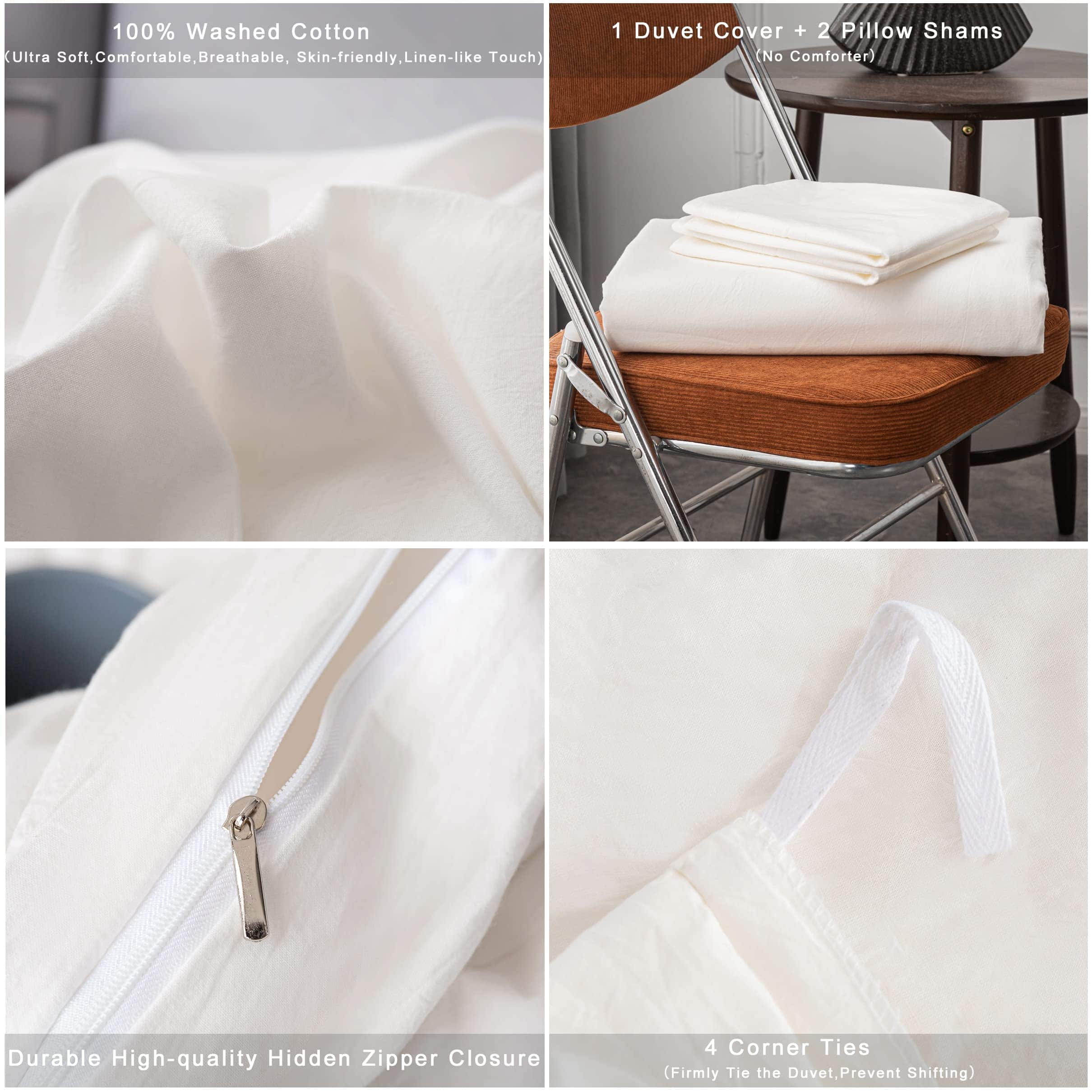 Juego de Funda Nórdica de Algodón Lavado -Blanco