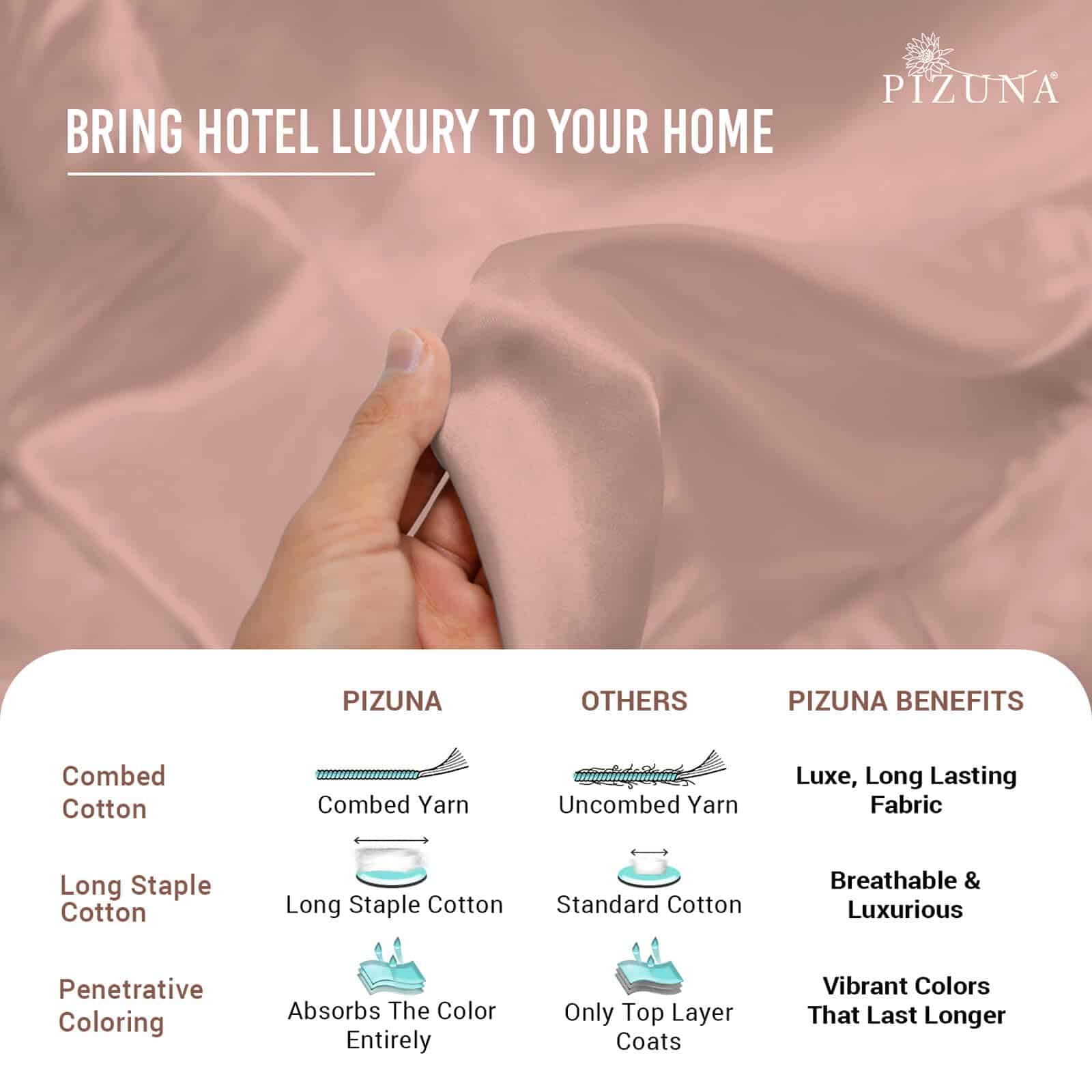 1. Fresco, Transpirable y Suave: Fabricado con 100% Algodón de Fibra Larga en un Tejido de Sarga de 400 Hilos, esta funda nórdica para queen con su textura ligera está hecha con hilos especialmente compactados. El procesamiento mínimo artificial hace que esta funda nórdica sea suave para todo tipo de piel, evita los sudores nocturno, absorbe la humedad y regula la temperatura corporal para dormir fresco manteniendo una apariencia elegante tipo hotel. 2. Lazos de Ajuste Inteligente: El cierre de botones oculto y los 4 lazos de esquina dan un ajuste seguro e inteligente, evitando que el edredón o la funda nórdica se amontonen en su interior. El juego incluye 1 funda nórdica (90 x 90 ) y 2 fundas de almohada con elegantes volantes y cierre de sobre conveniente (20 x 26 ). 3. 100% Algodón Natural y Mercerizado Peinado: Con la técnica de hilado fino de Pizuna, este conjunto de funda nórdica para queen de algodón peinado de 400 hilos presenta un tejido de sarga de una sola trama (4 arriba-1 abajo). El uso de algodón mercerizado peinado hace que este conjunto de funda nórdica sea suave y resistente. La ropa de cama de algodón puro y natural se arruga pero es distintivamente más fresca y transpirable. Además, se suaviza y las arrugas se reducen con cada lavado. 4. Estándar de Calidad Pizuna: Los productos de Pizuna son individualmente confeccionados, medidos y verificados (pieza por pieza) por nuestro equipo de Control de Calidad. El tejido de la funda nórdica de algodón queen es Certificado OEKO-TEX & AZO-Free (2024), libre de sustancias sintéticas y respetuoso con el planeta, lo que lo hace reconfortante incluso para la piel más delicada. 5. Indulge Responsablemente: Esta funda nórdica de algodón para queen cumple con BSCI, es socialmente responsable y respetuosa con el medio ambiente. El uso de materiales reciclados para el embalaje puede agregar un olor desagradable que desaparece después del primer lavado en agua tibia. Hecho con tintes resistentes a la decoloración, es apto para lavar a máquina en ciclo suave, secar en secadora a baja temperatura. El uso de lejía puede afectar los colores. 6. Diseñado para un Mejor Sueño: Nuestros expertos en sueño internos estudian el comportamiento y los patrones de sueño del usuario, lo que resulta en una mejora del producto y un embalaje compacto. Disponible globalmente en múltiples colores y tamaños, haz de esta lujosa funda nórdica de algodón para queen el regalo perfecto para tus seres queridos. 7. Pizuna se Preocupa: Miles de familias felices y medios de comunicación han elogiado nuestra funda nórdica de algodón puro para queen. Sin embargo, si no estás satisfecho con el producto, puedes devolverlo dentro de los 30 días según la política, más allá de eso nuestro equipo de atención al cliente estará allí para ayudarte también.