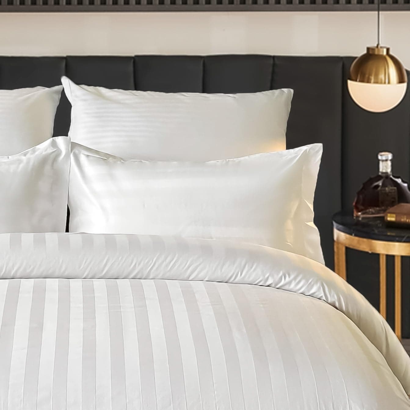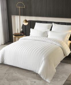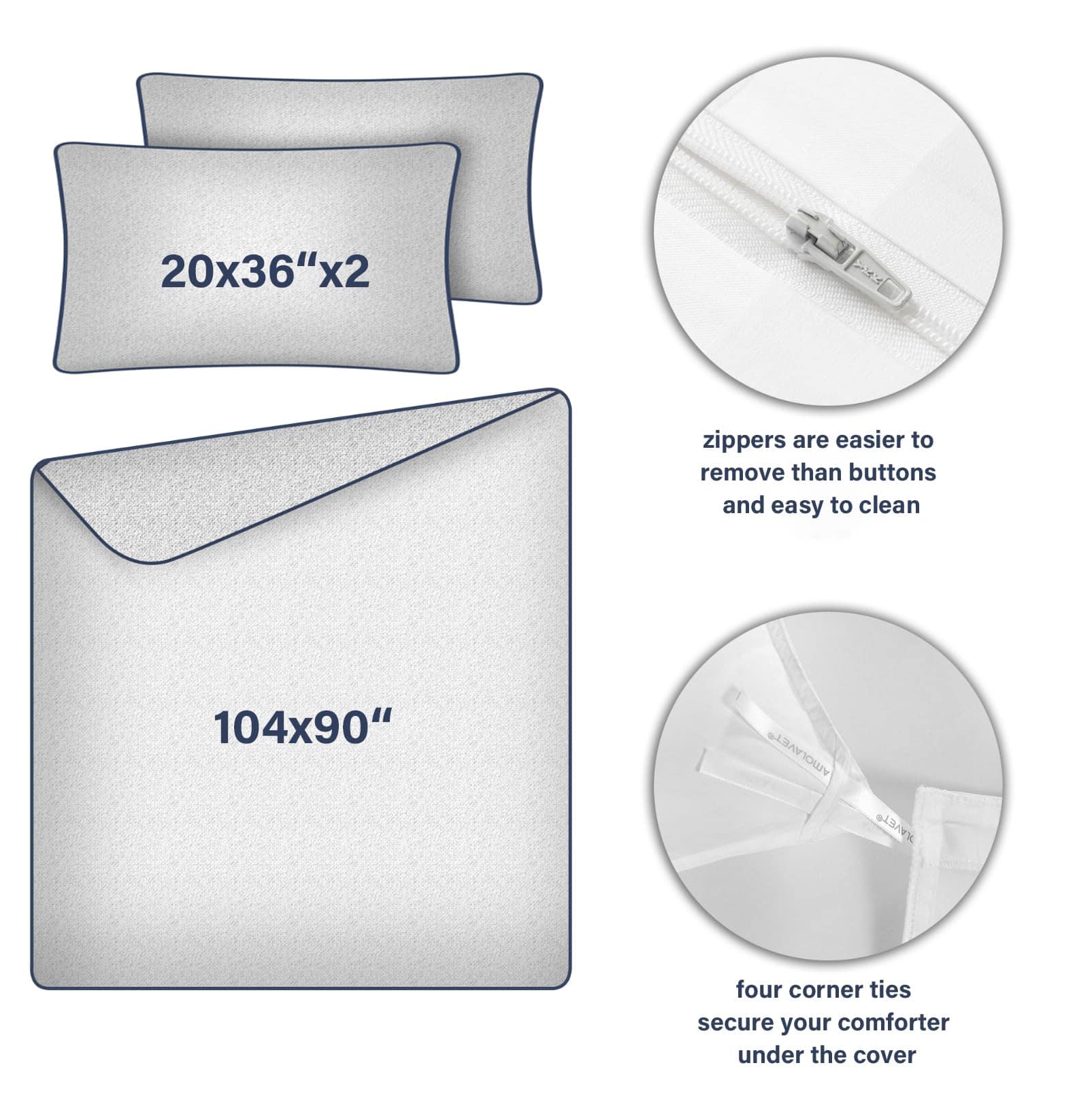 100% algodón. TELA NATURAL Funda nórdica blanca tamaño king fabricada con 100% algodón. Las fibras vegetales naturales tienen excelentes propiedades como alta transpirabilidad, regulación de temperatura, absorción de humedad e hipoalergénico, convirtiendo esta funda nórdica de algodón tamaño king en una excelente opción para durmientes calurosos y personas con piel sensible. ASPECTO DE LUJO Funda nórdica de hotel elaborada con algodón de 700 hilos de fibra larga. La tela de satén de algodón tiene un brillo hermoso y arrugas mínimas, brindando un aspecto nítido y elegante a tu dormitorio, transformando tu cama en una lujosa habitación de hotel. LO QUE PUEDES OBTENER El juego de funda nórdica king incluye 1 funda nórdica (104″ x 90″), 2 fundas de almohada (20″ x 36″+ 2″) y 1 bolsa de tela con cordón reutilizable. ( Ten en cuenta que esta funda nórdica tamaño king no incluye edredón o inserto de relleno.). DETALLES CUIDADOSOS La funda nórdica king de la colección de hotel está terminada con cierre de cremallera oculta para sellar tu edredón, colcha o funda nórdica de forma rápida y sencilla, y con 4 lazos interiores en las esquinas para mantener el edredón en su lugar. La funda de almohada presenta un cierre de sobre para que las almohadas permanezcan en su lugar. EXCELENTE CALIDAD Este juego de funda nórdica de hotel de calidad premium y duradera presenta una construcción de costuras ordenadas que garantiza una conexión más fuerte en las costuras para una mayor durabilidad. Nuestra funda nórdica blanca se fabrica meticulosamente en una fábrica certificada por OEKO-TEX estándar 100, lo que significa que no se utilizaron productos químicos dañinos y es respetuosa con el medio ambiente. FÁCIL DE CUIDAR Lavable a máquina, lavar en ciclo suave a menos de 60 grados con colores similares. Secado a baja temperatura y se puede blanquear. Las pruebas han demostrado que la funda nórdica king mantiene su forma y permanece en condiciones nuevas después de más de 100 lavados. ( Cierra completamente la cremallera al lavar.). SERVICIO DE SATISFACCIÓN Amolavet ofrece servicio de devolución y reemplazo de 1 año y servicio de atención al cliente gratuito de por vida. Tu satisfacción es nuestra prioridad! Si tienes alguna pregunta o inquietud, no dudes en contactarnos, te responderemos en un plazo de 24 horas.