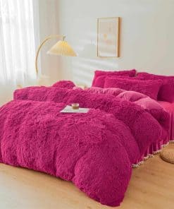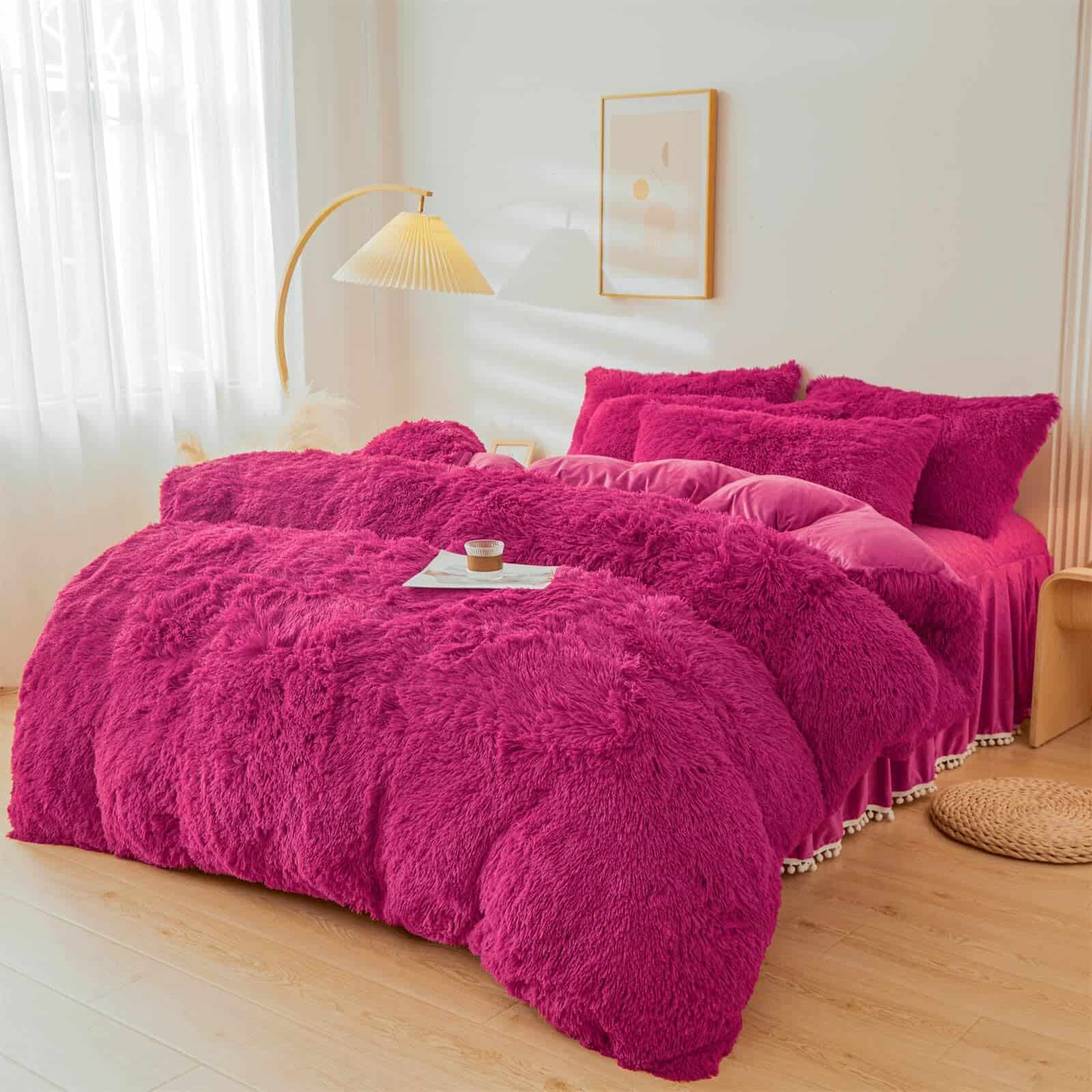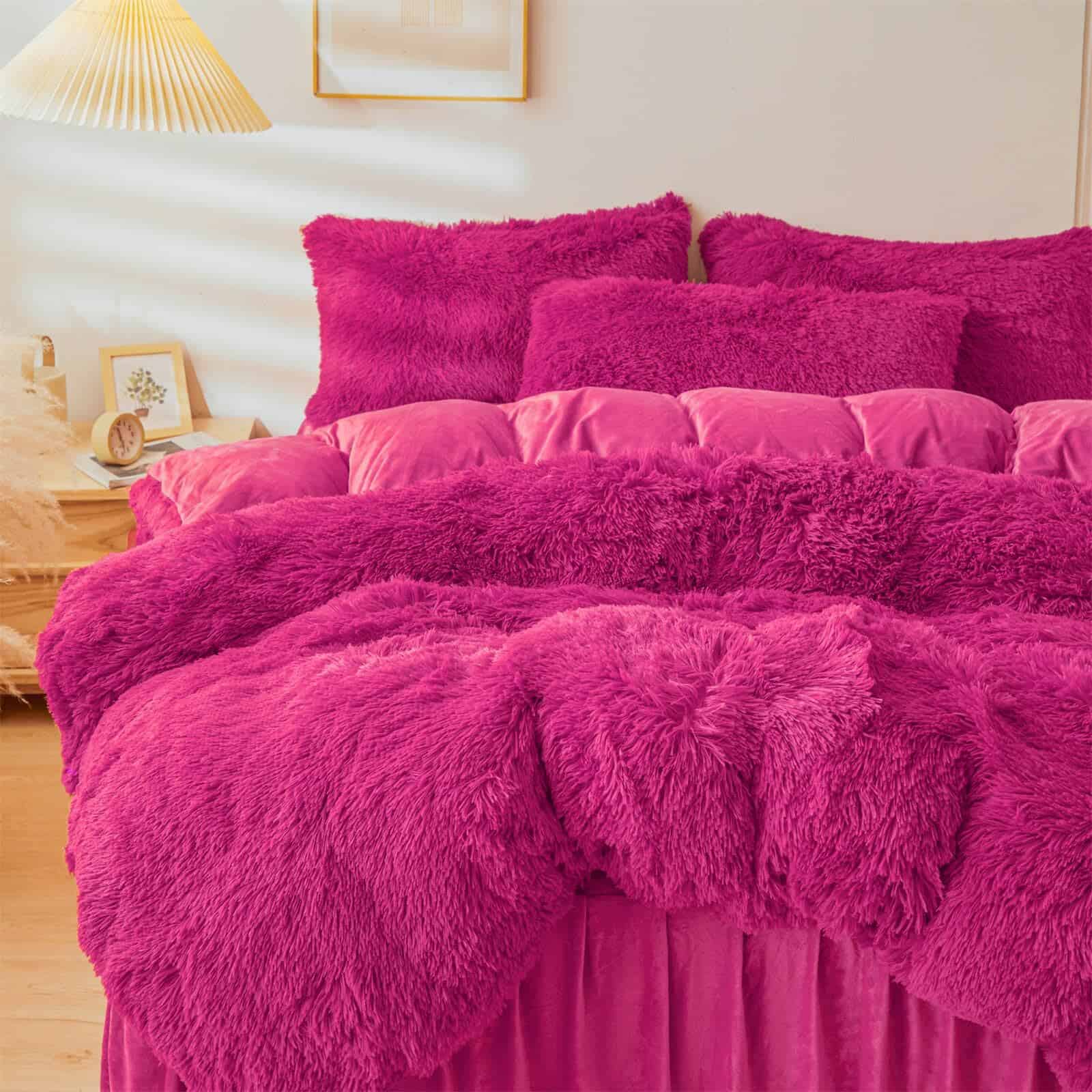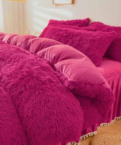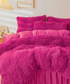 Juego de Funda nórdica de Felpa Esponjosa de Color Rosa