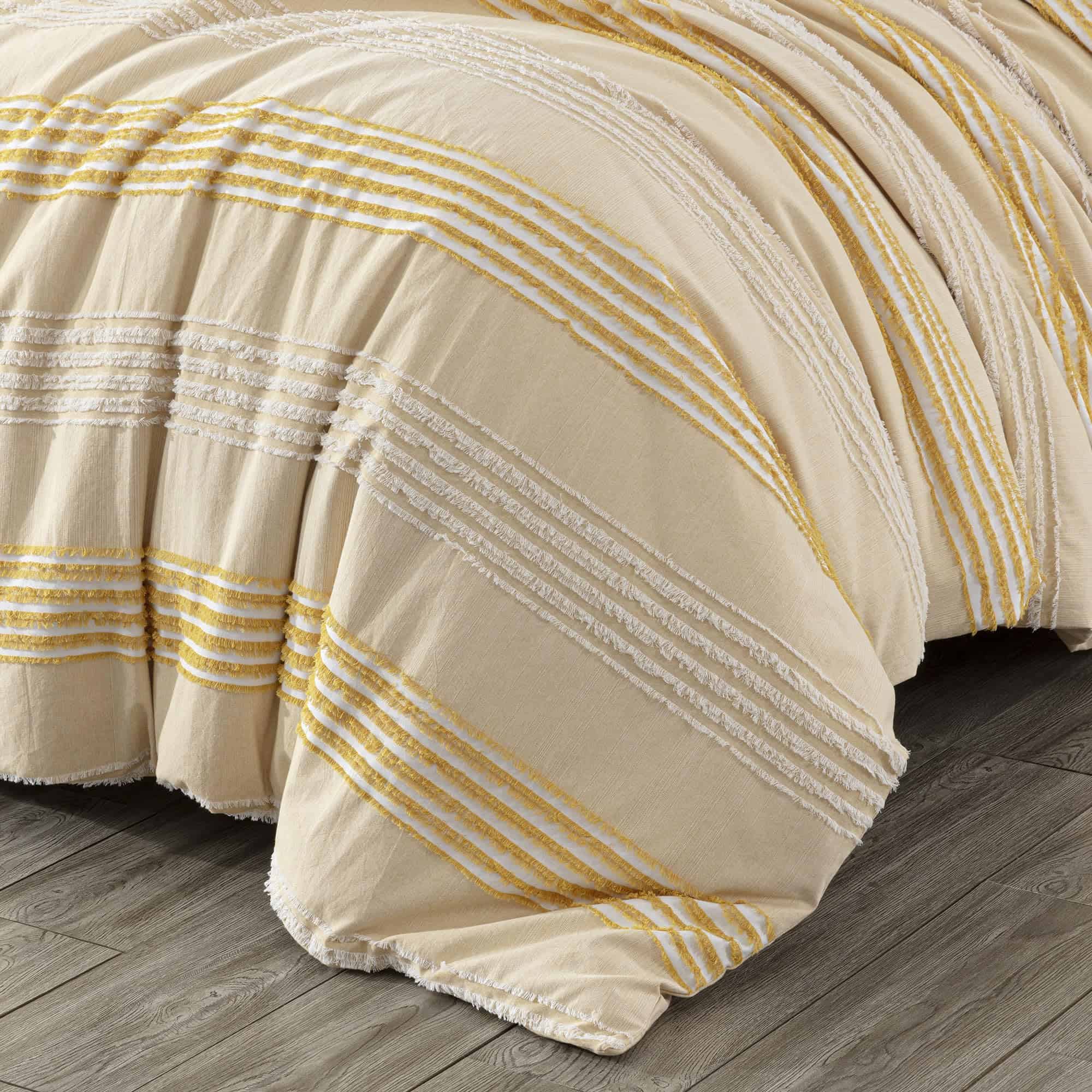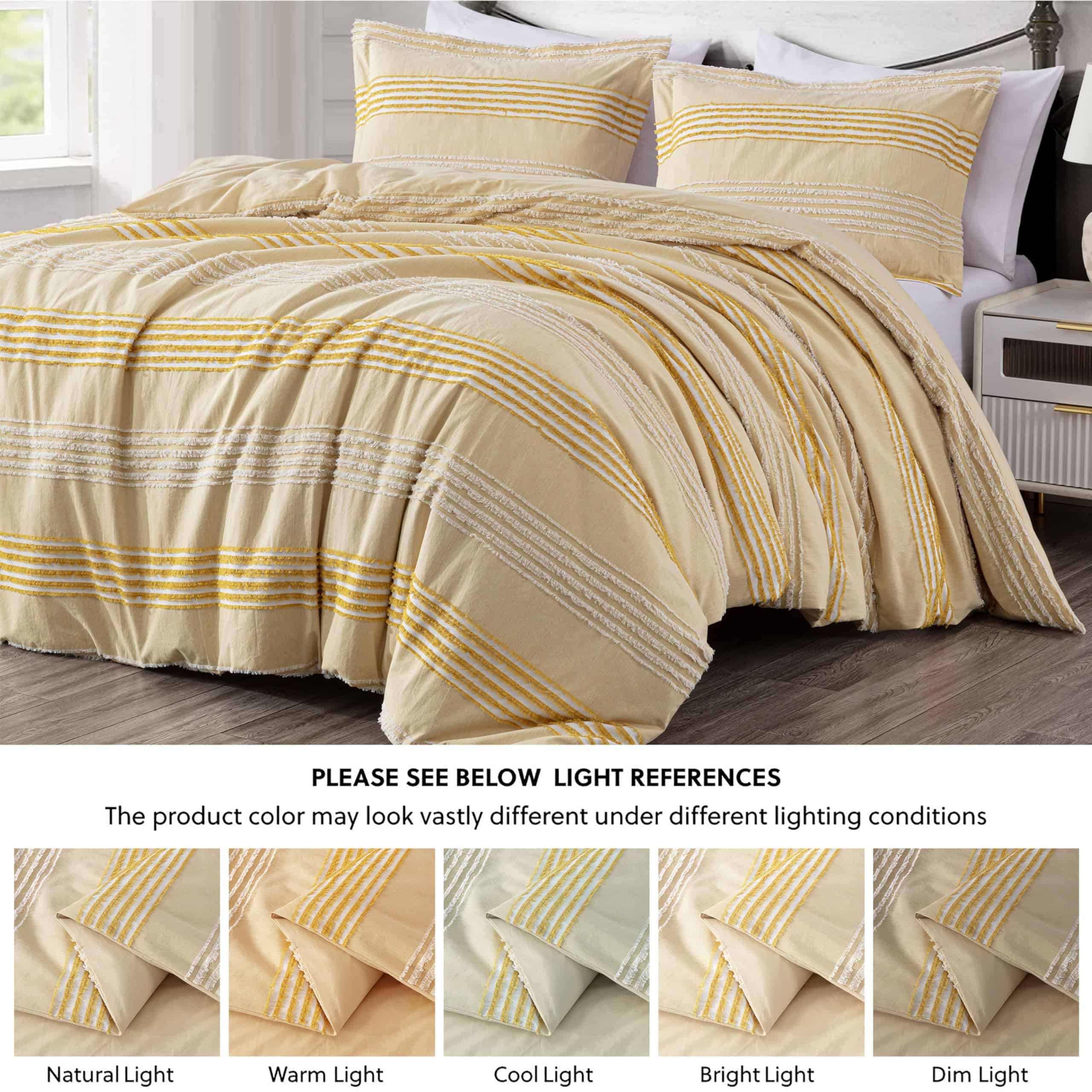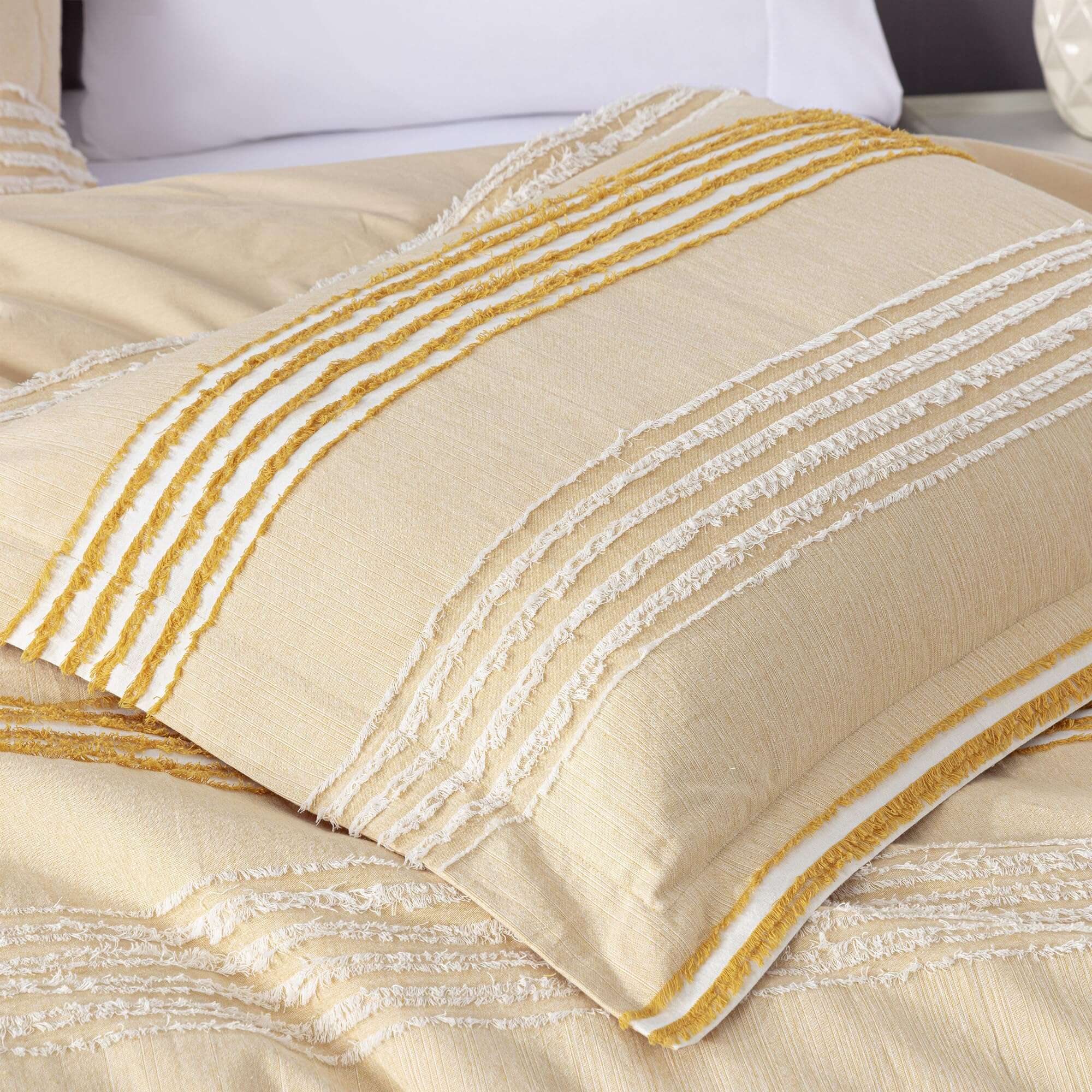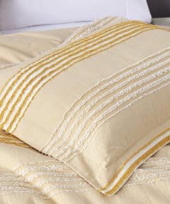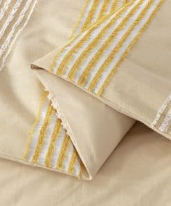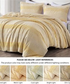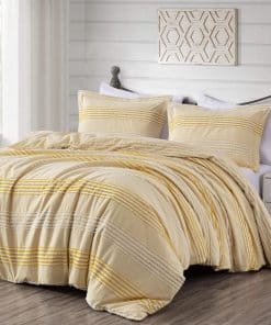 1. Juego de lujo de ropa de cama de 3 piezas de Jacquard de Algodón con Clips: Incluye una funda nórdica King (108″ W x 96″ L) y dos fundas de almohada a juego (20″ x 36″ +2″) para un aspecto coordinado. 2. Diseño elegante: Presenta un elegante patrón de rayas con detalles de jacquard y clips para una pizca de encanto boho chic con el patrón de ribete deshilachado para agregar dimensión a este aspecto. 3. Material premium: Confeccionado con una tela de algodón de alta calidad, esta funda nórdica ofrece una textura rica y una sensación de lujo, proporcionando una experiencia de sueño suave, transpirable y cómoda. 4. La funda nórdica utiliza un cierre de botones oculto y lazos interiores en las esquinas para ayudar a mantener su inserto en su lugar durante toda la noche. Se incluyen 8 lazos en las esquinas interiores para evitar desplazamientos y asegurar un ajuste ceñido. 5. Fácil cuidado: Este set es lavable a máquina en agua fría y se puede secar en secadora a baja temperatura. No usar lejía.