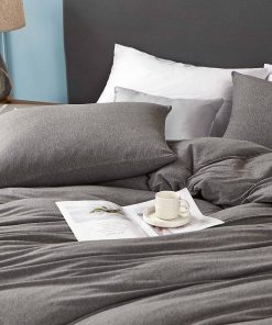 1. Material 100% algodón jersey de punto natural, patrón de rayas jaspeadas. La tela elástica de punto de algodón de selección de fibra larga tiene un tacto de piel súper suave, cubre tu cuerpo como una suave camiseta interior, te hace sentir cómodo y relajado al dormir. Incluso puedes dormir desnudo con esta funda nórdica.