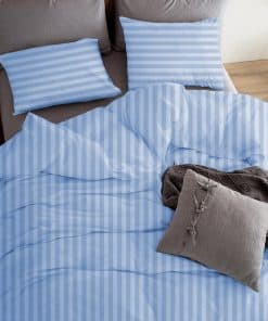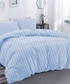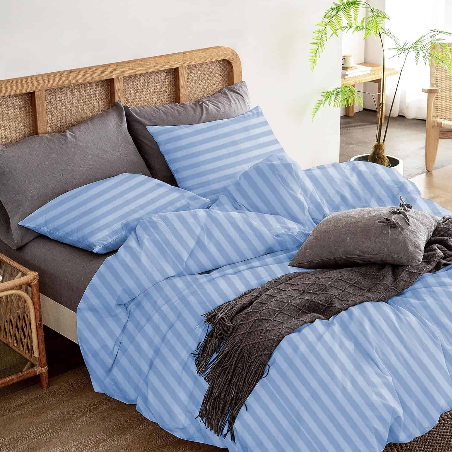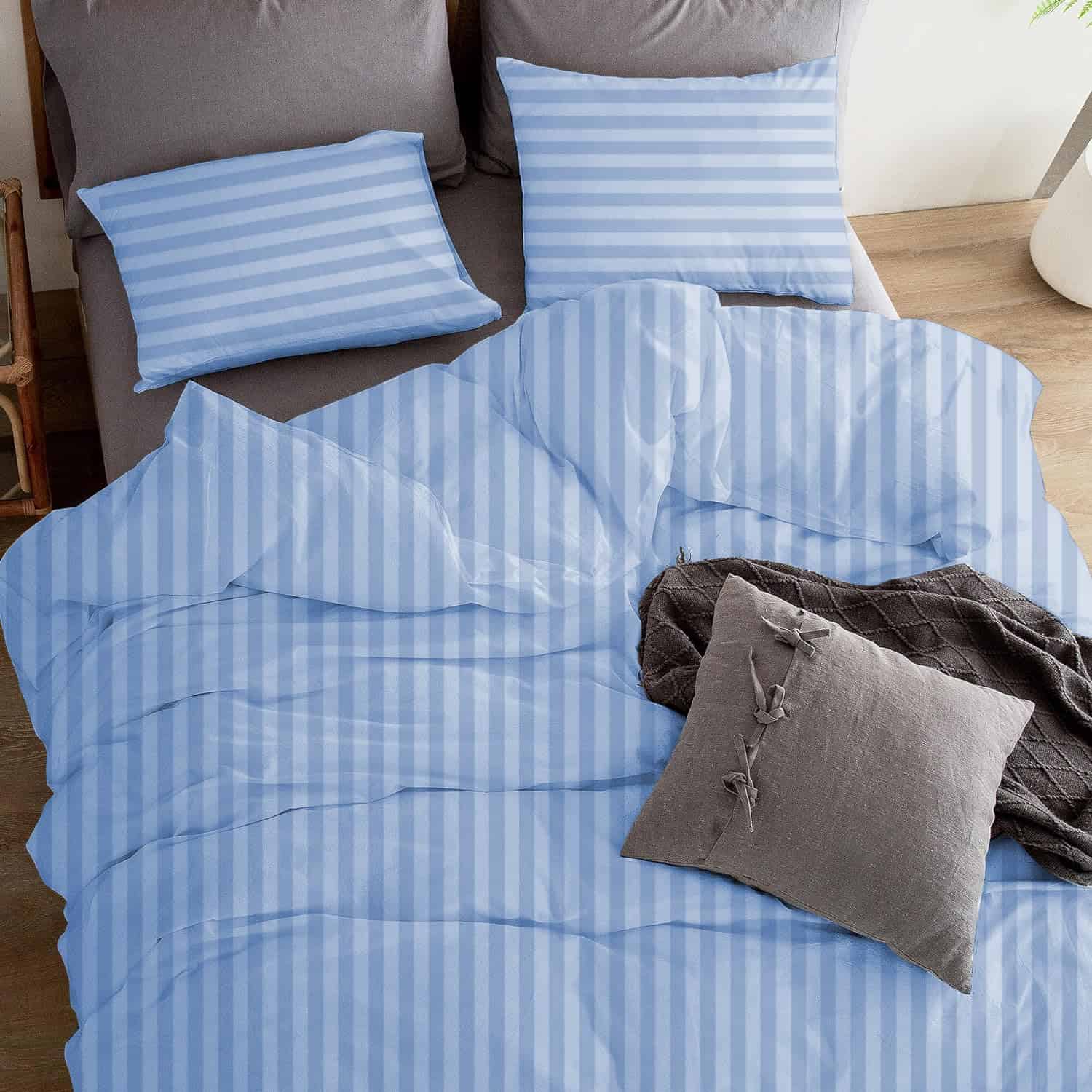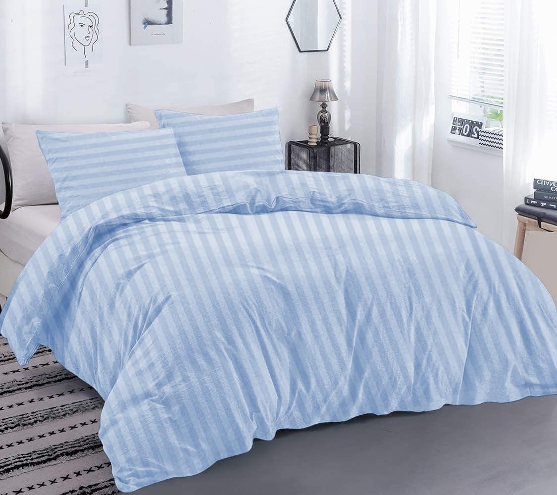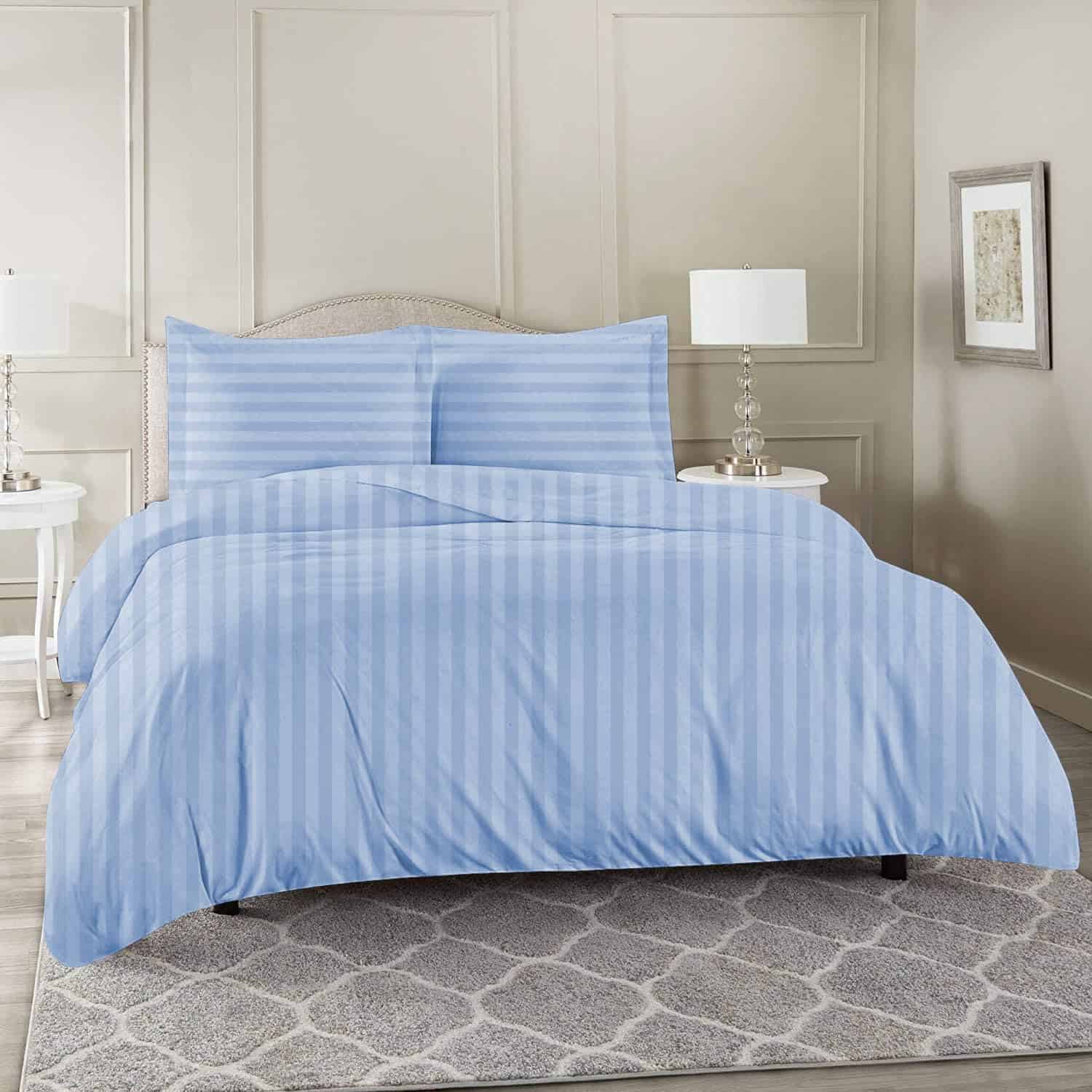 Luxury 800 Thread Count 100% Egyptian Cotton 3 Piece Duvet Cover Set with Zipper Closure & Corner Ties Soft Super King Plus (120″x120″) Inch – Light Blue Stripe
