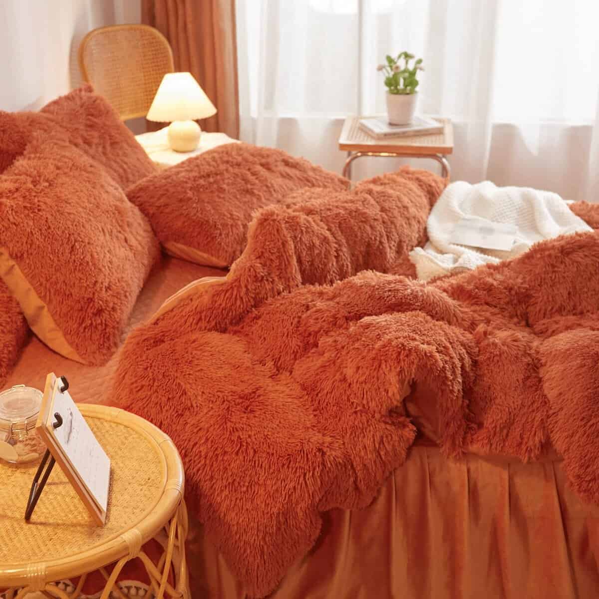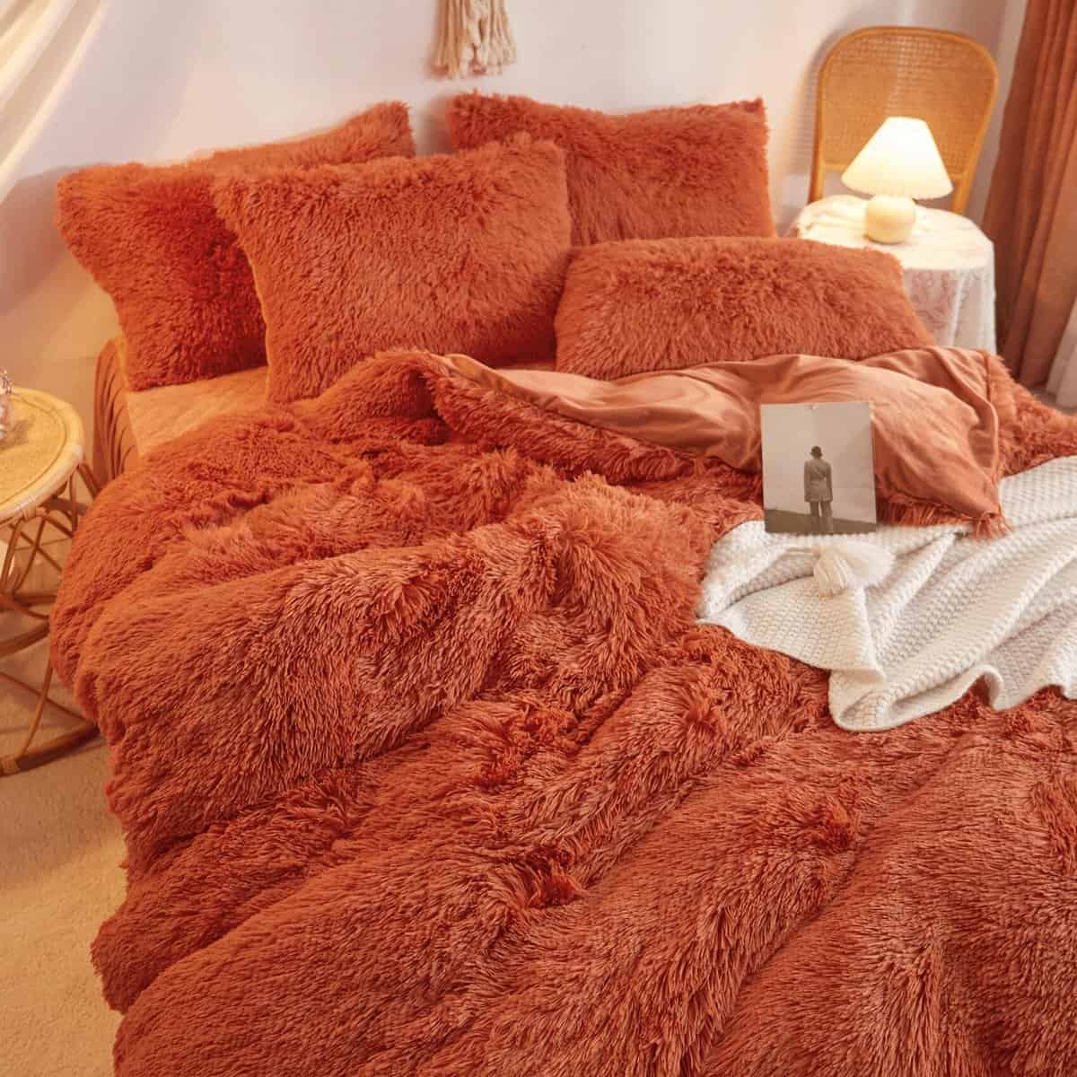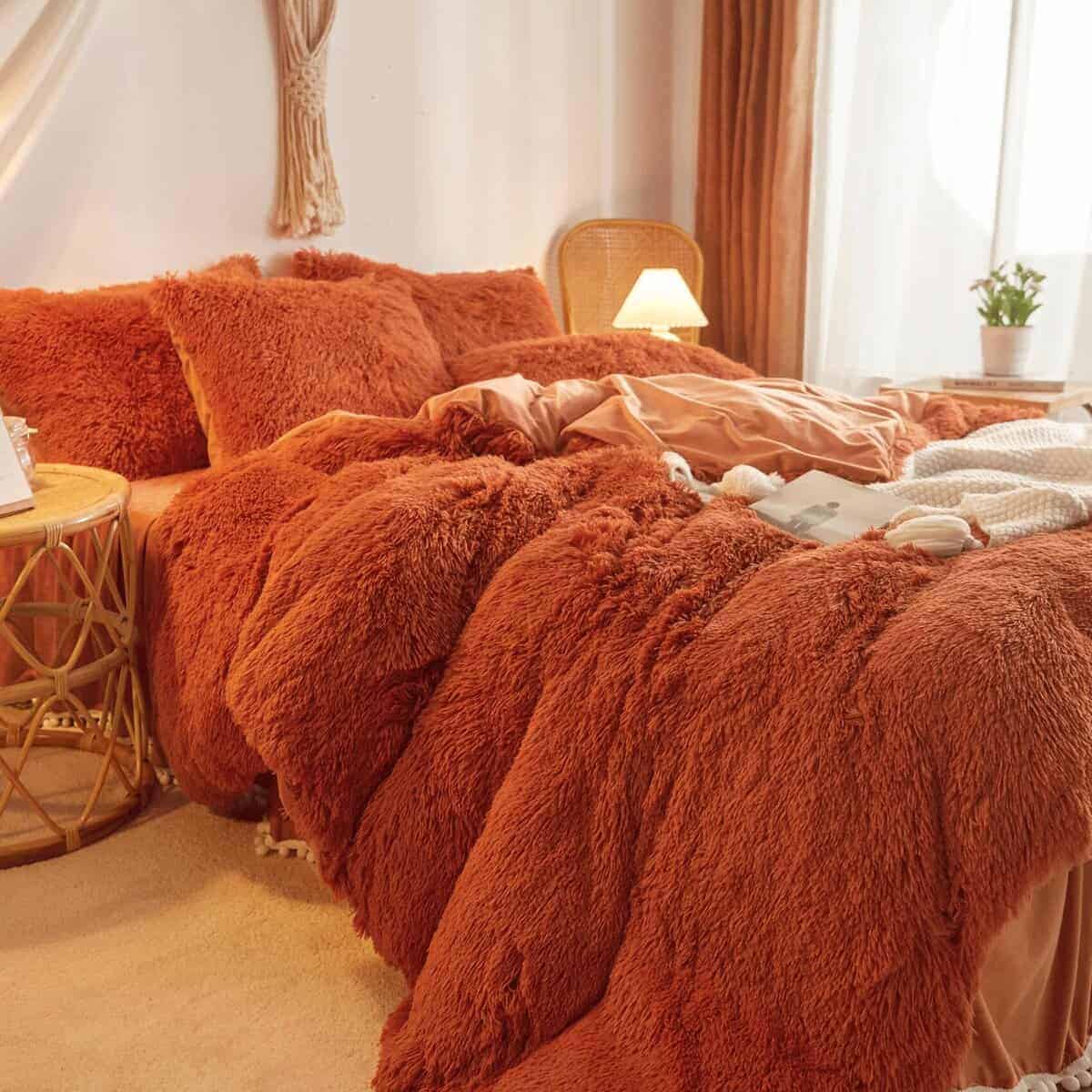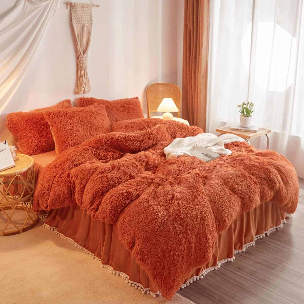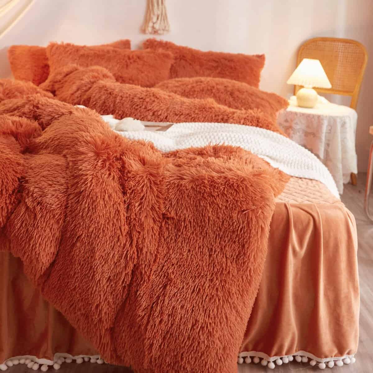 Juego de Funda Nórdica de Piel Sintética Color Naranja