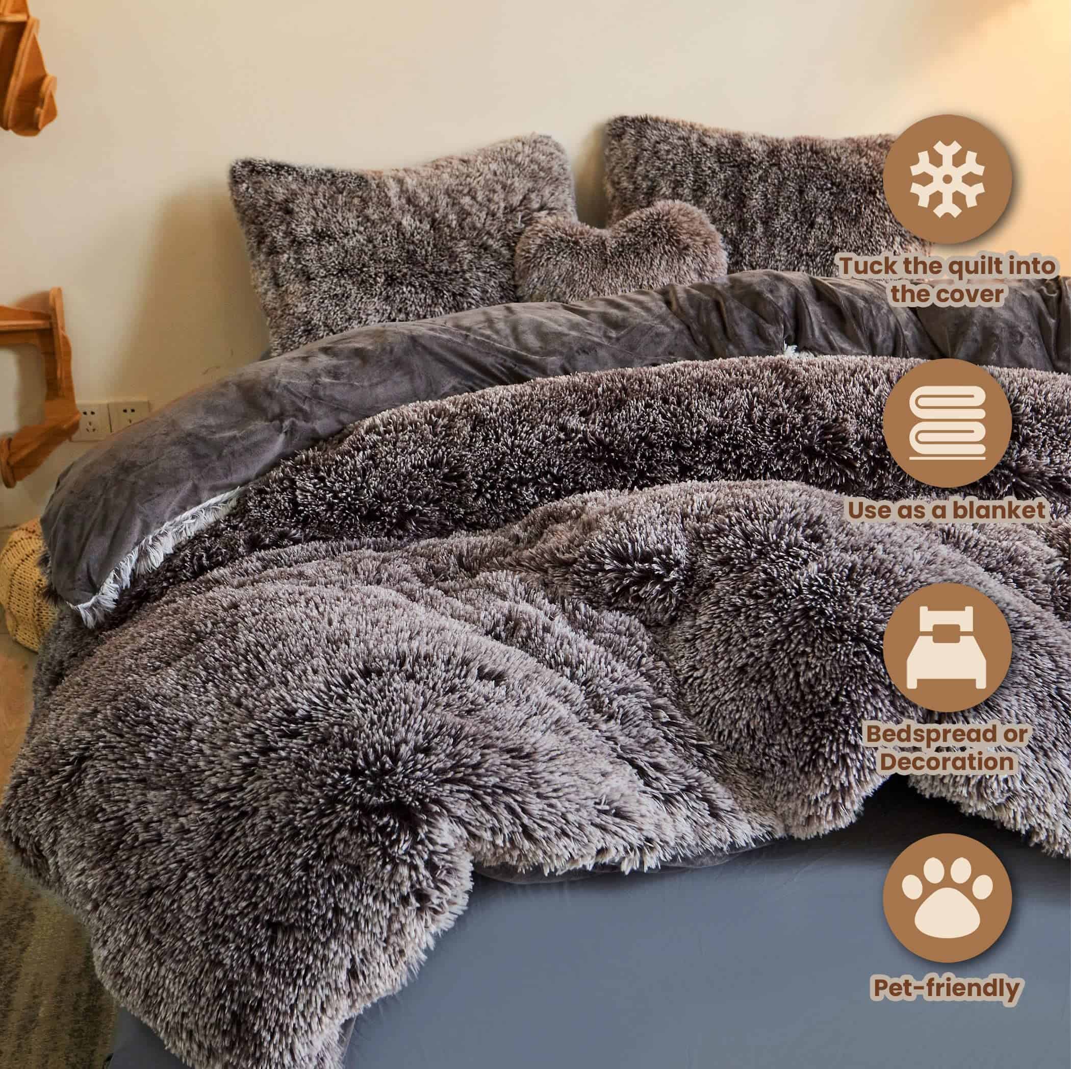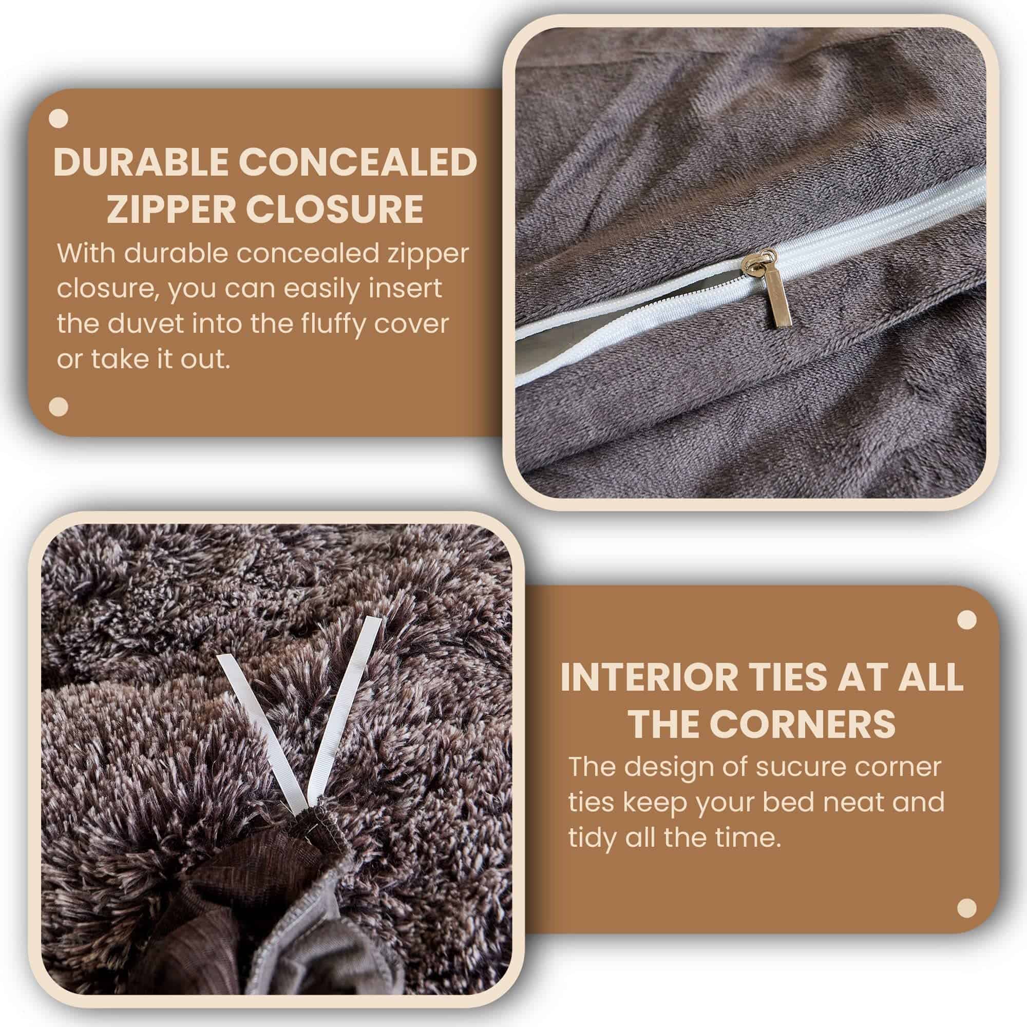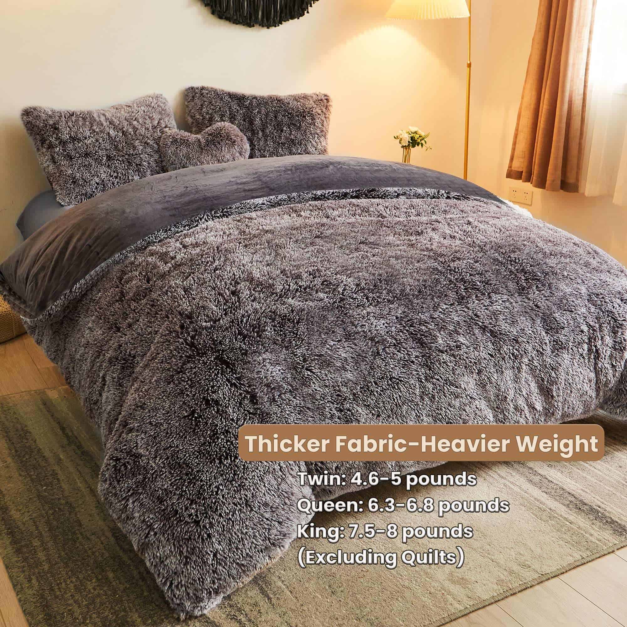 1. MATERIAL DE CALIDAD: Nuestro juego de ropa de cama de piel sintética está hecho de material microfibra suave y de alta calidad. Lujosa felpa larga de 45 mm, brinda un toque impresionante de glamour a la decoración de tu dormitorio/habitación de invitados. El reverso está hecho de material de terciopelo ultra suave y amigable con la piel, cómodo, cálido y suave, para crear una experiencia de sueño serena. Resistente a la decoloración, arrugas, encogimiento, resistente a las bolitas y transpirable. 2. PAQUETE: Tamaño individual de la funda nórdica – 2 piezas que incluyen una funda de 68″x90″ y una funda de almohada de 20″x26″; Tamaño queen de la funda nórdica – 3 piezas que incluyen una funda de 90″x90″ y dos fundas de almohada de 20″x26″; Tamaño king de la funda nórdica – 3 piezas que incluyen una funda de 90″x104″ y dos fundas de almohada de 20″x36″. 3. CARACTERÍSTICAS: En comparación con la piel sintética general, nuestro juego de confort de felpa es más esponjoso y más grueso. Con cierre de cremallera oculta, puedes insertar fácilmente el edredón en la funda esponjosa, y tu edredón se volverá lujoso y cálido. Es más que una simple funda de edredón peluda, en los días de verano puedes sacar fácilmente el edredón y usarlo como una manta grande para la cama. Este juego de funda nórdica es una excelente opción para el uso diario y también puede ser un gran regalo para todos, festivales y otras ocasiones especiales. 4. LIMPIEZA: La cremallera oculta y los cuatro lazos de cordón son fáciles de quitar el edredón y lavar el juego de funda. Voltee la funda del edredón al revés, Limpieza en seco o Lavar a máquina en agua fría. Programa suave solamente (Secadora en Baja/Sin Calor). Recomendamos sacudirla al aire libre antes del primer uso, ya que será más esponjosa y amigable con la piel. 5. SERVICIO AL CLIENTE: Brindamos servicio al cliente de por vida. Si tienes alguna pregunta, contáctanos directamente, te responderemos en un plazo de 24 horas y te daremos una respuesta satisfactoria.