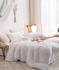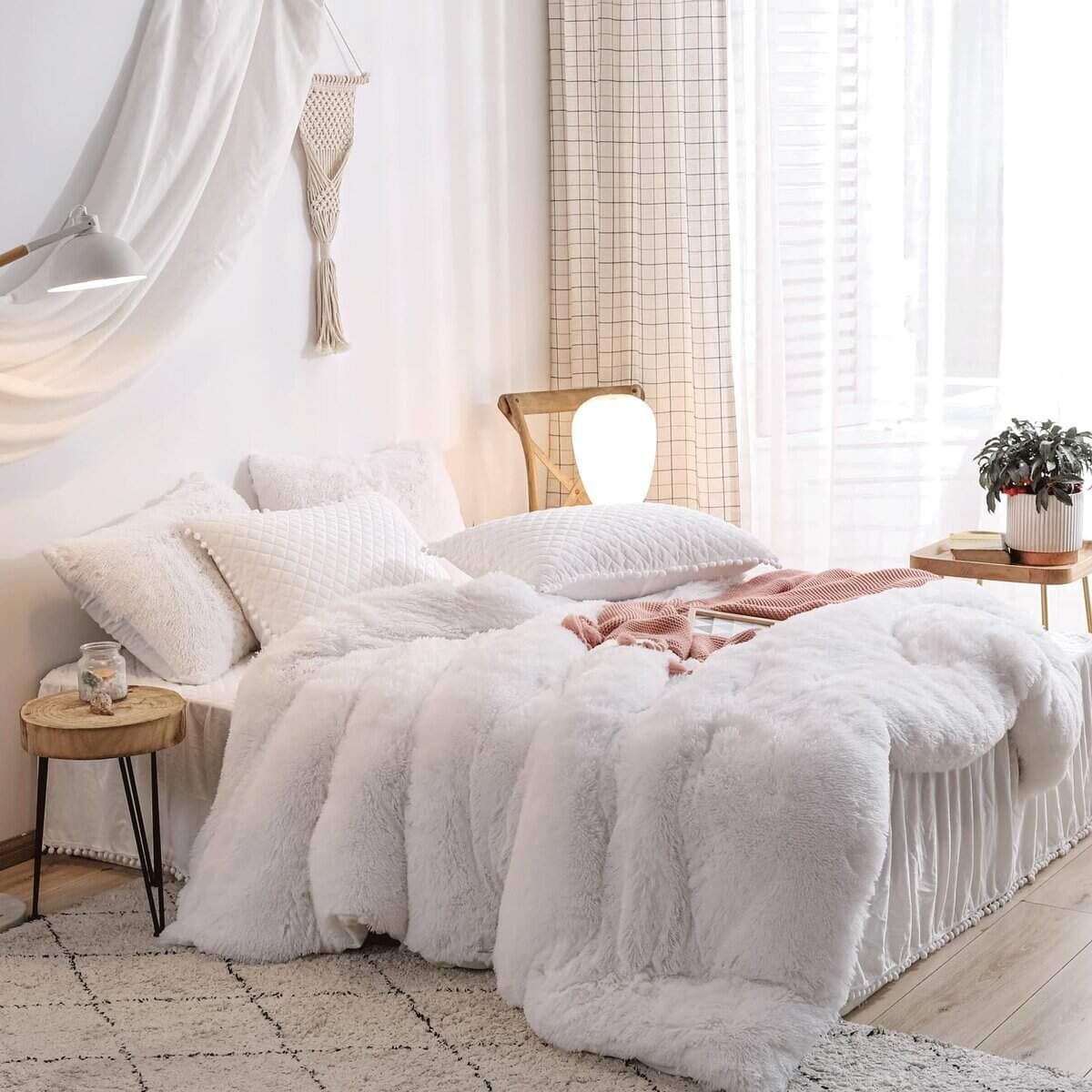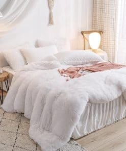 Juego de Funda Nórdica de Piel Sintética Esponjosa Blanca