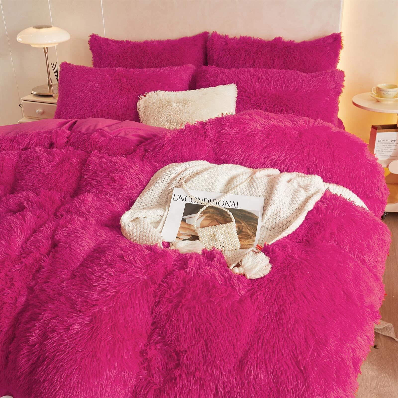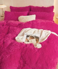 Juego de Funda Nórdica de Piel Sintética -Rosa Caliente