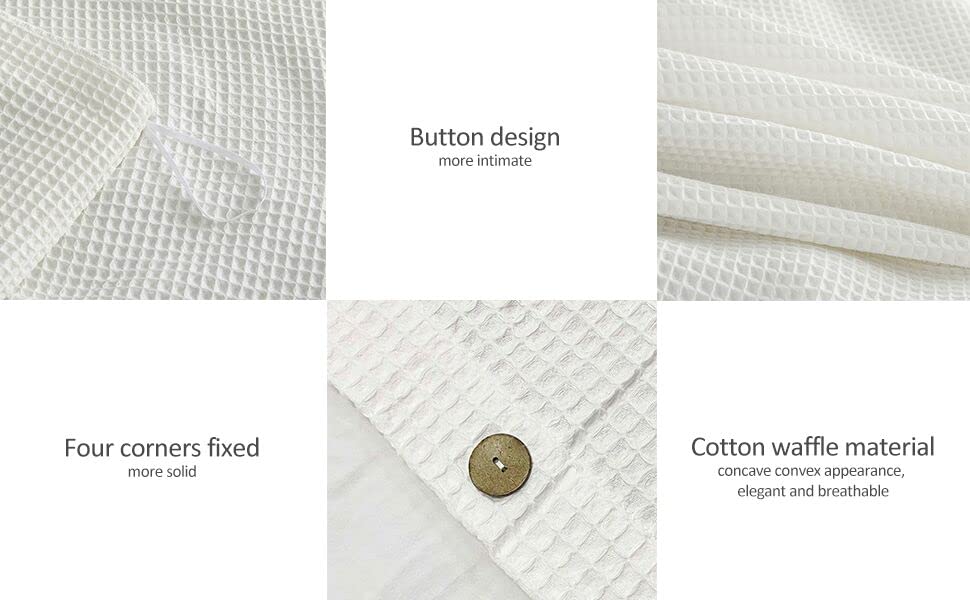 1. 100% Algodón. 2. 100% ALGODÓN SUAVE: Este juego de funda nórdica está hecho de algodón ultra suave al 100%, color blanco natural. Sin preocupaciones si tienes piel sensible. 3. DISEÑO DE PIQUÉ ELEGANTE: El exquisito diseño de piqué hace de este juego de funda nórdica una adición elegante a cualquier dormitorio. Te encantará cuando veas esta técnica de tejido única y sientas la tela ultra suave y acogedora. 4. CIERRE DE BOTONES: Esta funda nórdica tiene 9 botones en el interior para asegurar tu edredón en su lugar. ¡No te preocupes! ¡Te cuidaremos bien y te proporcionaremos una maravillosa noche de sueño! 5. FÁCIL CUIDADO: Lavar a máquina en frío, secar en secadora a baja temperatura. No usar lejía. No necesita planchado. Se volverá aún más suave después de lavarla varias veces. 6. 2 TAMAÑOS DISPONIBLES – QUEEN: Funda nórdica de piqué de algodón 100% de ZJZC Art tamaño queen (90 * 90) con fundas de almohada (20 * 26) 2.