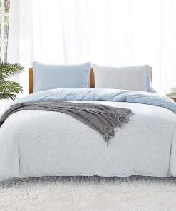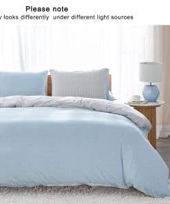 Material 100% algodón suave. Funda de edredón Full/Queen: Incluye 1 funda de edredón 90″ x 90″ y 2 fundas de almohada 20″ x 26″. Cierre de cremallera y 4 lazos en las esquinas interiores para mantener el edredón en su lugar. Diseño a rayas heather azul cielo y gris y blanco. Tejido de punto de mélange que crea un efecto de color jaspeado único. Tejido jersey ideal para todo el año por ser ligero, aireado y transpirable.
