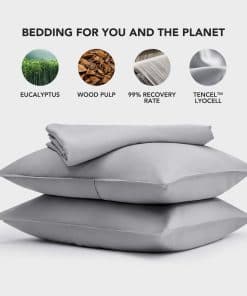 1. TEXTURA DE SEDA DE LUJO – Nuestro juego de funda nórdica TENCEL con fundas de almohada está hecho con un 100% de fibras de TENCEL de Lenzing procedentes de Austria para garantizar una calidad premium. Tejido cuidadosamente con suavidad sedosa, las fibras de TENCEL Lyocell ofrecen una comodidad transpirable y fresca. Certificado Oeko-Tex Standard 100 seguro y libre de sustancias dañinas. 2. FRESCURA PARA TODAS LAS ESTACIONES – TENCEL está tejido expertamente para apoyar la regulación térmica natural de tu cuerpo, garantizando una sensación fresca y seca durante toda la noche. La transpirabilidad inherente de la tela natural y sus propiedades de absorción de la humedad trabajan armoniosamente para crear un entorno de sueño cómodamente fresco. Disfruta de la mezcla perfecta de transpirabilidad, suavidad y durabilidad para un uso durante todo el año y una noche de sueño reparador. 3. LUJO SOSTENIBLE – Acepta la comodidad consciente con nuestro TENCEL Lyocell de origen sostenible, una tela de Carbono Cero extraída de árboles de eucalipto. Hecho con un proceso de producción de ciclo cerrado Eco-consciente para que cada noche de sueño se convierta en un paso hacia un futuro más ecológico. Experimenta la mezcla perfecta de lujo y sostenibilidad. 4. DETALLES PENSADOS – Nuestro juego de funda nórdica incluye una funda nórdica (104»x90») y dos fundas de almohada (20»x36»). Las fundas de almohada y la funda nórdica cuentan con costuras dobles de alta calidad, garantizando una durabilidad duradera. La funda nórdica con lazos cuenta con cuatro lazos que sujetan de forma segura el relleno nórdico de tu elección, junto con un cierre de botones para un aspecto impecable. 5. CUIDADO SIN ESFUERZO – Lavable a máquina y apto para secadora. Experimenta fundas nórdicas que mantienen una vibración inquebrantable, asegurando que resistan el desvanecimiento, encogimiento o formación de bolitas con el tiempo. Disfruta de su suavidad y colores duraderos que permanecen intactos lavado tras lavado, disfrutando de años de comodidad y lujo sin igual. Date a ti mismo o a un ser querido el regalo definitivo de belleza y ropa de cama de fácil cuidado.