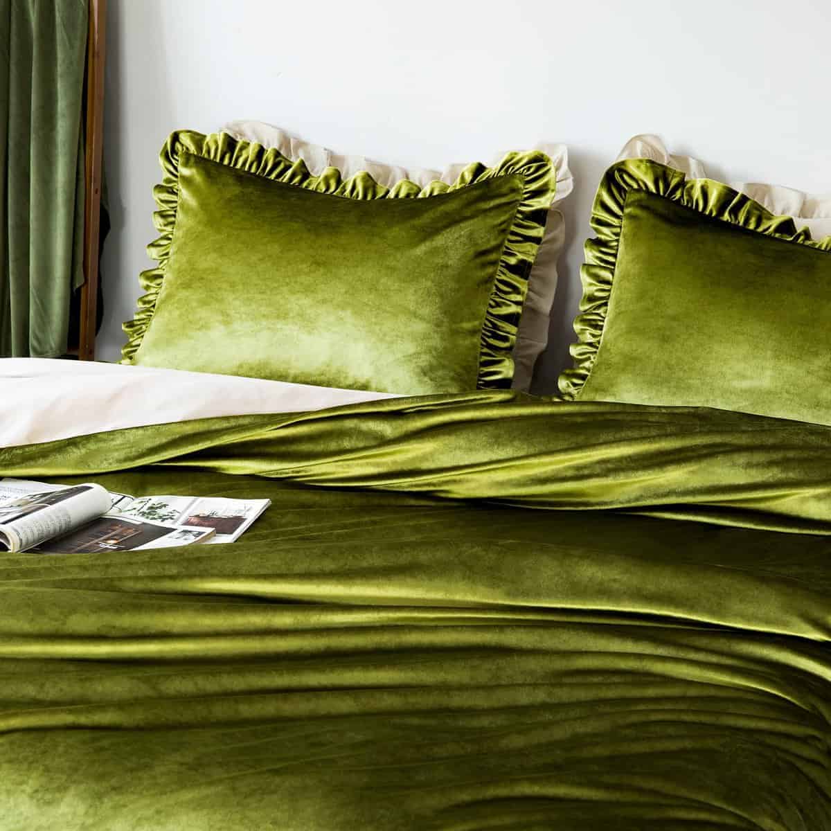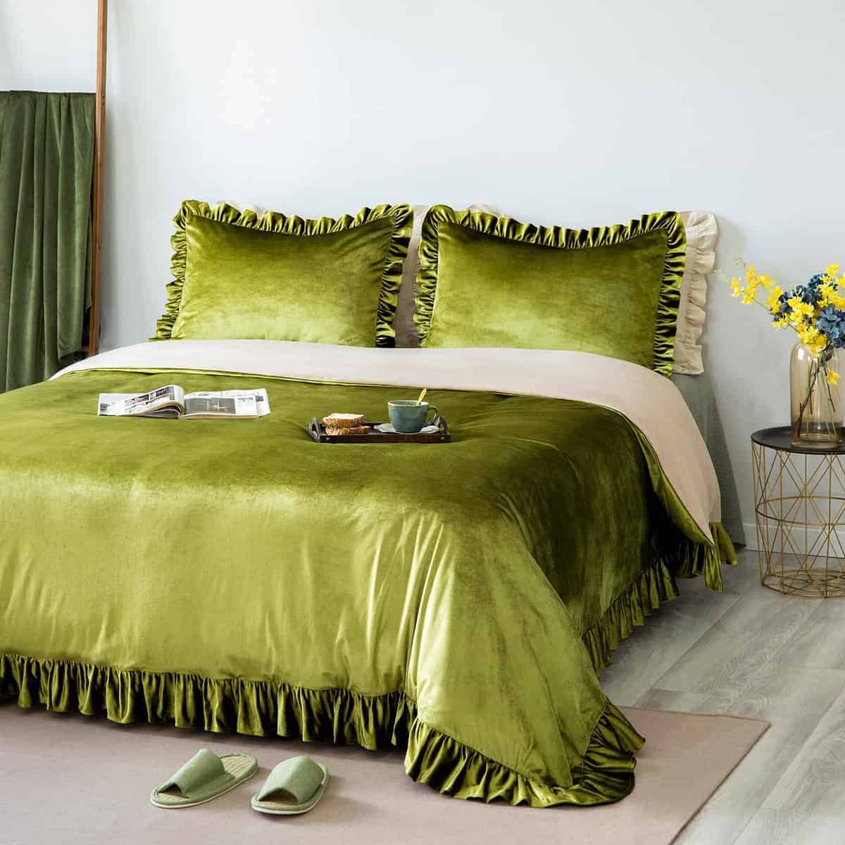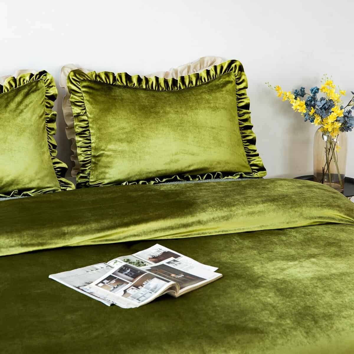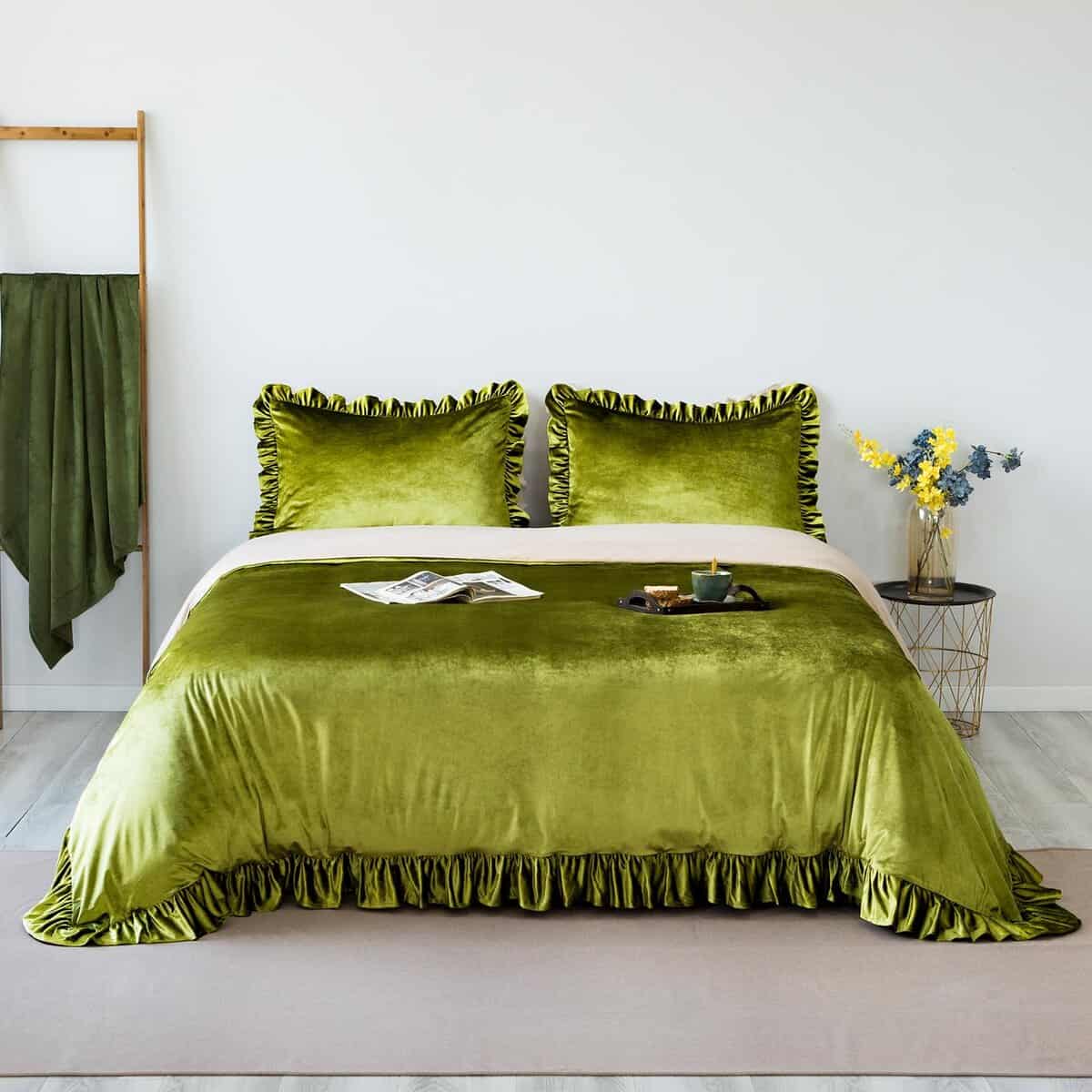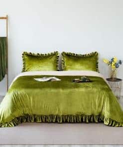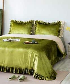 Juego de Funda Nórdica de Terciopelo con Volantes Retro en