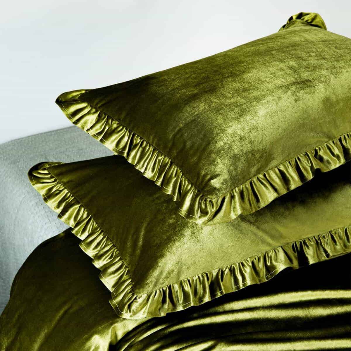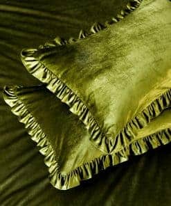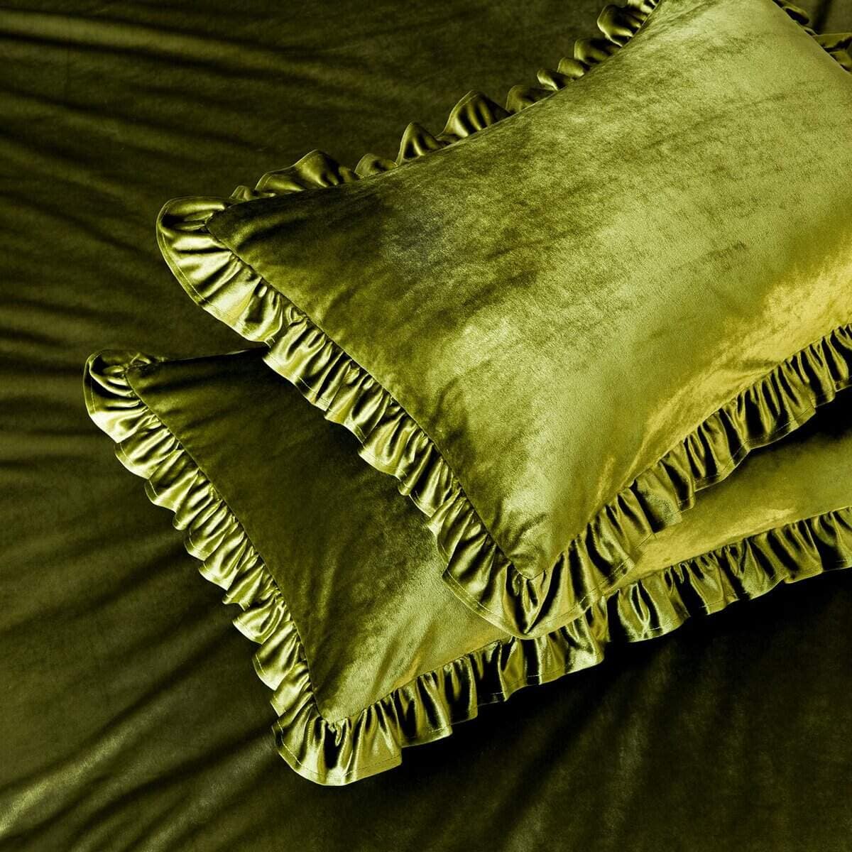 Juego de Funda Nórdica de Terciopelo con Volantes Retro Clásicos en Color Verde Oliva Sólido Decorativo de Lujo Vintage Todo el Año con Juego de Sábanas a Juego para Decoración del Hogar. El tejido de terciopelo puede exhibir diferentes colores al captar la luz en diferentes ángulos, liberando una elegancia única y un estilo de lujo, colores vibrantes con hermosos volantes que hacen que las fundas se adapten perfectamente a la decoración de tu dormitorio. La tela pesada y densa, la exquisita confección y costura, las fundas de almohada con cierre de sobre, hacen que los juegos de funda nórdica sean más confiables y convenientes para usar en todas las estaciones, y harán que tu sueño sea más placentero y cómodo. La comodidad serena y calmada ofrece una manera elegante de actualizar tu hogar.