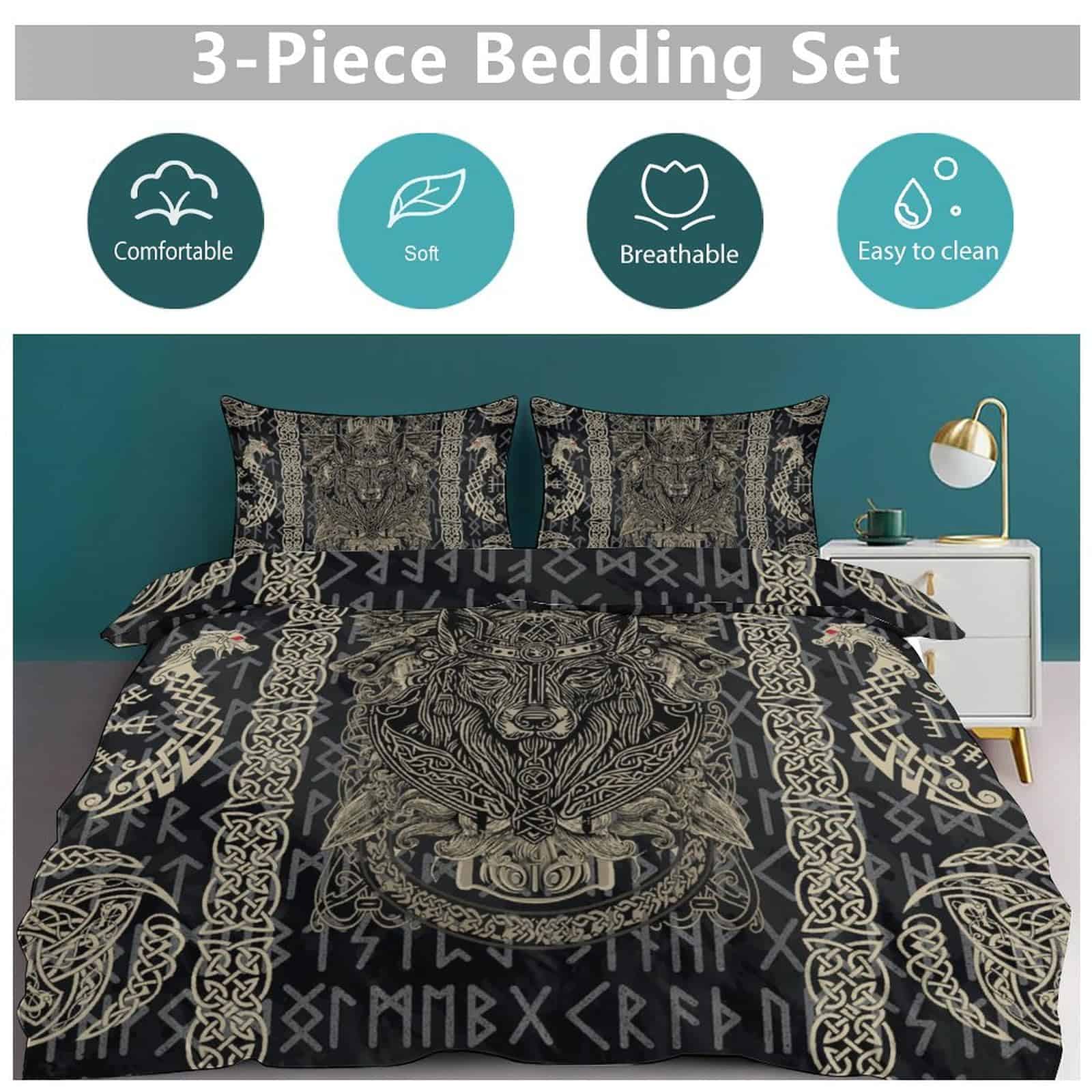 Nuestro juego de funda nórdica de alta calidad GDSCCLGX Lobos Salvajes con Símbolo Vikingo es una adición adecuada a la decoración de su dormitorio que es tanto elegante como funcional. Nuestros juegos de funda nórdica están hechos de materiales de alta calidad para brindarle una extraordinaria sensación táctil y experiencia, 4 tamaños Tamaño Twin 1 Funda Nórdica (70W»» x 86L»») y 2 Fundas de Almohada (20W»» x 30L»»)(Sin Inserto) Tamaño Full 1 Funda Nórdica (90W»» x 79L»») y 2 Fundas de Almohada (20W»» x 30L»»)(Sin Inserto) Tamaño Queen 1 Funda Nórdica (90W»» x 90L»») y 2 Fundas de Almohada (20W»» x 30L»»)(Sin Inserto) Tamaño King 1 Funda Nórdica (90W»» x 102L»») y 2 Fundas de Almohada (20W»» x 30L»»)(Sin Inserto) Para el dormitorio, habitación de invitados, casa de vacaciones. Los juegos de funda nórdica son una opción versátil y elegante que combina confort y estilo, mejoran el estado de ánimo de su dormitorio con nuestros juegos de funda nórdica. Nuestros juegos de funda nórdica están disponibles en una variedad de tamaños para satisfacer sus necesidades de diferentes tamaños. Una variedad de diseños temáticos, ya sea que prefiera un tema clásico vintage o un patrón moderno y elegante, siempre puede encontrar un tema que le convenga en nuestros productos. Con un cierre de cremallera simple, el juego de edredón es fácil de poner y quitar, haciendo que la limpieza y el mantenimiento sean muy fáciles. Lavable a mano y lavable a máquina, no remoje por mucho tiempo, no blanquee, la temperatura del líquido de lavado no debe superar los 45 ºC. ¿Todavía buscas un regalo especial para las vacaciones Ya sea Navidad, Halloween, Día de la Marina, Día de las Madres, Día del Padre, Acción de Gracias, Día de la Independencia o cualquier otra fiesta, nuestros juegos de funda nórdica merecen su consideración para regalar a familiares o amigos. ¡Por favor, tenga en cuenta! Debido al equipo de producción y tecnología y otros factores objetivos, el producto real y la imagen del sitio web tendrán una cierta diferencia de color, si hay algún problema, por favor contáctenos a tiempo, cada una de sus sugerencias es de gran ayuda para nuestro progreso, mejora.