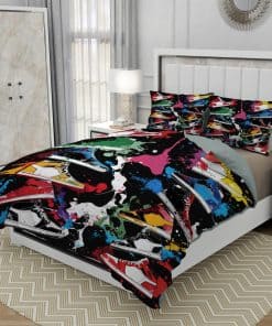 Nuestro set de funda nórdica imprime Zapatillas Deportivas de Graffiti Coloridas y Cool en el edredón y las fundas de almohada. Los colores hermosos y vívidos crean una fuerte estética de moda. Perfecto para la decoración de dormitorio temático deportivo para tus.