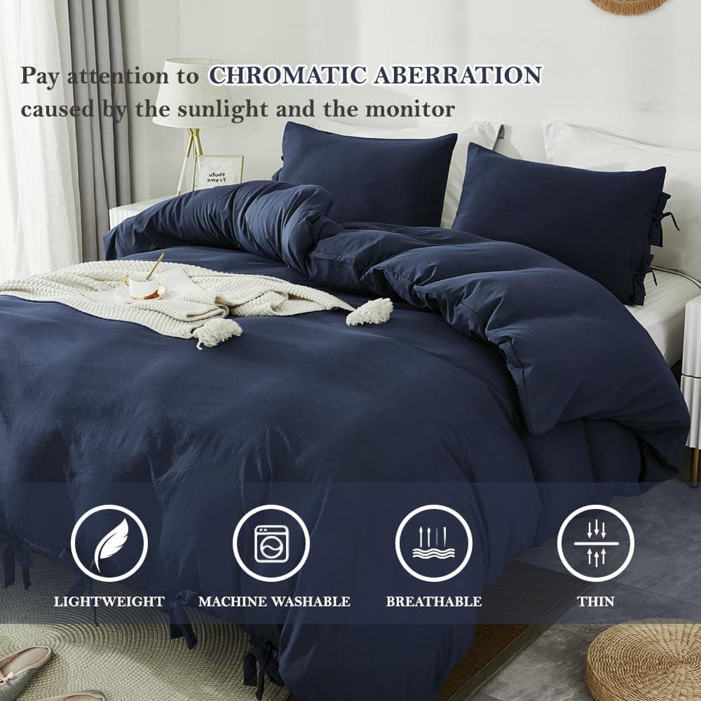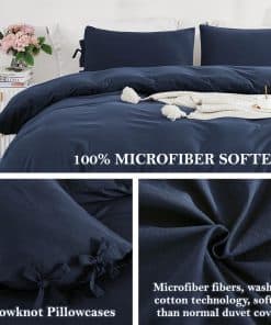 1. Ultra Suave y Amigable con la Piel con tela arrugada suave de annadaif para una calidez extra, cómodo y excelente sensación al tacto. Toda la funda nórdica de lazo con colorantes reactivos, con un diseño de color sólido, simple pero elegante, y ambos lados pueden estar hacia arriba. Los lazos lindos añaden elegancia y estilo boho a cualquier dormitorio o habitación de invitados. Un juego de funda de edredón suave crea un ambiente de sueño cómodo para un buen descanso nocturno.