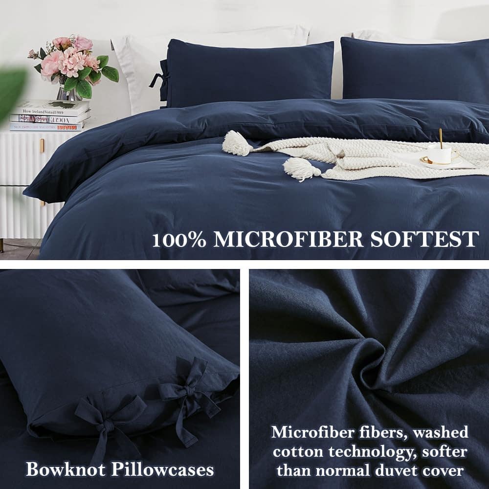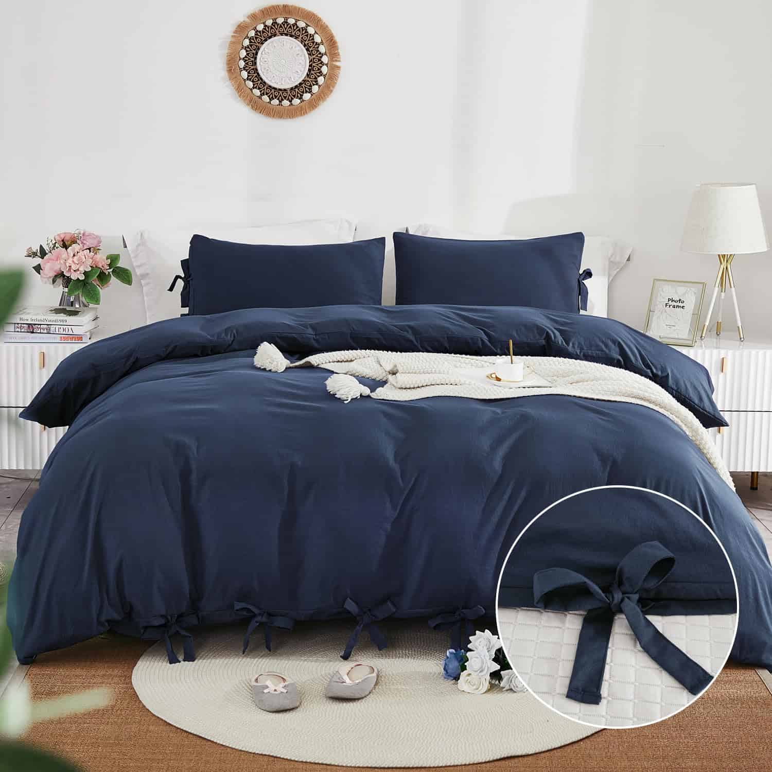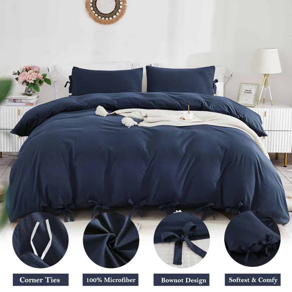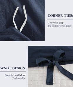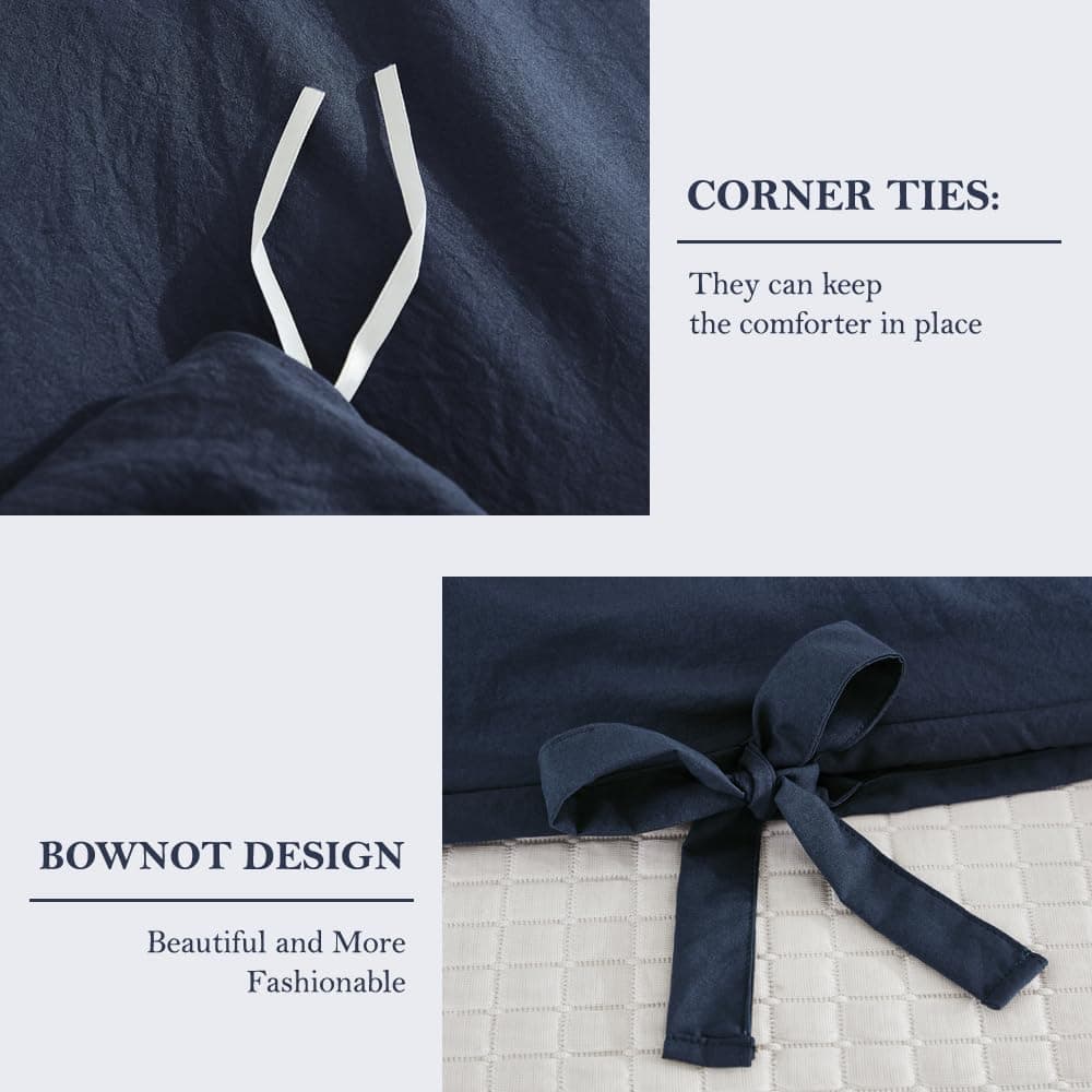 3. Diseño Único de Lazo en lugar de una cremallera tradicional, nuestros diseñadores diseñaron una funda de edredón con lazo más de moda y hermosa. La parte inferior de nuestra funda de edredón con lazo tiene un sobre de tela para sostener el edredón. ¿Todavía te preocupa que el edredón se enrolle por la noche? Hay unos pequeños lazos en la esquina para mantener el edredón en su lugar, sin temor a que se agrupe en una pelota.