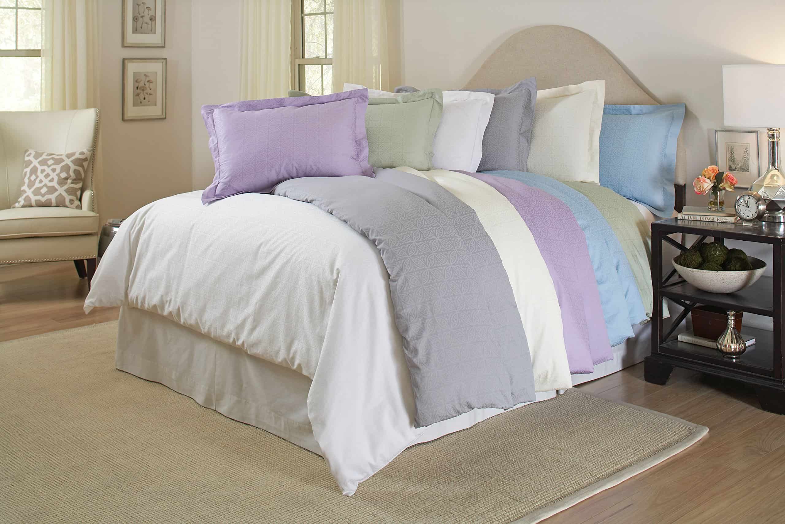 El juego de funda nórdica estampada de 300 hilos de Pointehaven presenta un estampado tono sobre tono para una elegancia sutil y asequible. Hecho de 100% algodón, este juego de funda nórdica es suave y fresco, invitándote a disfrutar de dulces sueños. El juego viene en 6 colores: Blanco, Hueso, Salvia, Azul, Lavanda y Gris. Juegos de sábanas coordinados están disponibles por separado.