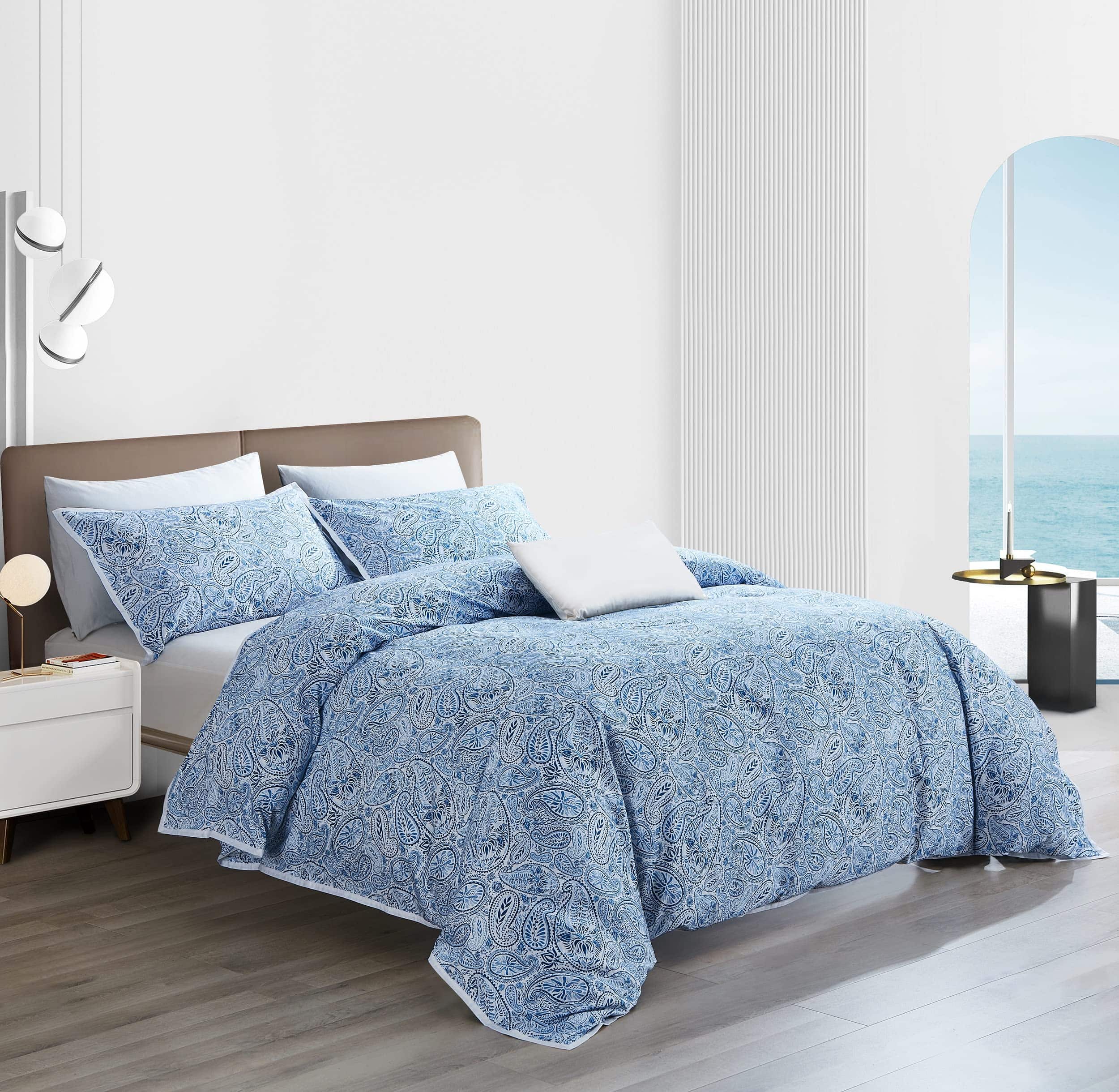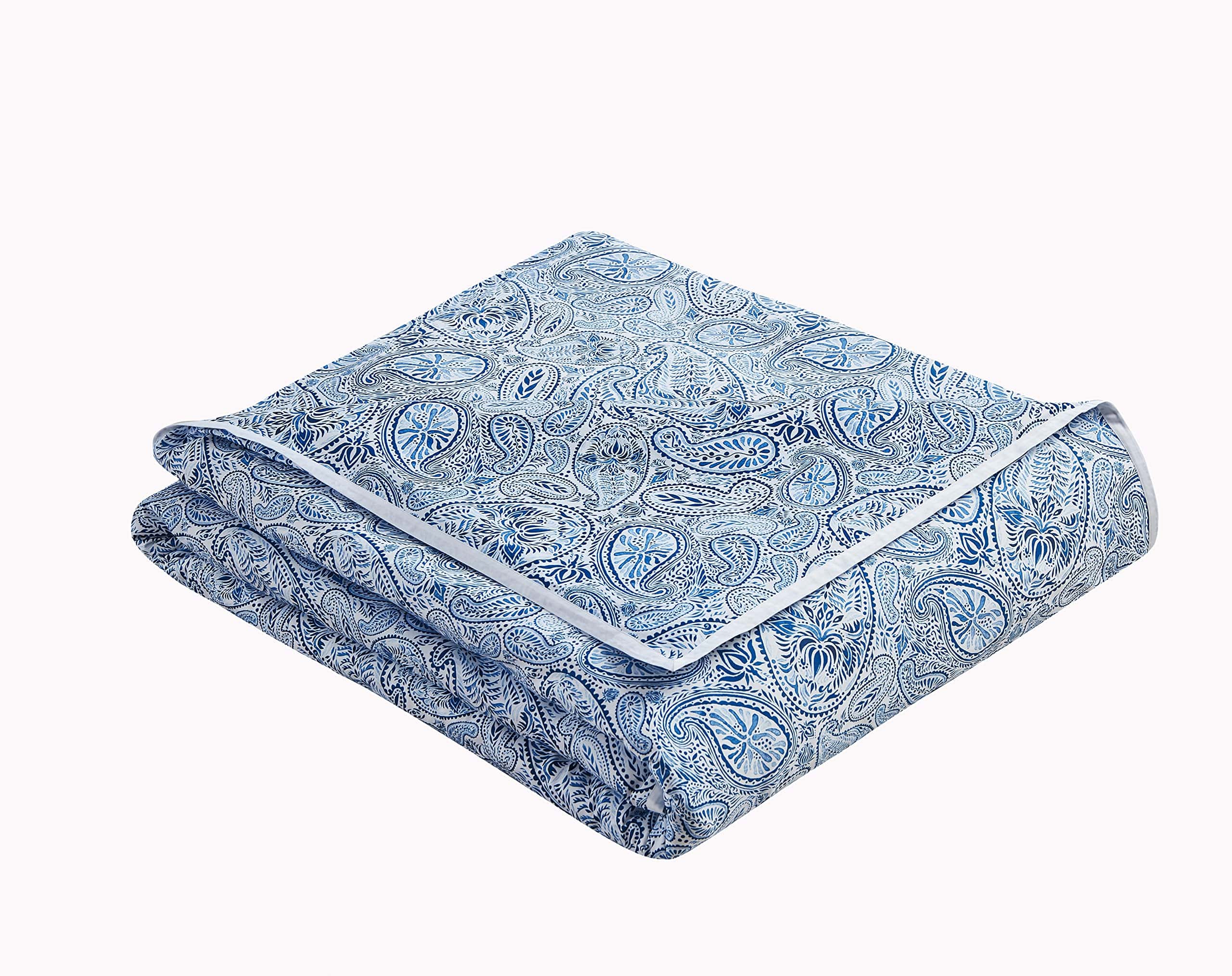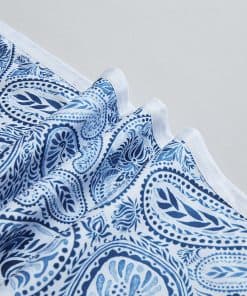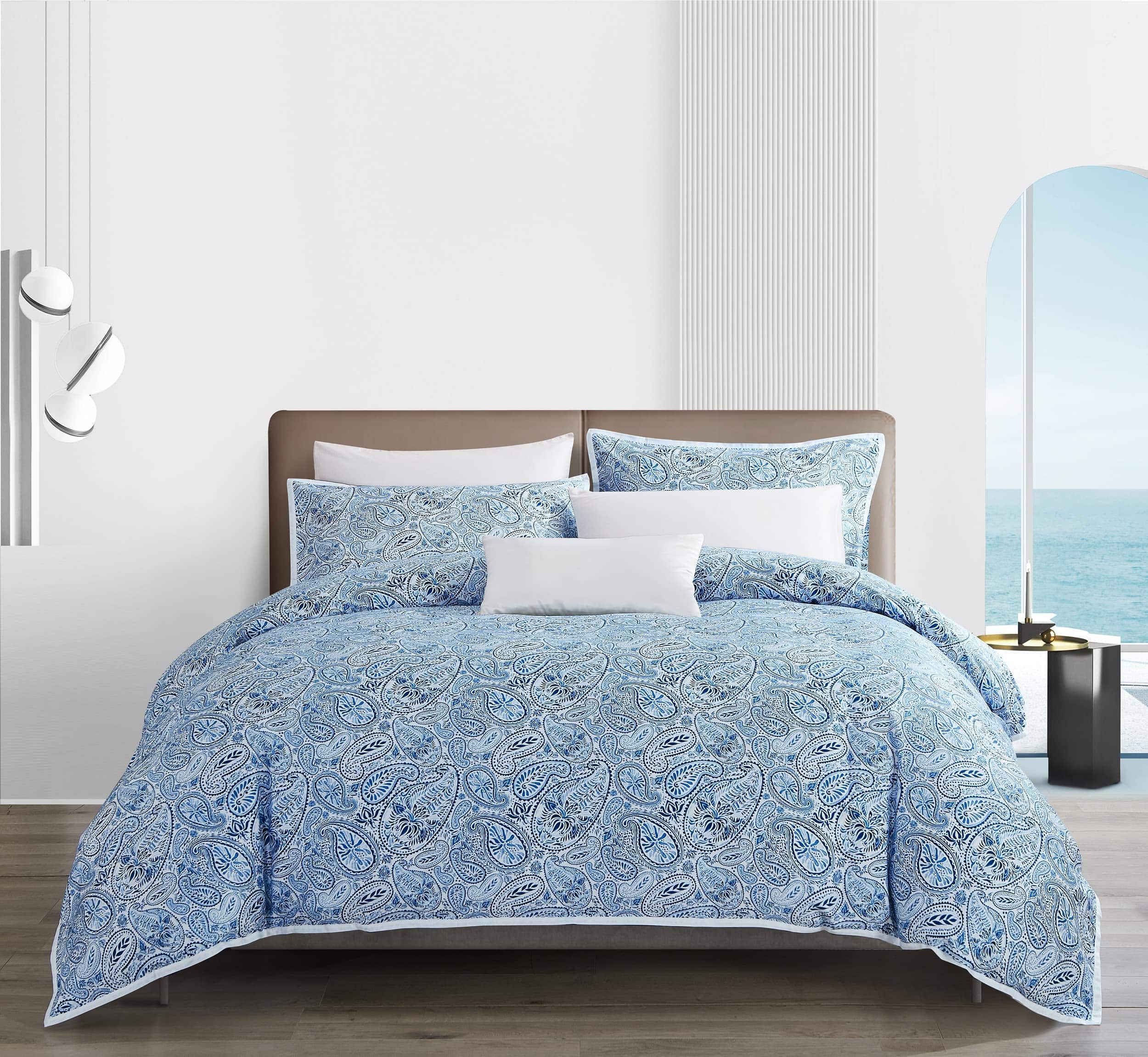 Funda nórdica de alta calidad diseñada para brindar comodidad y estilo a tu habitación. Hecha de algodón egipcio suave y resistente con un tejido de satén de 300 hilos, esta funda nórdica es lujosa y duradera. El juego de 3 piezas incluye una funda nórdica de tamaño Queen y dos fundas de almohada a juego, todos con un elegante estampado retro paisley en azul y blanco. Tanto la funda nórdica como las fundas de almohada cuentan con un ribete blanco blanqueado que añade un toque de elegancia al conjunto. Fácil de cuidar, se puede lavar y secar a máquina para mayor comodidad. Renueva la decoración de tu dormitorio con esta hermosa funda nórdica retro.