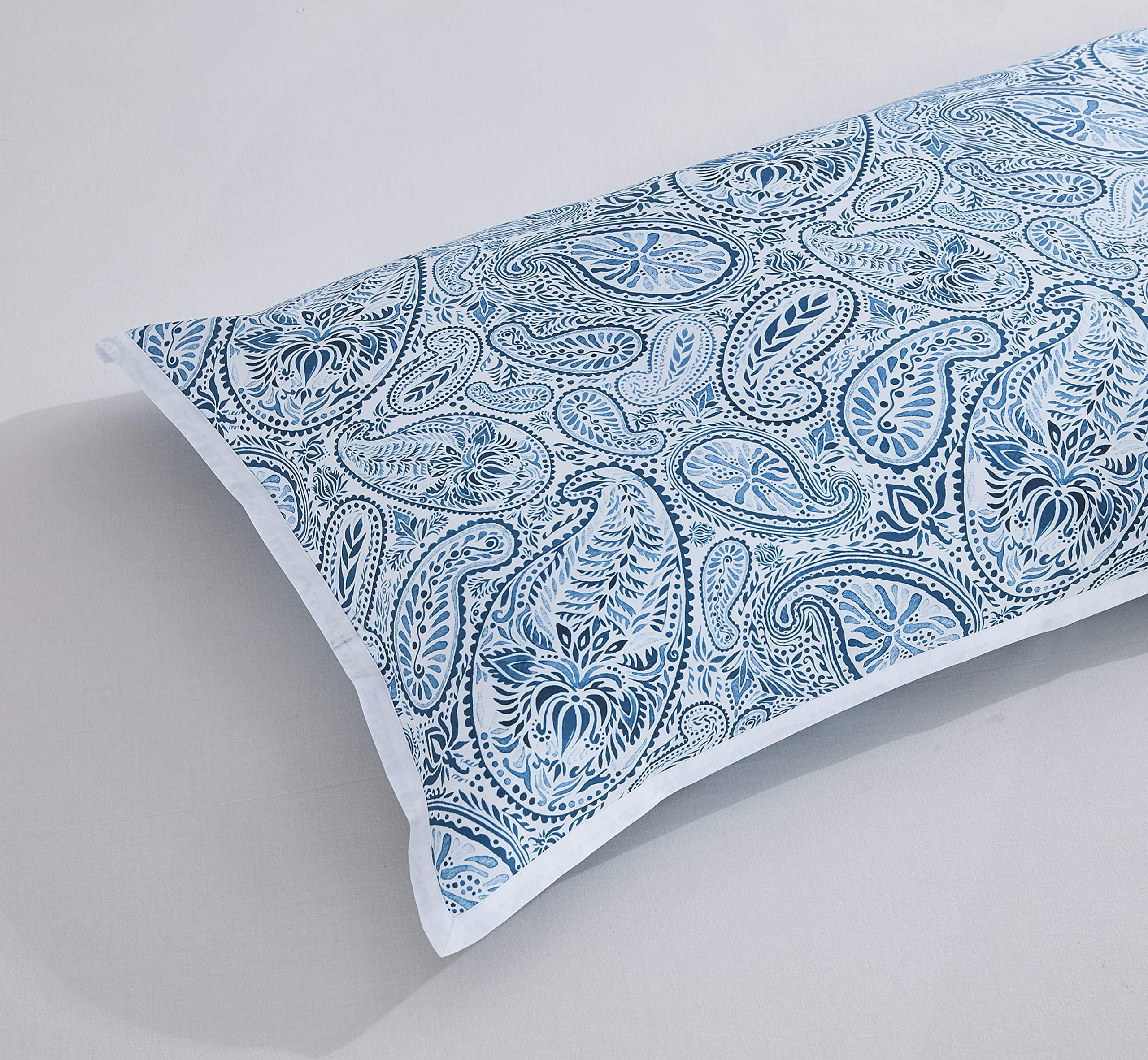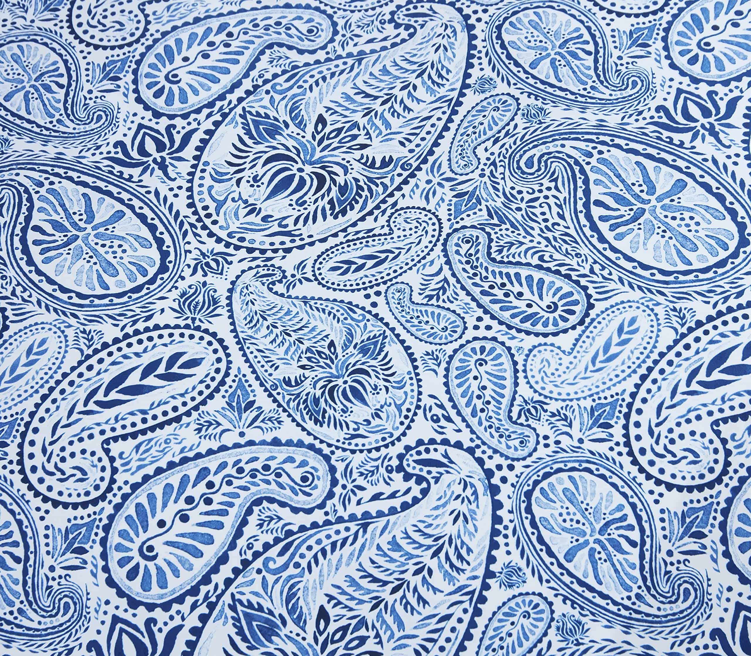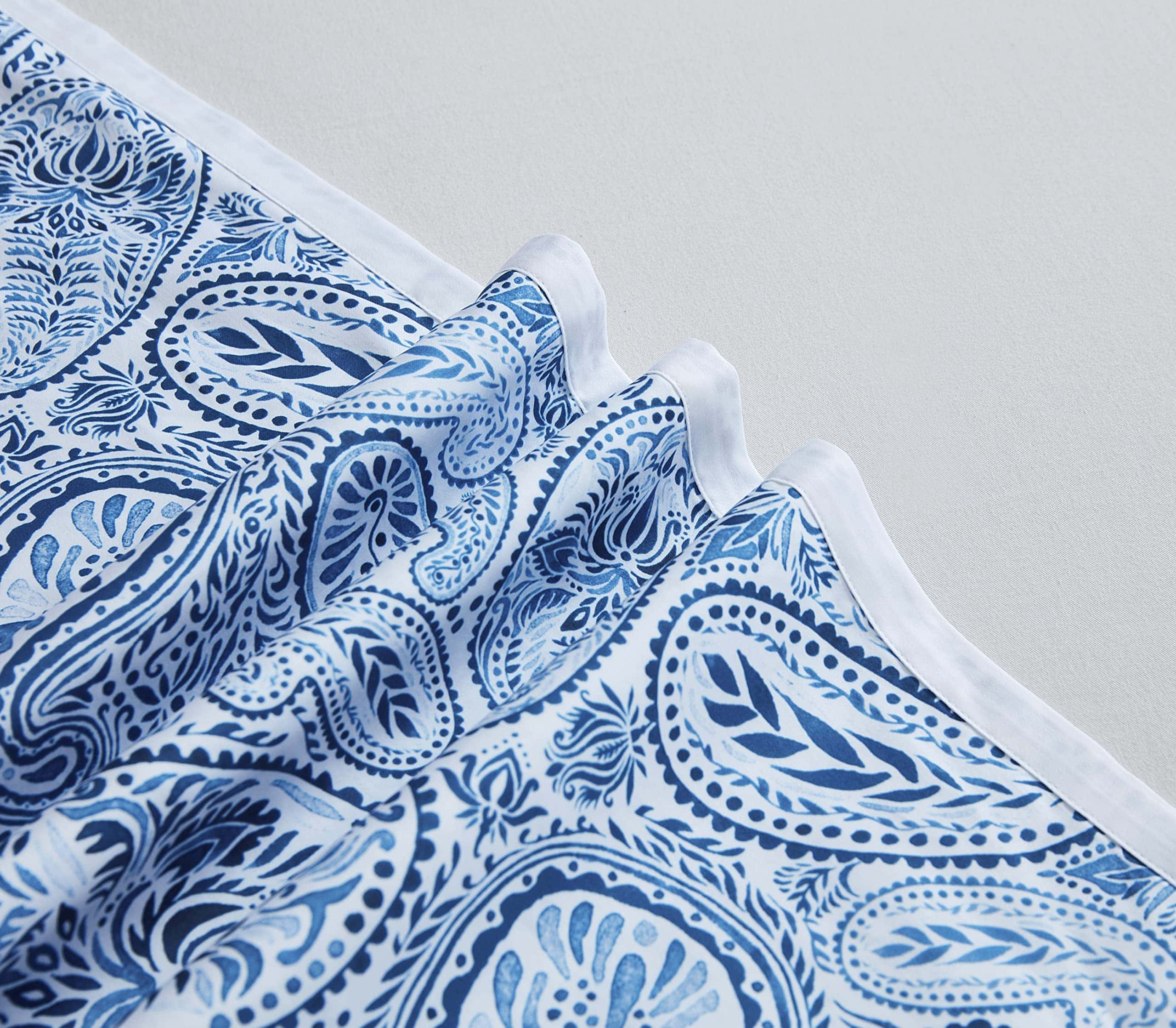 Funda nórdica de alta calidad diseñada para brindar comodidad y estilo a tu habitación. Hecha de algodón egipcio suave y resistente con un tejido de satén de 300 hilos, esta funda nórdica es lujosa y duradera. El juego de 3 piezas incluye una funda nórdica de tamaño Queen y dos fundas de almohada a juego, todos con un elegante estampado retro paisley en azul y blanco. Tanto la funda nórdica como las fundas de almohada cuentan con un ribete blanco blanqueado que añade un toque de elegancia al conjunto. Fácil de cuidar, se puede lavar y secar a máquina para mayor comodidad. Renueva la decoración de tu dormitorio con esta hermosa funda nórdica retro.