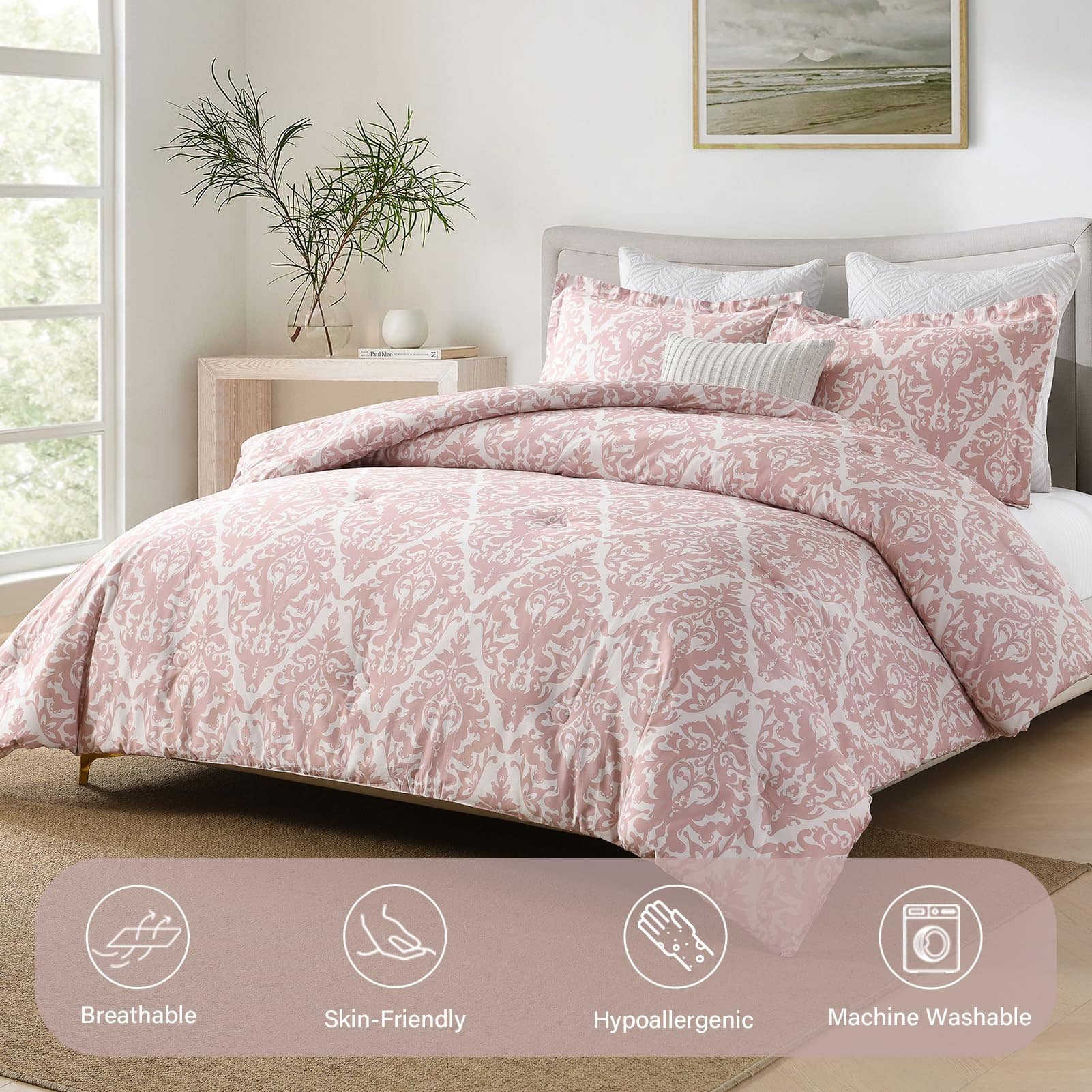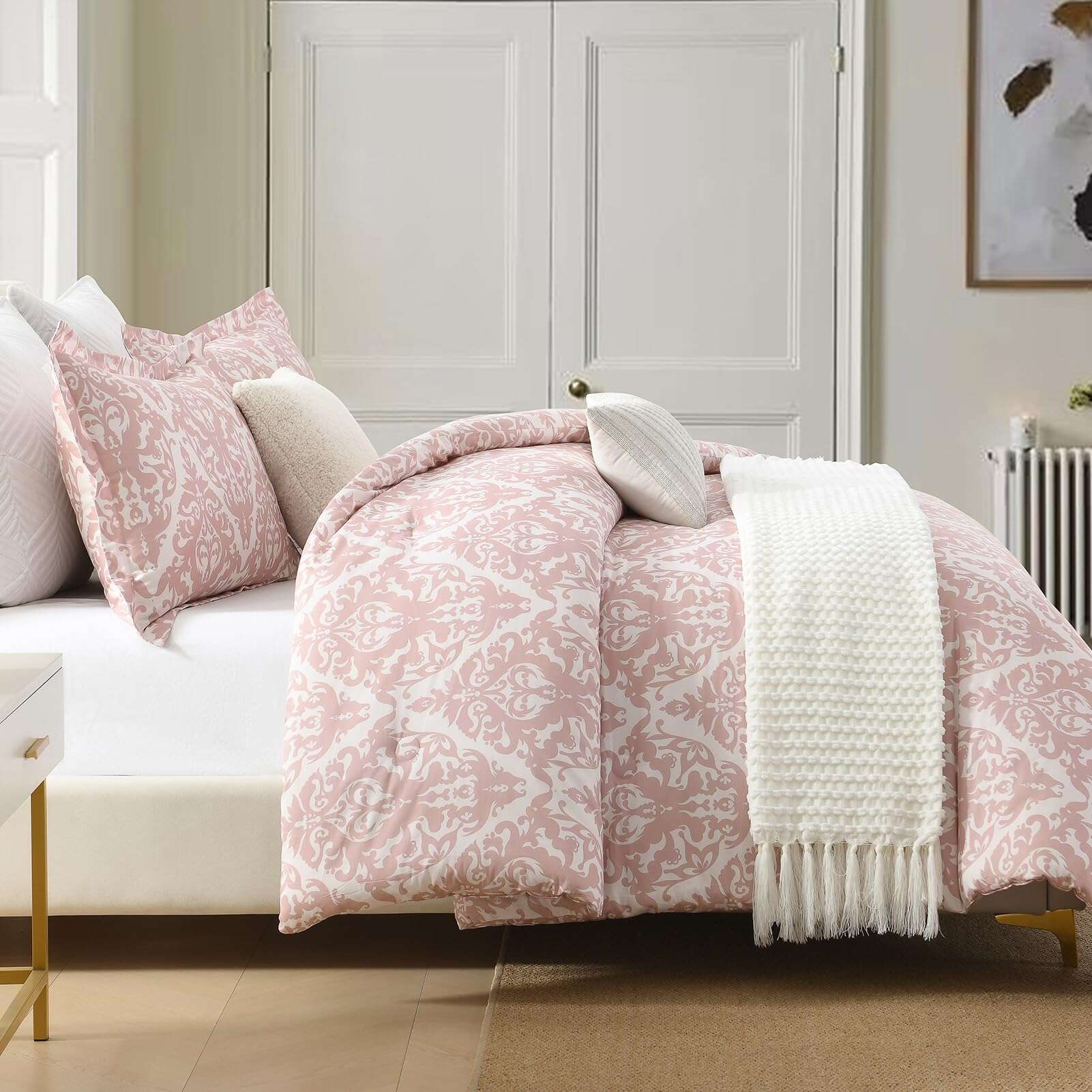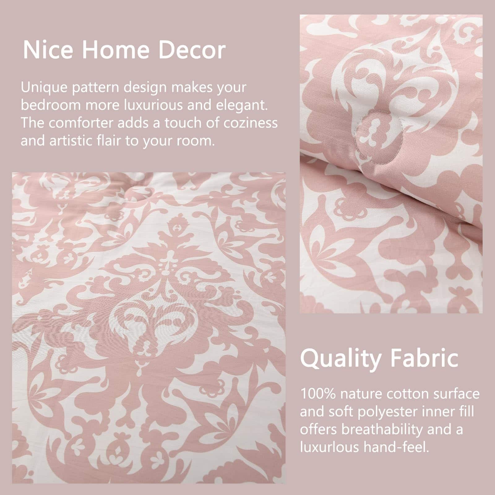 El Juego de Funda Nórdica Finlonte Damask Queen es la elección perfecta para aquellos que buscan comodidad y estilo en su dormitorio. Confeccionado con una suave superficie de algodón 100% de fibra larga y un relleno interno de poliéster, este conforter garantiza una suavidad excepcional y una comodidad tipo nube que te mantendrá acogedor durante todo el año. El diseño de color rosa y blanco de estilo damasco y paisley floral añade un toque único y lujoso a tu habitación, creando una atmósfera artística y elegante. Este juego de conforter de 3 piezas incluye un conforter Queen de 90″ x 90″ y dos fundas de almohada de 20″ x 26″ + 2″, ideal para vestir tu cama con elegancia. Además, el conforter está diseñado para un uso durante todo el año, manteniéndote abrigado en invierno y fresco en verano gracias a su diseño acolchado y sus costuras ajustadas que evitan que el relleno se desplace. Fácil de mantener, este juego de conforter es lavable a máquina y se seca rápidamente al sol, manteniéndose como nuevo. Además, está certificado Standard 100 por OEKO-TEX, lo que garantiza que cumple con los más altos estándares de seguridad y calidad.