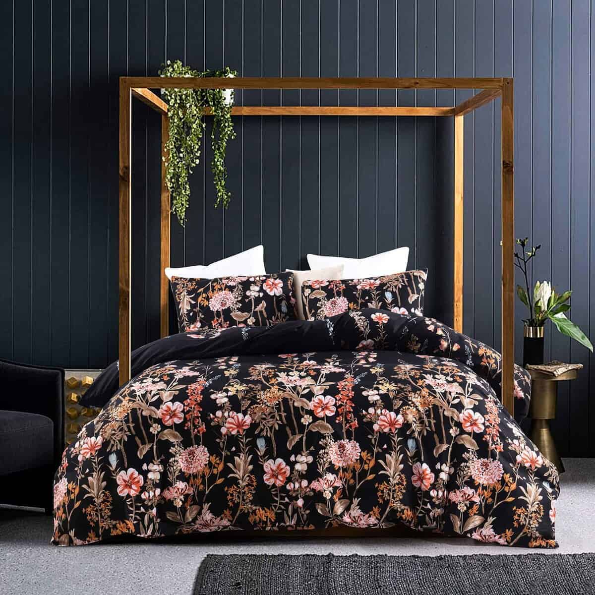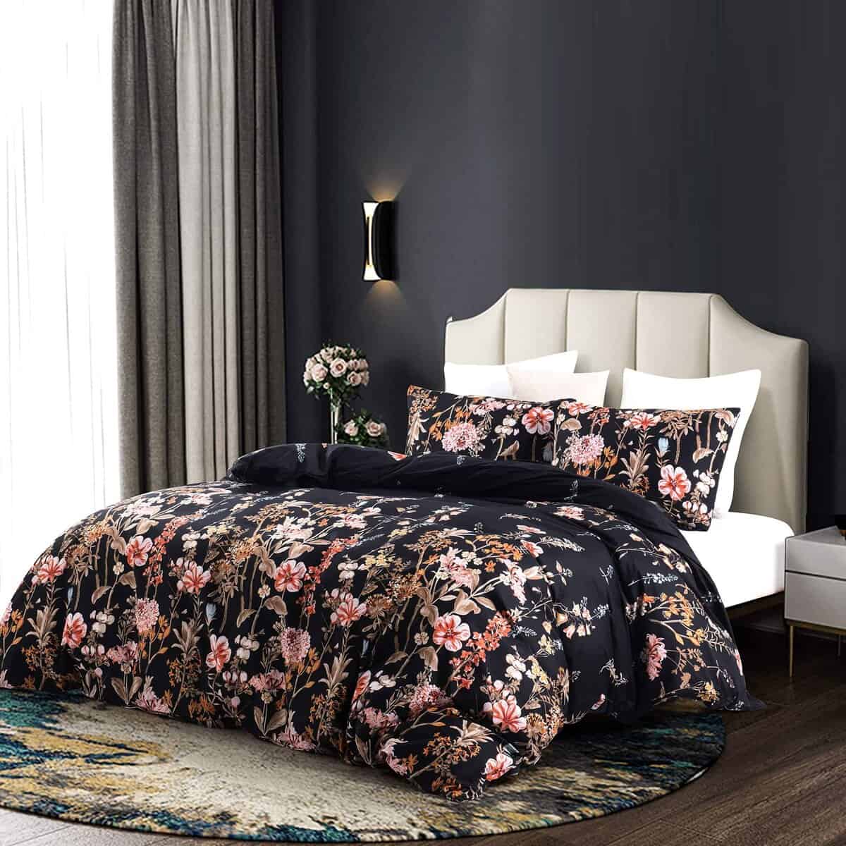 3. Diseño especial de la Funda nórdica floral negra: las flores negras impresas aportan más diversión a la sencilla funda nórdica de color sólido, juego de edredón floral negro king.