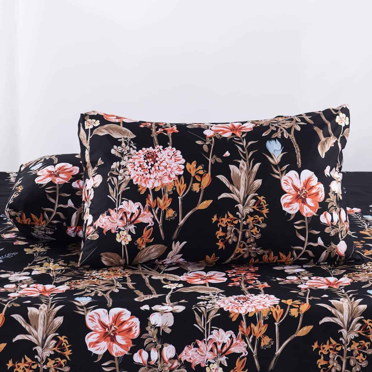 5. Cuidado fácil (juego de ropa de cama floral negro king): Juego de ropa de cama king, lavar a máquina en agua fría con colores similares. Secar a baja temperatura. No usar lejía.