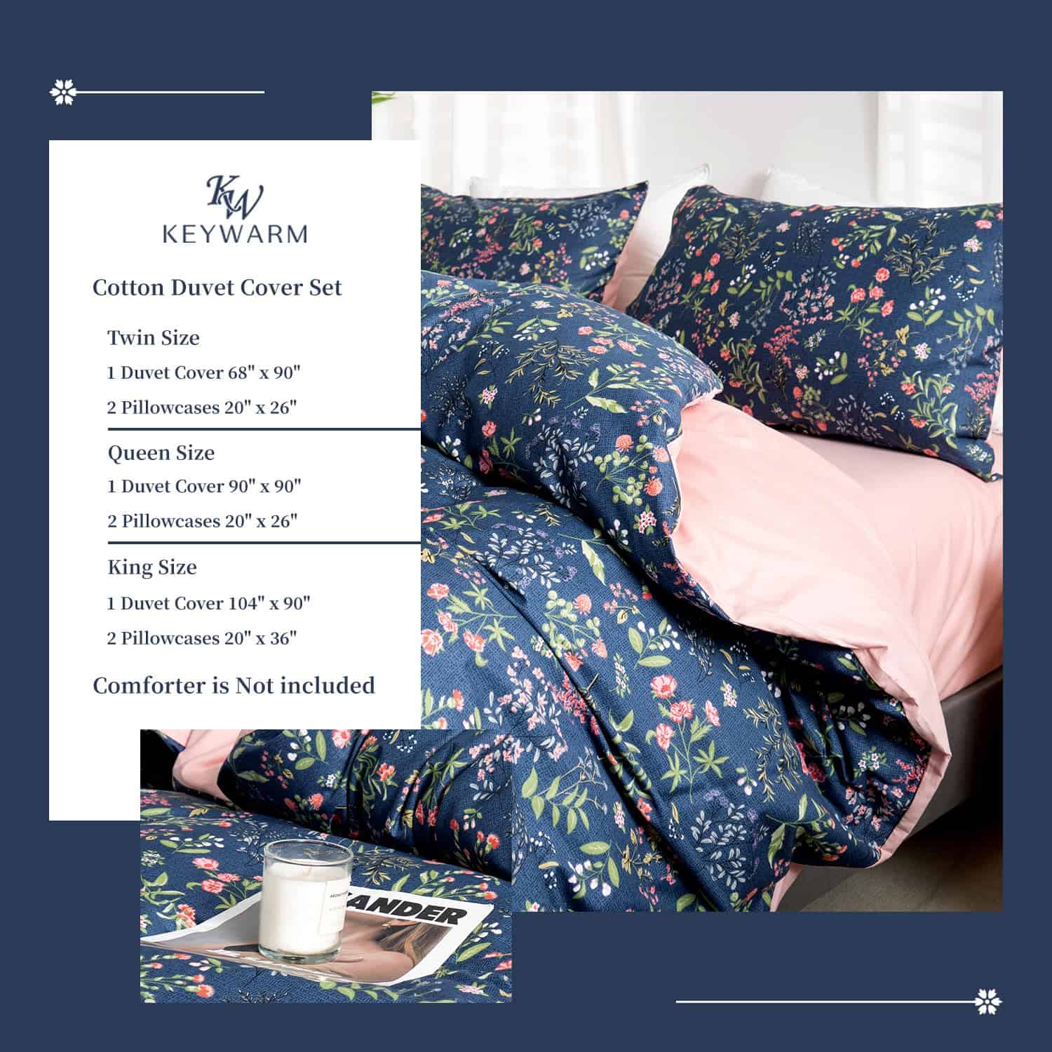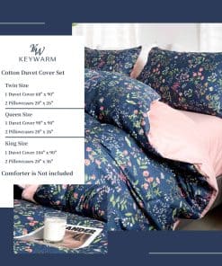 1. QUÉ OBTENDRÁS – Obtendrás un exquisito juego de funda nórdica, que incluye 1 funda nórdica (90″x90″) y 2 fundas de almohada (20″x26″). Adopta costura totalmente mecanizada con puntadas de alta densidad. Buenas puntadas de costura y mano de obra exquisita reducen los hilos sueltos para hacerlo más duradero y delicado. 2. CREMALLERA OCULTA Y LAZOS EN LAS ESQUINAS – La funda nórdica con cremallera oculta que es resistente y duradera, no daña la piel, te permite insertar y quitar tu funda nórdica cuando lo necesites, reduce tu tiempo precioso en el proceso de hacer la cama. Los fuertes lazos en las esquinas se distribuyen en las 4 esquinas de la funda nórdica para asegurar tu edredón en su lugar firmemente. Diseño de cierre con solapa en las fundas de almohada, rápido para reemplazar la almohada. 3. SUAVE Y CÓMODO – La funda nórdica está fabricada con tela de algodón 100% natural. En comparación con otros materiales, la funda nórdica de algodón es más transpirable y mantiene tu cuerpo fresco. Amigable con la piel y suave más allá de la imaginación, permitiéndote dormir toda la noche mientras te relajas. Cuando estás cubierto con una funda nórdica suave, parece estar envuelto por plumas ligeras, brindándote la máxima comodidad. Es refrescante en verano y cálido en invierno, adecuado para todas las estaciones. 4. DECORACIÓN PERFECTA PARA EL HOGAR – La funda nórdica floral le da a tu dormitorio una decoración elegante, adecuada para cualquier habitación de tu casa, dormitorio, habitación de invitados, habitación de niños, habitación de vacaciones, hace que tu dormitorio agregue algo de diversión. Esta funda nórdica ultra suave te mantiene cómodo durante toda la noche y protegerá tu edredón, funda nórdica o colcha del polvo y la suciedad para que dure años. 5. CUIDADO FÁCIL Y DURADERO – La funda nórdica, después de un proceso de impresión y teñido especial, tiene un mejor rendimiento a prueba de decoloración que la tela ordinaria, ¡por favor no blanquear! Se recomienda lavar a mano o a máquina en agua fría, ciclo suave. Lavar con colores similares. Se recomienda que esta funda nórdica de algodón se lave antes del primer uso.