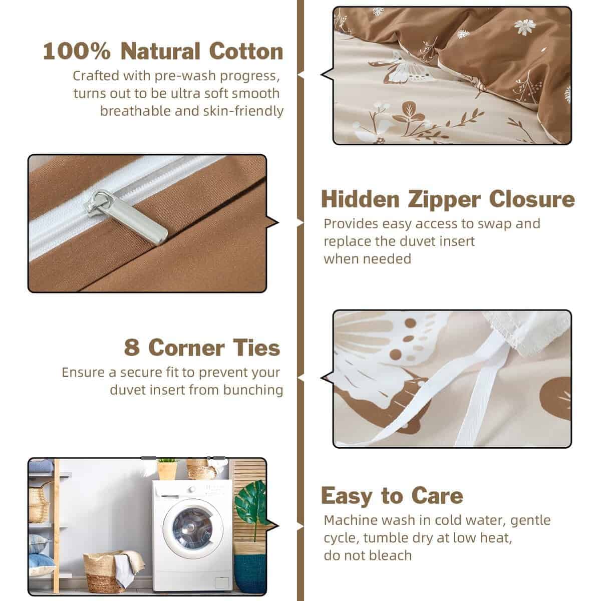 3. Cremallera y Lazos en las esquinas: Este juego de funda nórdica cuenta con 8 lazos en las esquinas y bordes para sujetar de forma segura tu inserto de edredón en su lugar sin moverse ni agruparse toda la noche. El cierre de cremallera inferior evita que el edredón se deslice y crea un aspecto suave y sin costuras.