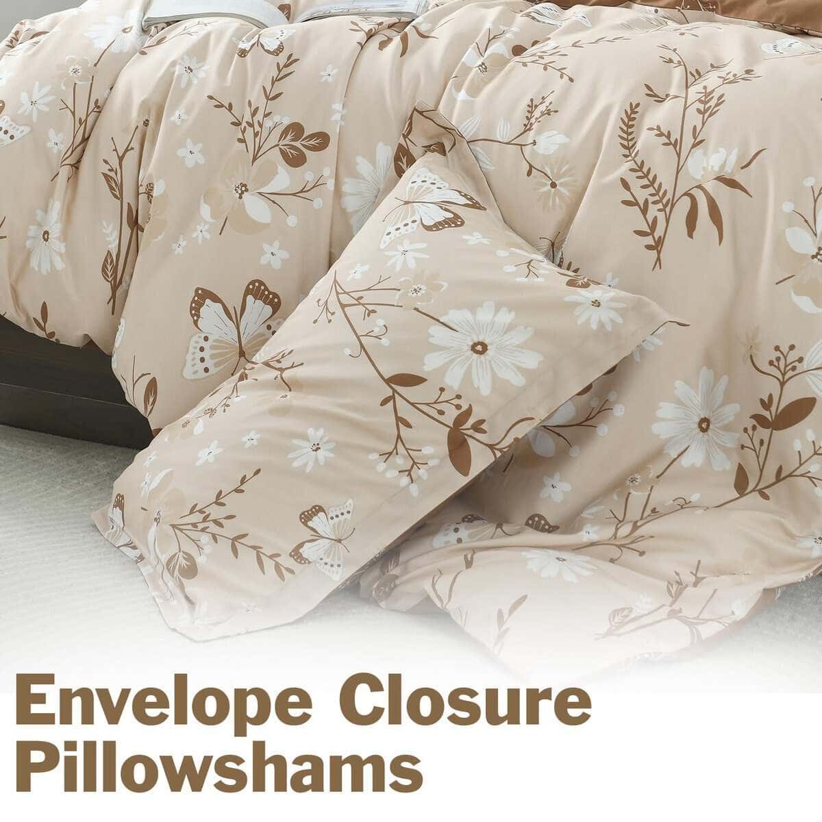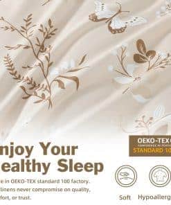 2. Diseño Único: La funda nórdica estética es un diseño reversible de doble cara, con mariposas revoloteando entre las flores beige en el frente y un patrón de reverso marrón topo de pétalos blancos y ramas de hojas. Diseño chic desgastado y lleno de vitalidad, brinda un ambiente discreto pero elegante, creando tu habitación con un aspecto estilizado y una sensación cómoda y perezosa.