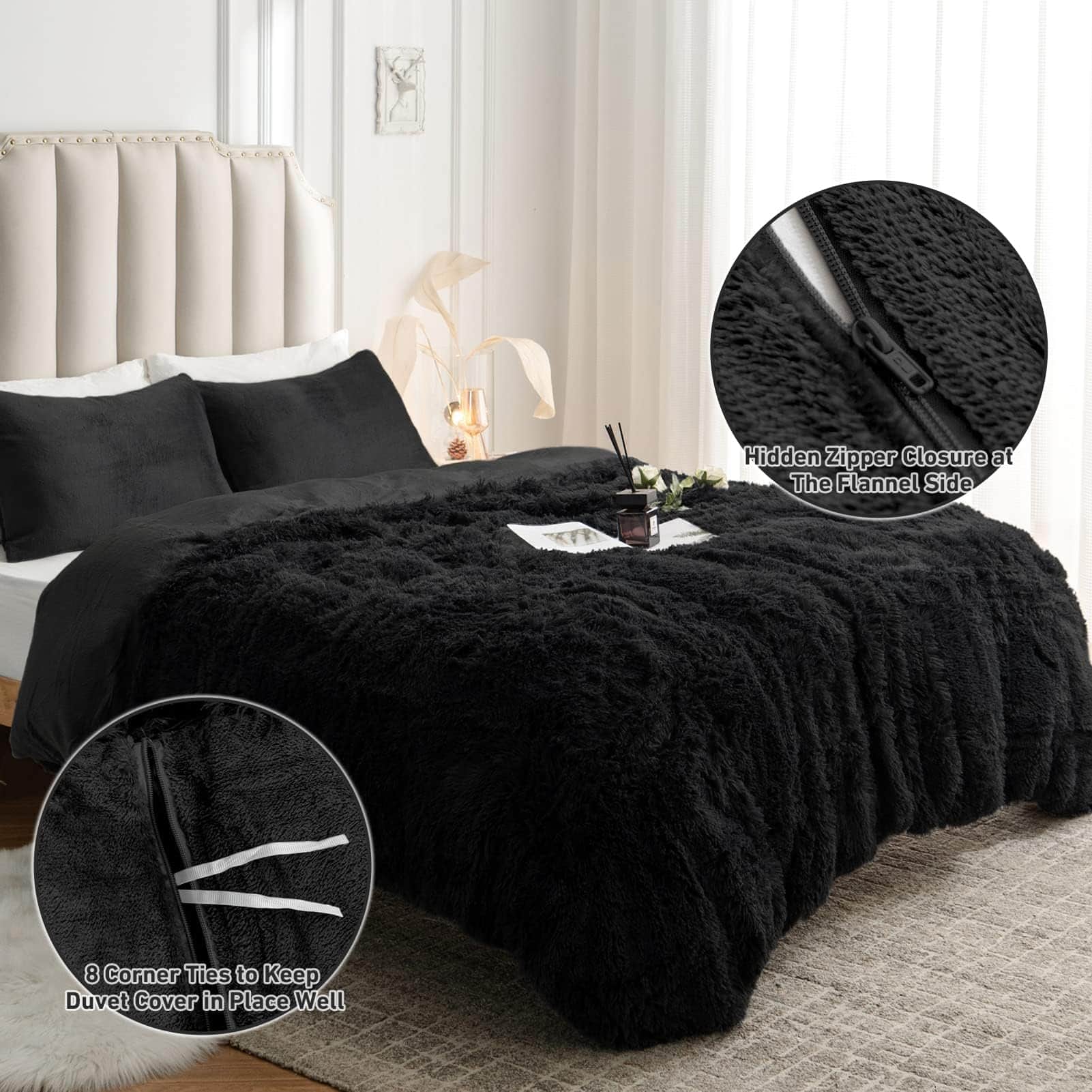 1. ¡CÁLIDO COMO LA PRIMAVERA! ¡Increíblemente suave! ¡Nuestro juego de ropa de cama peluda es más esponjoso y grueso que uno general! La funda nórdica es cálida y acogedora, agregando una sensación acogedora y perezosa de primavera a tu dormitorio; ¡Tu única queja podría ser lo difícil que hace que levantarse de la cama por las mañanas! 2. MATERIAL LUXURIOSO Y SUAVE – El frente de la ropa de cama tiene 380 GSM de suave piel falsa peluda sedosa, mientras que el reverso tiene 220 GSM de franela; ¡Esta funda nórdica es cálida, cómoda, con fibras largas sedosas y lujosas que aparentemente envuelven tu piel en una cuna de comodidad, brindándote un sueño perfecto! 3. ELEGANTE – La lujosa funda nórdica CHOSHOME es elegante, con una cremallera silenciosa para facilitar la extracción y lavado, 8 correas en las esquinas para evitar desplazamientos y mantener la funda nórdica ordenada, y una cremallera oculta que realza la elegancia y belleza general de la ropa de cama. 4. MULTIUSOS – Mete el edredón ultra suave en la funda del edredón para mayor calor en tiempo frío; ¡también funciona como un gran edredón en tiempo frío a principios de primavera y finales de otoño! Este juego de funda de edredón es perfecto para uso diario o como regalo para cualquier persona. 5. LO QUE RECIBES – ¡Este juego de funda nórdica gruesa y esponjosa incluye 1x funda nórdica (104″x 90″), 2x fundas de almohada (20″ x 26″), Nota: ¡Los edredones y sábanas no están incluidos! Antes de comprar, ¡te recomendamos verificar el tamaño de tu cama!